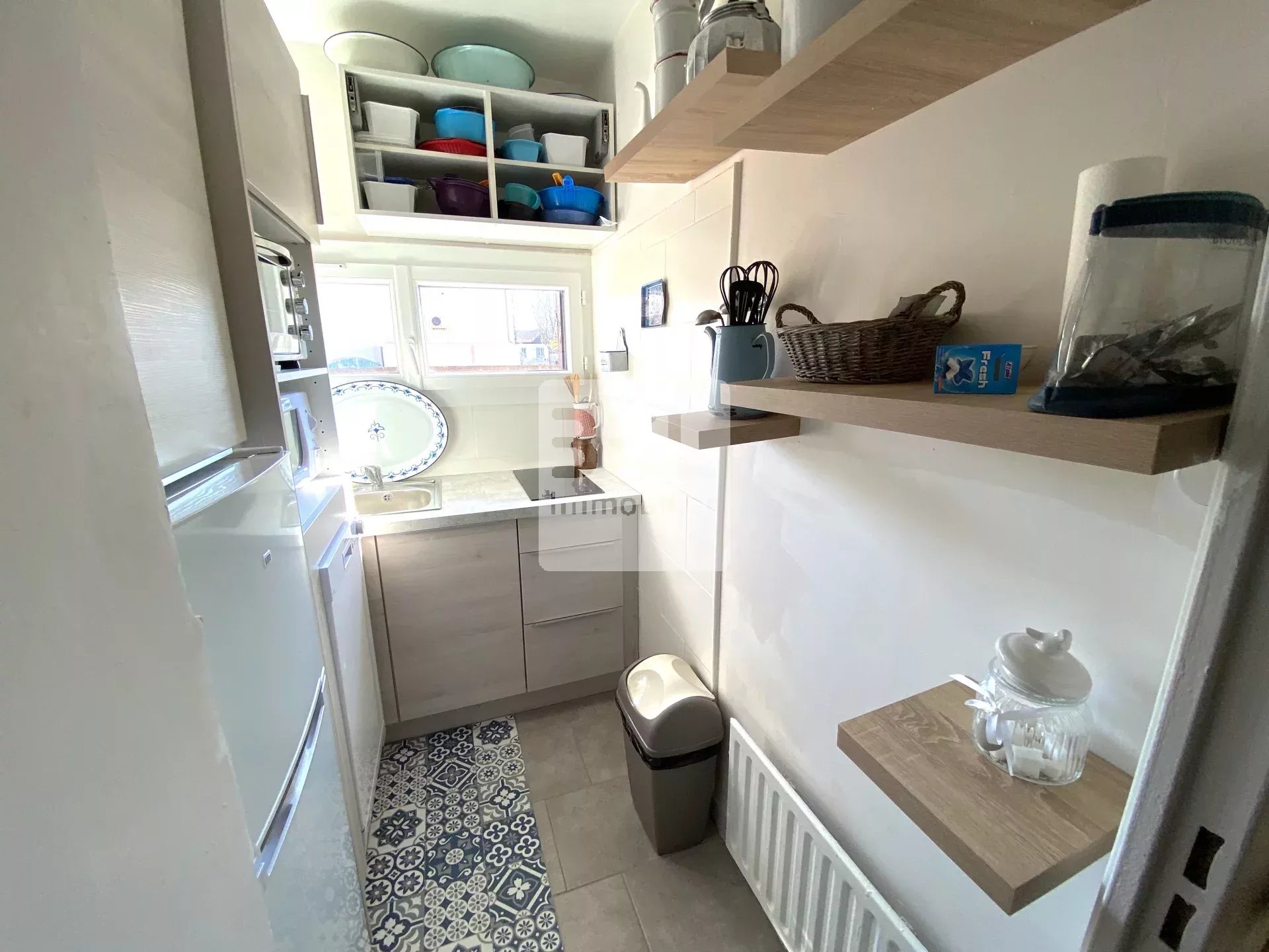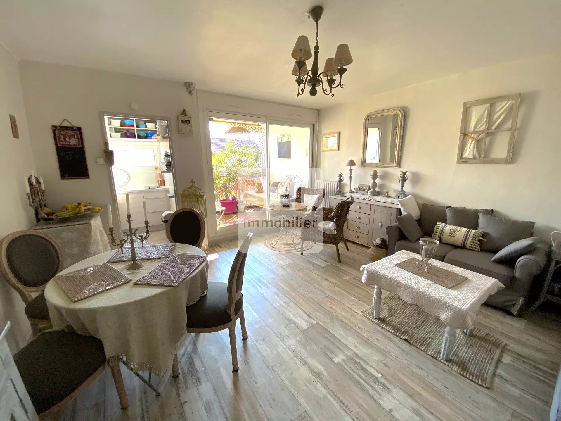 Réf.2595MK: Situé à proximité de toutes les commodités, venez découvrir ce charmant appartement avec une rénovation de qualité. Sa pièce de vie ouverte sur une cuisine équipée donnant directement sur une terrasse orientée plein sud et sans vis-à-vis, vous procurera le coup de coeur assuré ! Composé d'une spacieuse chambre avec un grand dressing donnant accès sur une loggia pouvant y accueillir un bureau ainsi qu'un espace rangement, cet appartement est un produit rare sur le marché ! Vous retrouverez, dans le hall d'entrée, une salle de douche avec douche à l'italienne, toilette séparé ainsi que de nombreux placards de rangement. Places de parking gratuites au pied de la résidence. A visiter rapidement ! Les charges de copropriété s'élève à 1017 par an. Copropriété de 46 lots. Pas de procédure en cours.