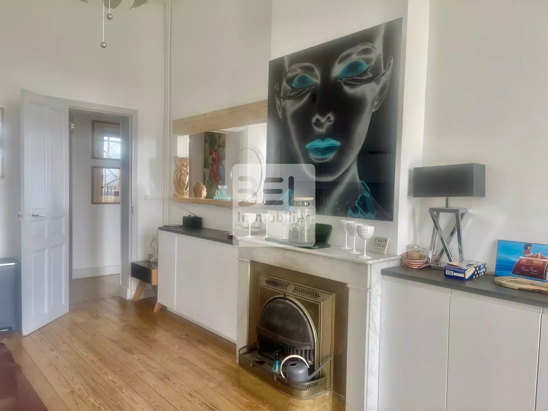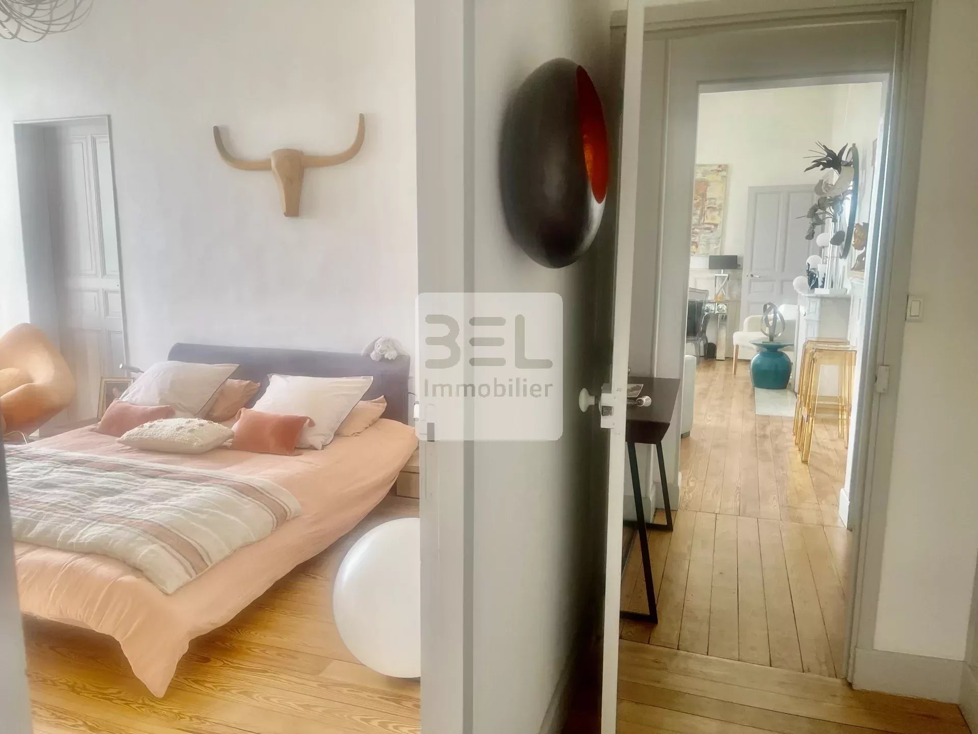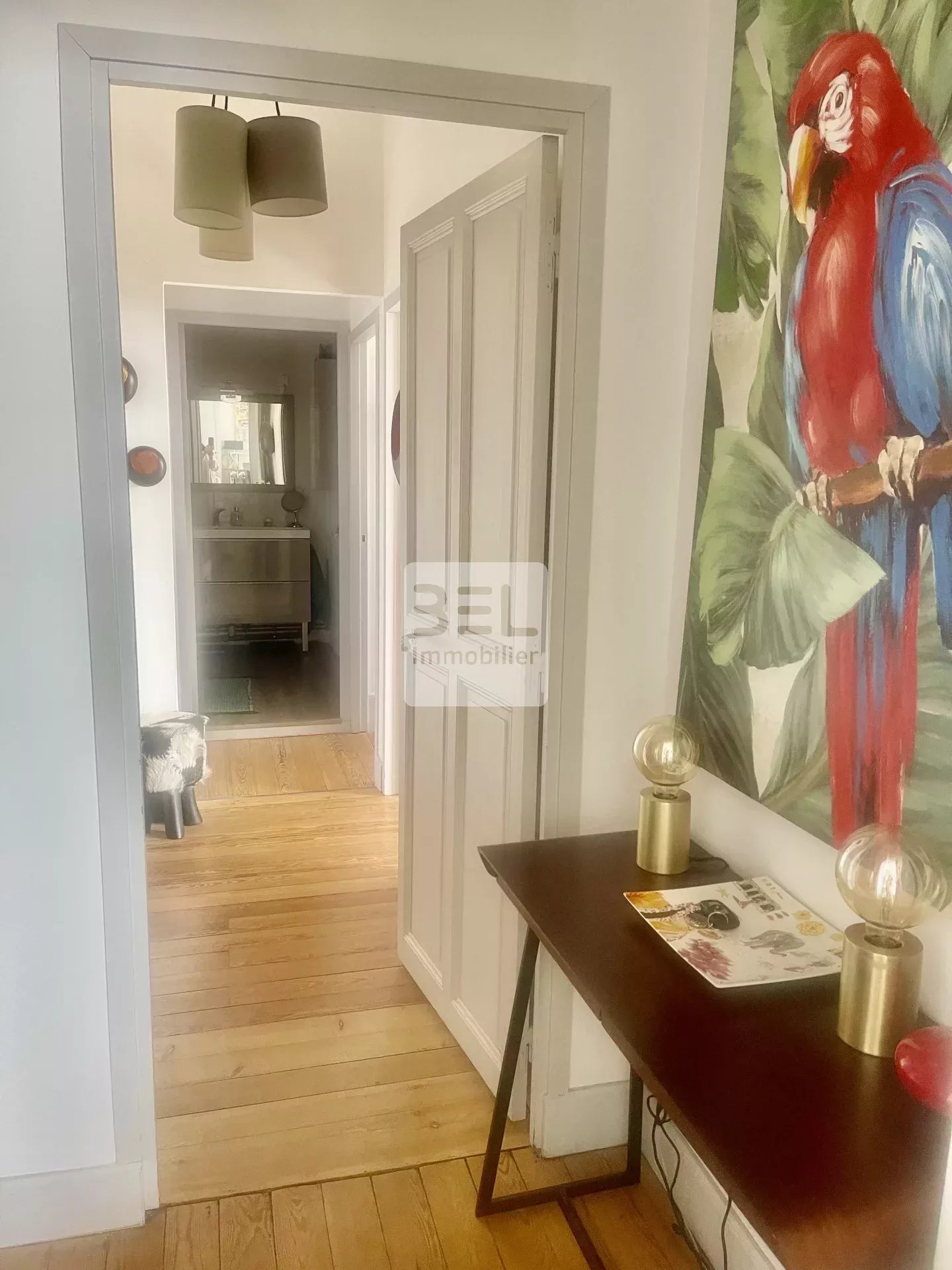 L'appartement, tout en parquet, est très lumineux. Il comprend une grande cuisine équipée, un beaux séjour avec moulures et une hauteur de plafond à 5,5 mètres. De nombreux rangements, 2 grandes chambres et une salle de bain complètent l'habitation.