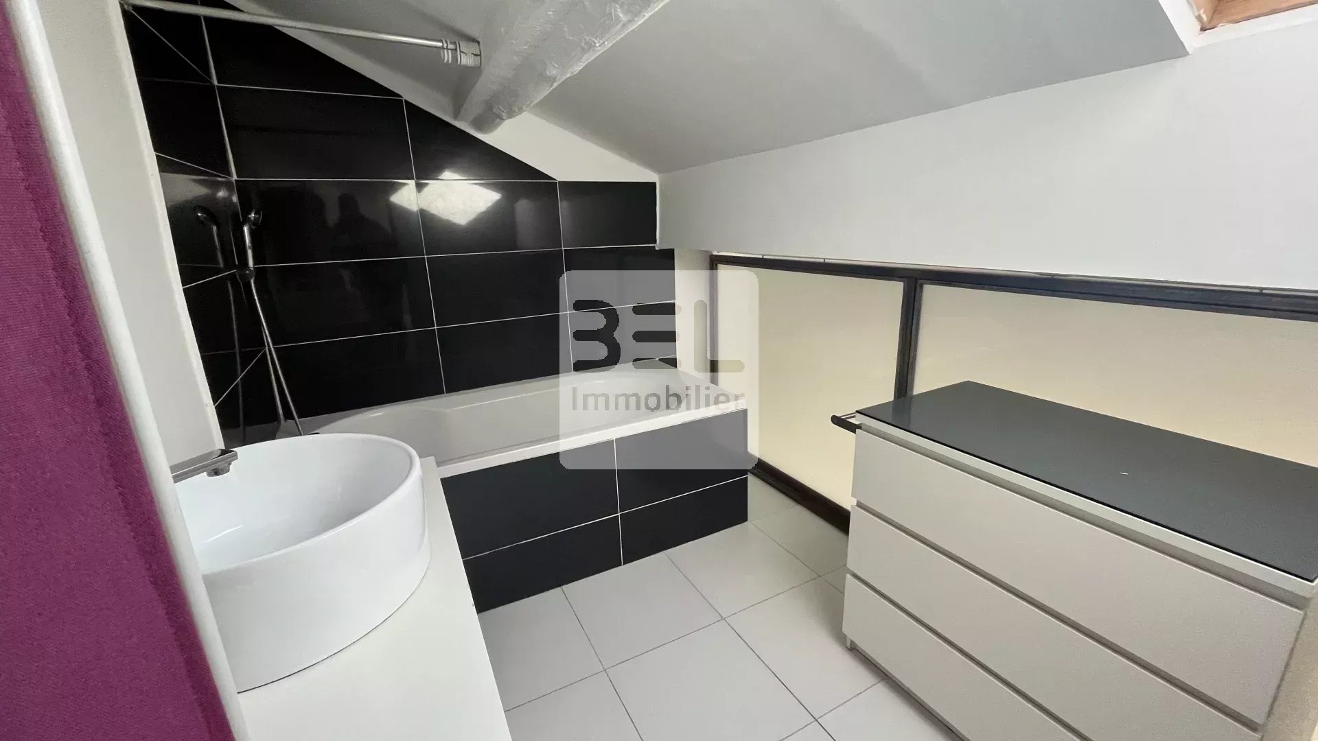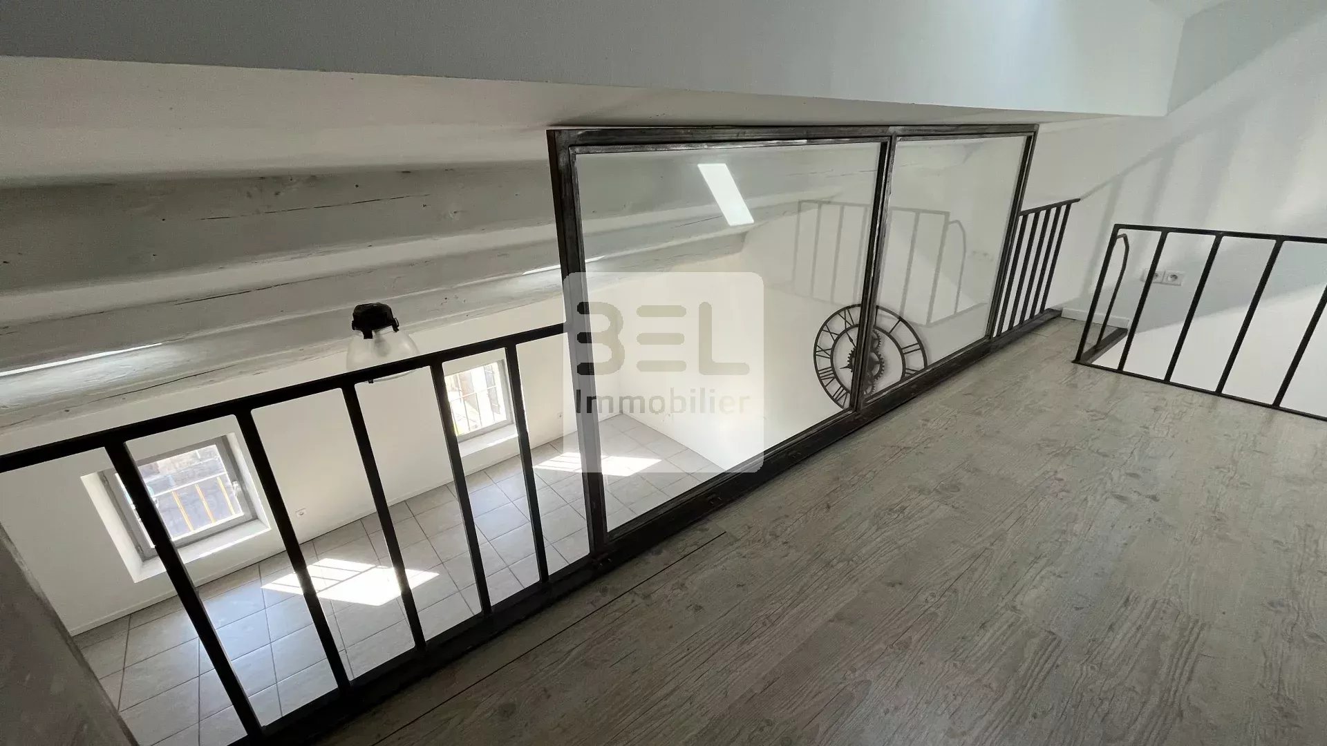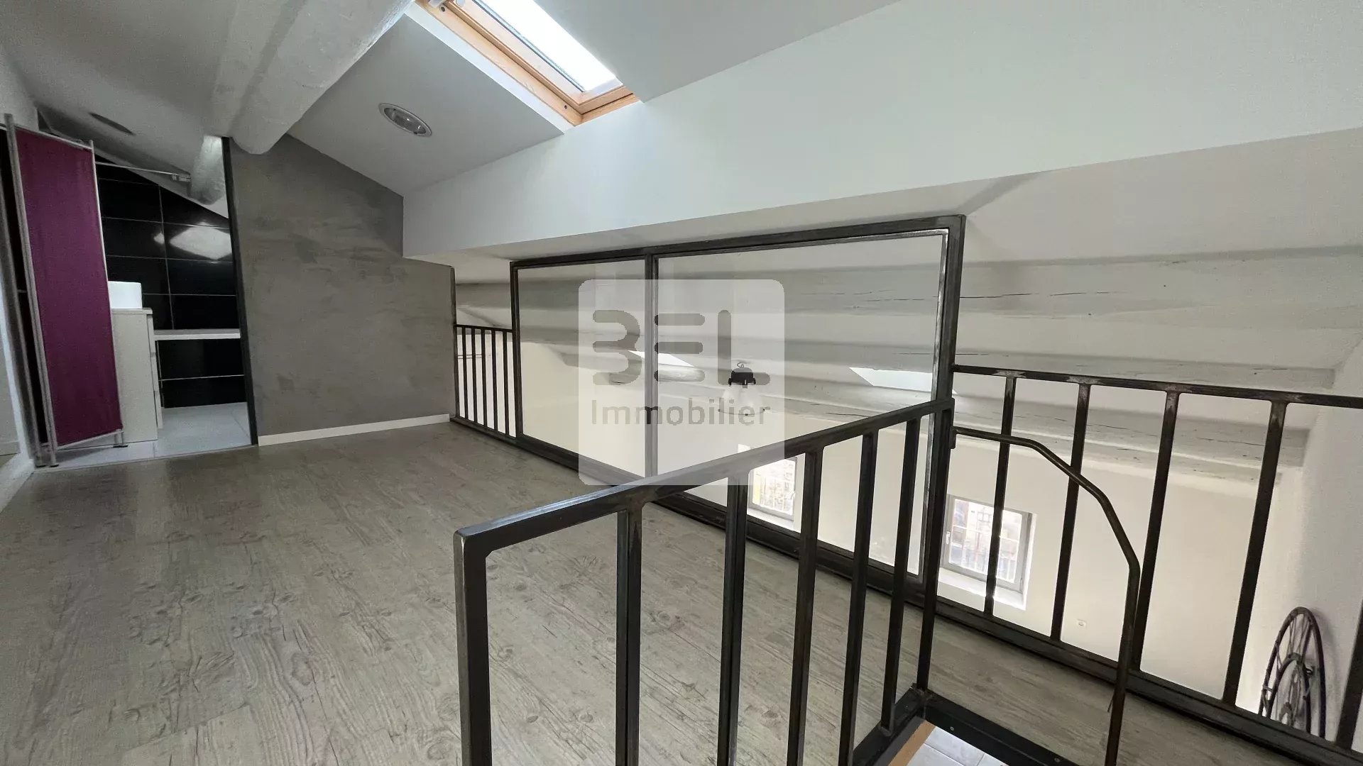 Le duplex, au niveau supérieur propose un espace bureau sur sa mezzanine, une salle de bain, et deux espaces couchages d'appoint sous les toits - (petite hauteur plafond).