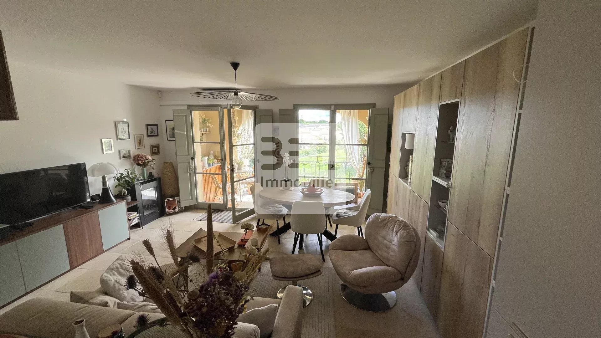 Un salon séjour lumineux ouvert sur sa cuisine ouvre sa baie vers un coin terrasse qui fera plus d'un envieux !