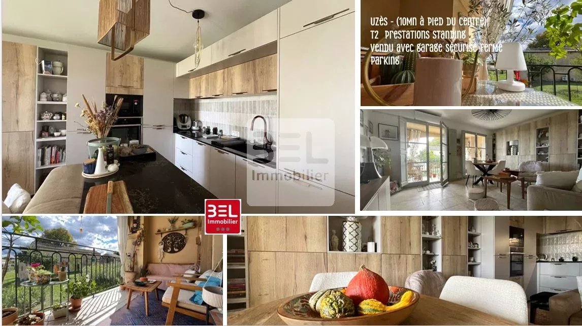 REF 3869SR : Vous projetez de Vivre à Uzès, cette "Ville d'Art et d'Histoire" avec un patrimoine prestigieux, riche en histoire, et tous ses commerces et restaurants, cet appartement de standing est fait pour vous. La résidence très prisée, au calme à quelques minutes à pieds du cœur de ville d'Uzès propose un environnement provençal très soigné qui rappelle le Soleil et le chant des cigales. Ce T2 de grand standing propose des matériaux, avec un ameublement confectionné sur mesure, vous n'aurez qu'à poser vos valises suite à sa rénovation de moins d'un an. Un salon séjour lumineux ouvert sur sa cuisine ouvre sa baie vers un coin terrasse qui fera plus d'un envieux ! Le coin extérieur plein sud tourné vers le parc, est un vrai plus. Une salle d'eau avec des toilettes séparés proposent un espace sanitaire magnifiquement agencé. Un petit cellier dans le dégagement de l'appartement et un garage fermé en sous-sol complètent ce très bel appartement ! Résidence sécurisée avec ascenseur et parking privatif. Pas de procédure en cours Charges de copropriété 130€ /mois Un nid dans le midi de la France dans la très célèbre ville d'Uzès vous attend ! bien rare sur le marché ! Contactez nous : Solange Royer +33(0)615171582
