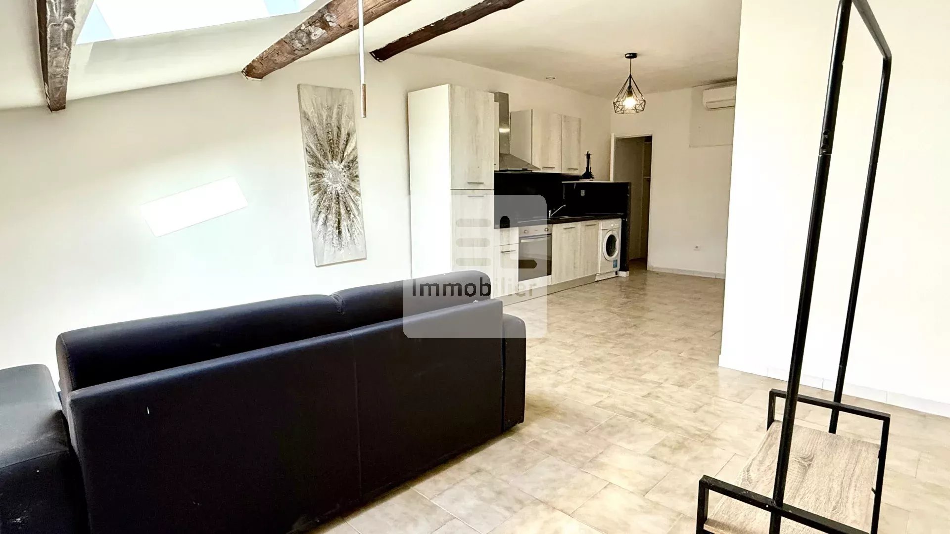 Découvrez ce studio qui offre un grand séjour lumineux avec une cuisine entièrement équipée comprenant une hotte, un four, une plaque de cuisson, un lave-linge et un lave-vaisselle. Un placard de rangement est également à disposition.