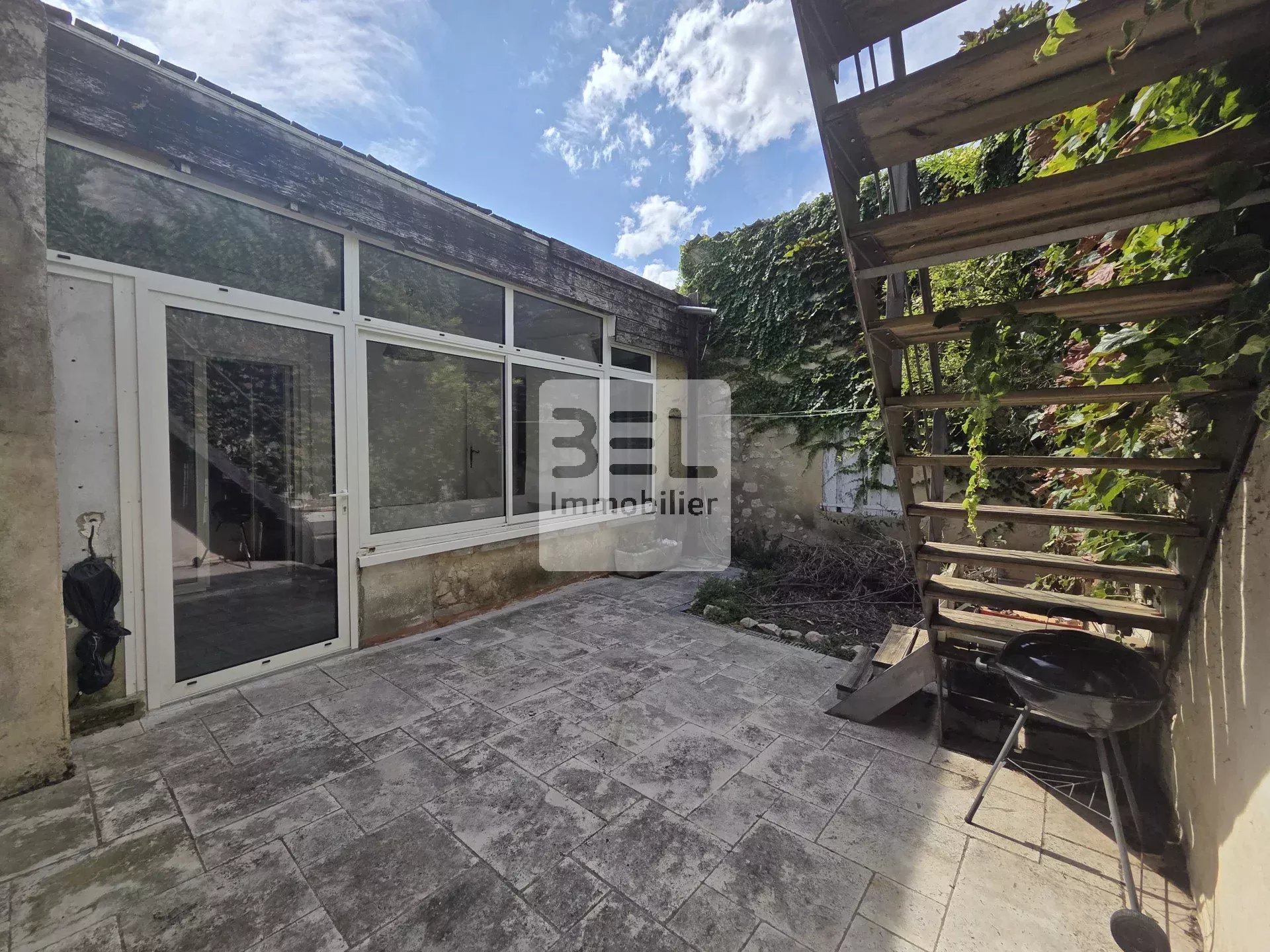 L'extérieur de la maison présente une charmante cour intérieure ainsi qu'une terrasse où vous pourrez profiter du climat doux de la région. Les fenêtres en PVC à double vitrage et la réfection de toiture garantissent une isolation optimale, vous assurant confort et tranquillité tout au long de l'année. La rénovation récente combine harmonieusement éléments modernes et traditionnels.