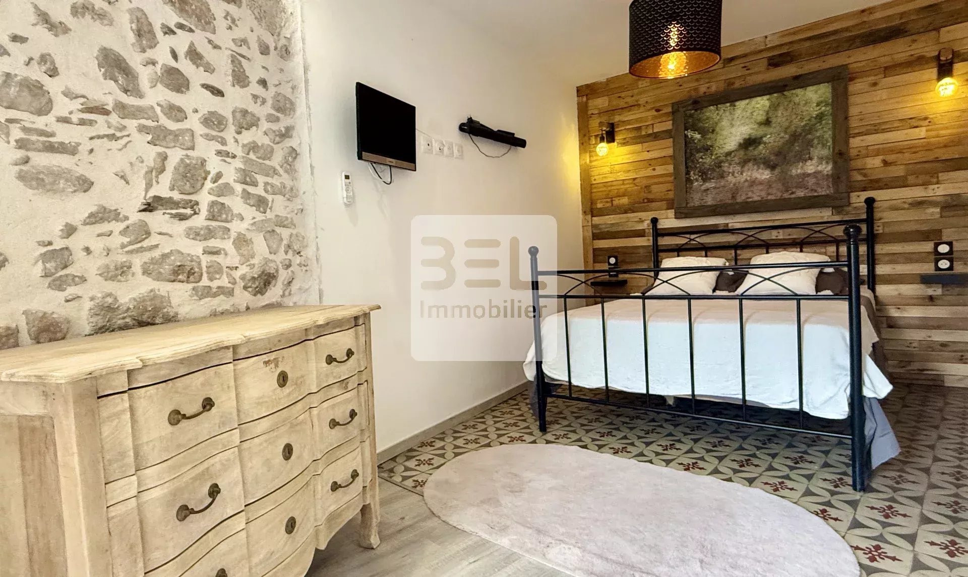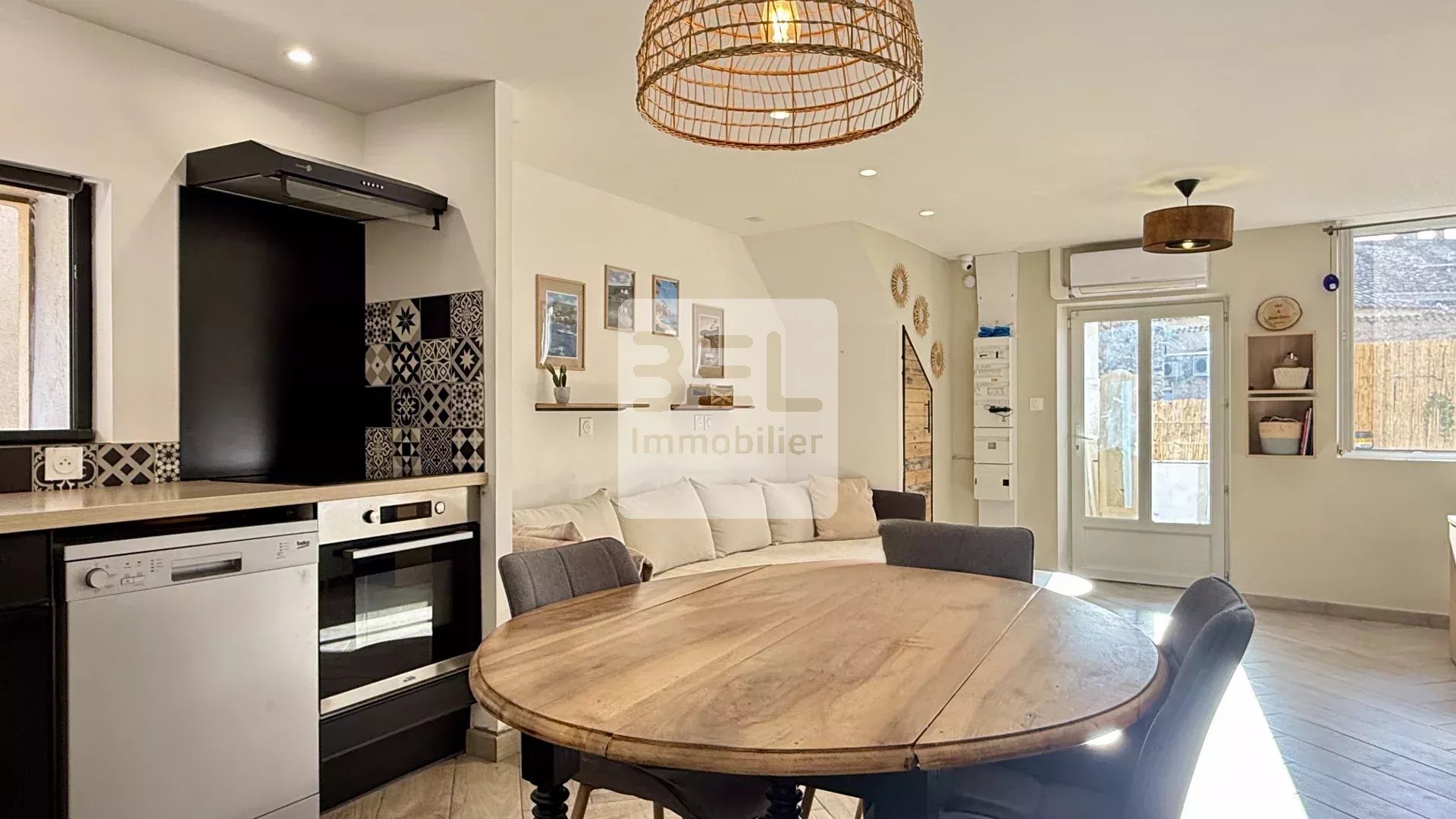 Réf : 3863MC Au cœur du village de Chusclan, Bel Immobilier vous propose en exclusivité cette charmante maison d'environ 65 m². Elle a été entièrement rénovée avec goût et des prestations de qualité, vous serez charmez par ses nombreux atouts ! Le séjour-cuisine parfaitement équipé vous offre une pièce de vie agréable. Côté nuit : deux chambres dont une avec dressing, une buanderie et une salle d'eau avec toilettes. Vous profiterez d'un petit espace extérieur convivial grâce à une agréable terrasse. Pour plus de rangement, une cave et un garage en guise d’atelier vous permettra d'entreposer outillage, motos et vélos. Le grenier est à aménager avec une surface au sol de 65 m². Chauffage climatisation réversible, menuiseries PVC et double vitrage. Un très joli bien qui vous apportera tout le charme de l'ancien et de la pierre allié au confort de la modernité, à ne pas laisser passer !