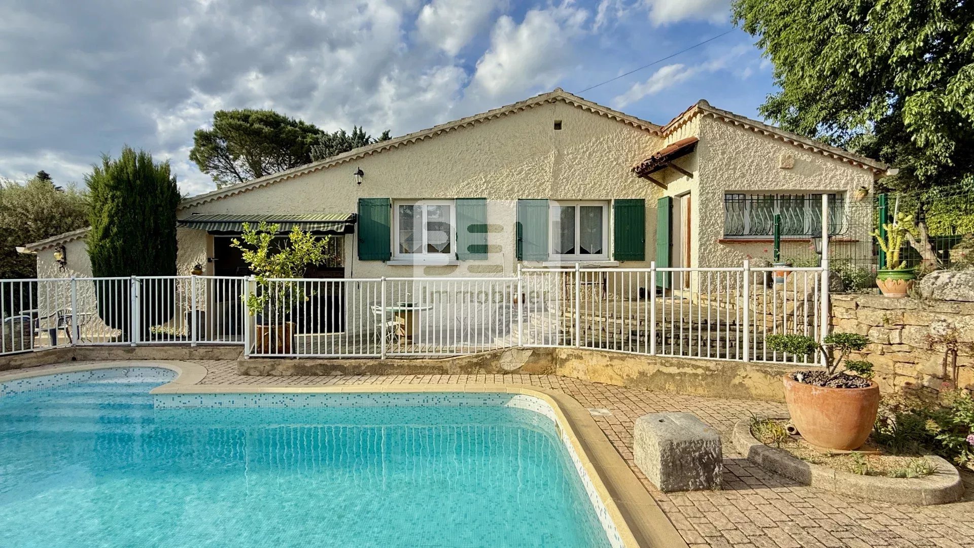 Vous serez tout de suite séduits par le coin piscine clôturé avec la cuisine d'été et les nombreuses annexes présentes sur le terrain de 1267 m².