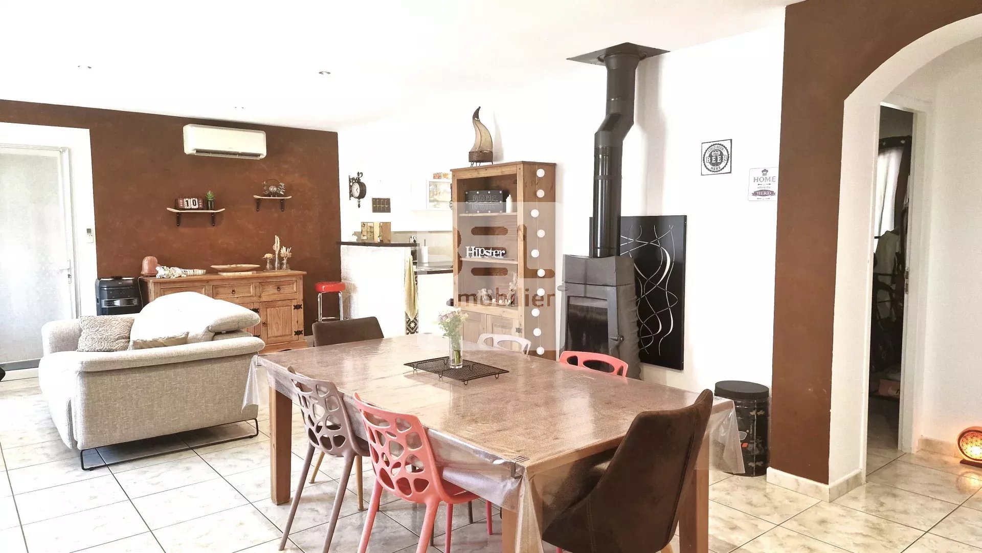 Ref : 3025LB Dans un petit village paisible, à 20min d'Uzes et à quelques kms de Connaux, nous vous proposons cette magnifique villa d'environ 120m2 de plain-pied sur une parcelle de presque 900 m2. Cette maison dispose d'une entrée avec placard, d'Un grand séjour avec cuisine ouverte de plus de 50m2 et sa lumière traversante, de 2 chambres et d'une 1 suite parentale avec salle d'eau indépendante, d'une salle de bain avec baignoire d'angle. Le plus : une buanderie avec Wc et point d'eau, un garage avec mezzanine ainsi que la possibilité de créer un espace chambre supplémentaire de 15m2. La maison possède également bon nombres d'éléments techniques récent permettant un confort optimum comme le chauffage par pompe à chaleur, les panneaux photovoltaïques, le poêle à bois (pour les soirées au coin du feu) Côté extérieur vous trouverez une agréable terrasse couverte d'une pergola en fer forgé avec un grand jardin et abri bois et un espace piscine 9x4 entièrement clôturé avec plage en béton imprimé. De quoi ravir vous journées et soirées d'été. Quartier calme et sans nuisance, sans vis à vis et proche de toutes commodités, cette maison n'attend que vous, pour combler petits et grands.