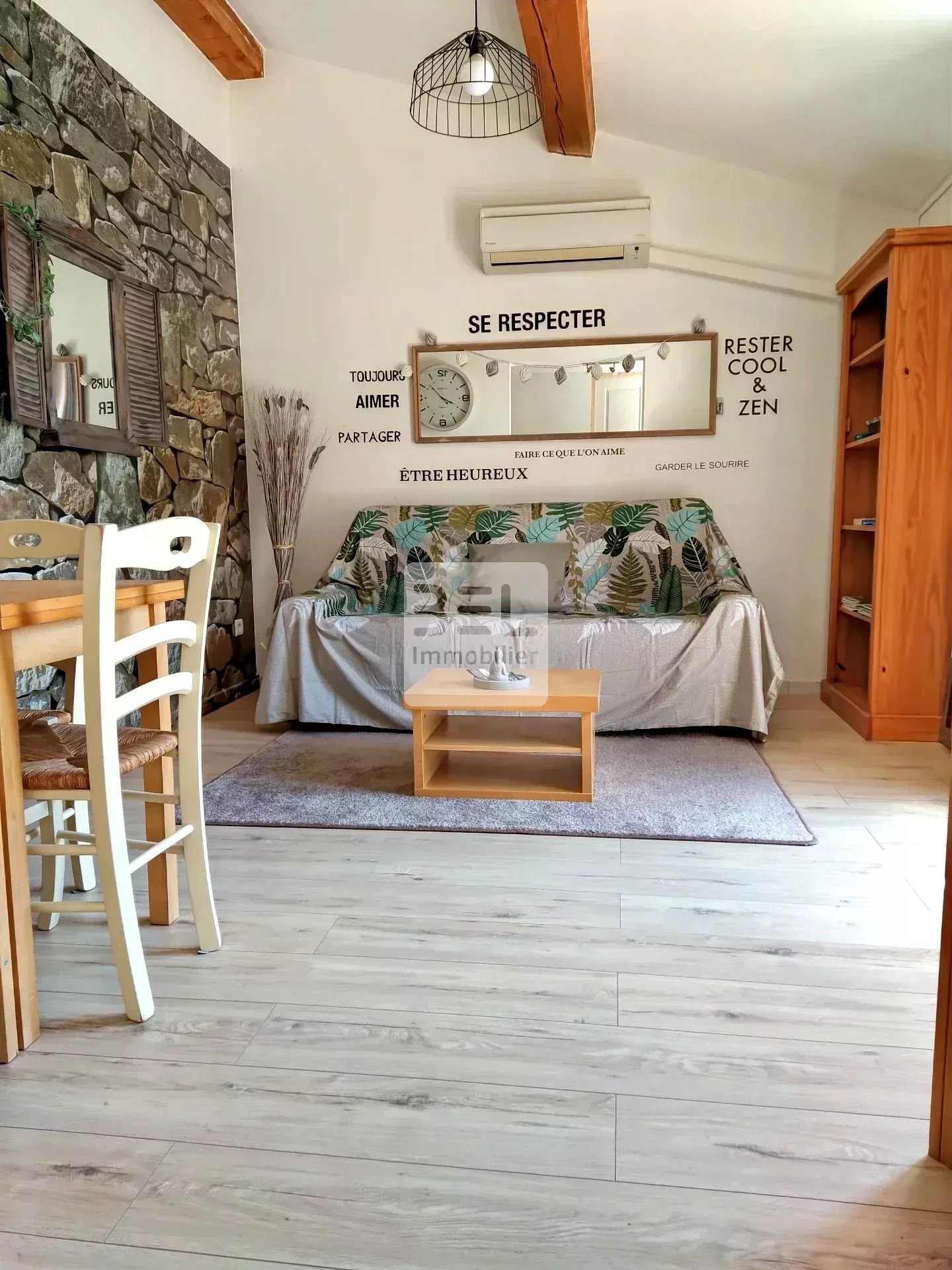 Un appartement attenant à la maison de 37 m². vous offre une chambre. une salle d'eau avec toilettes. une cuisine ouverte sur le salon-salle à manger avec accès à une terrasse indépendante.