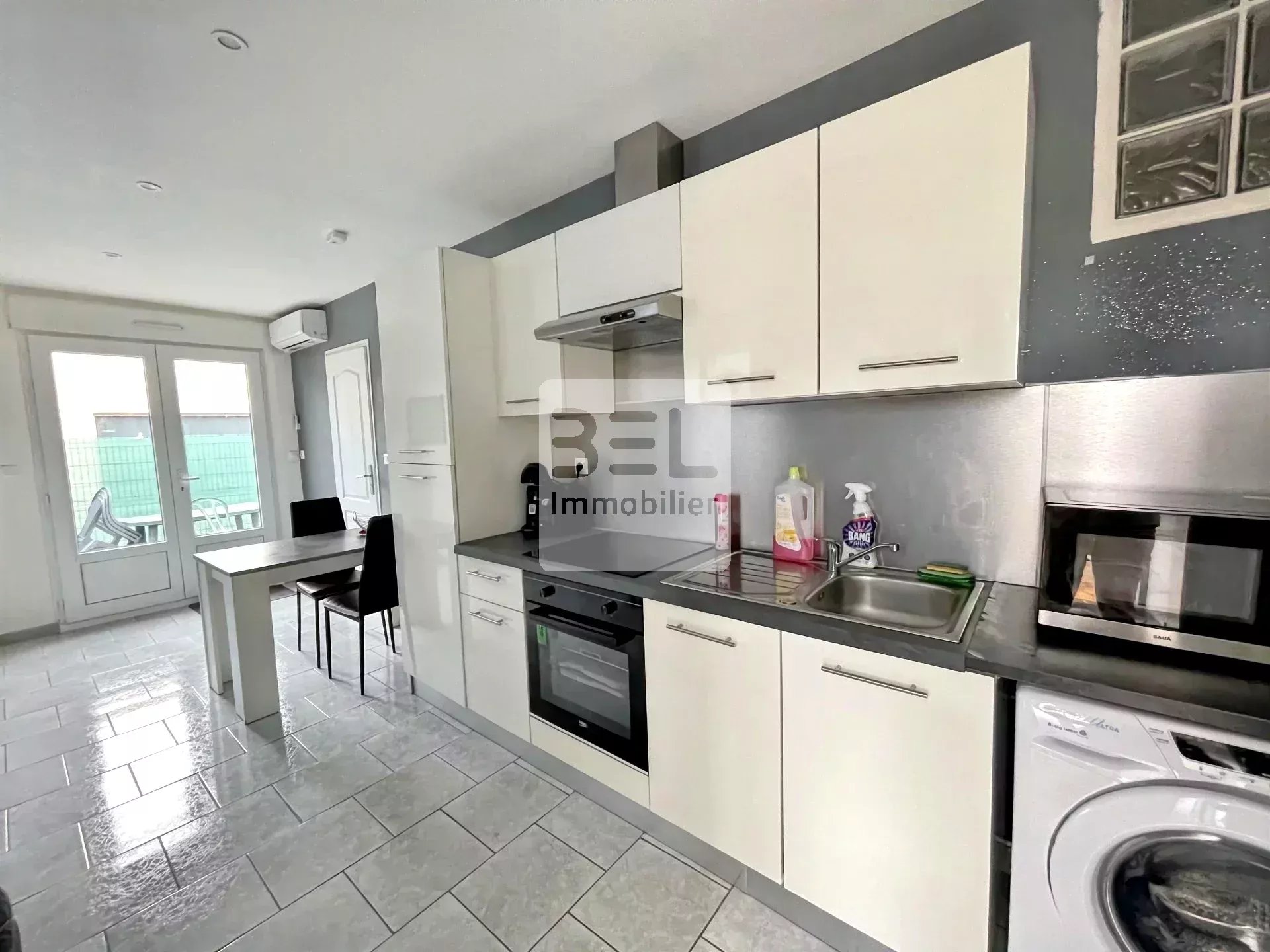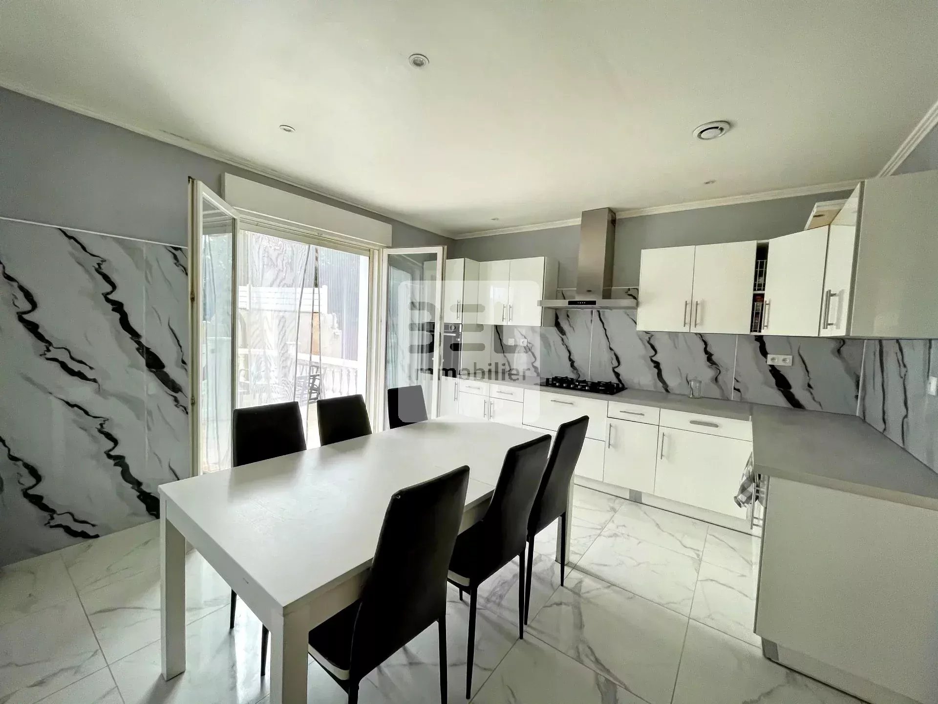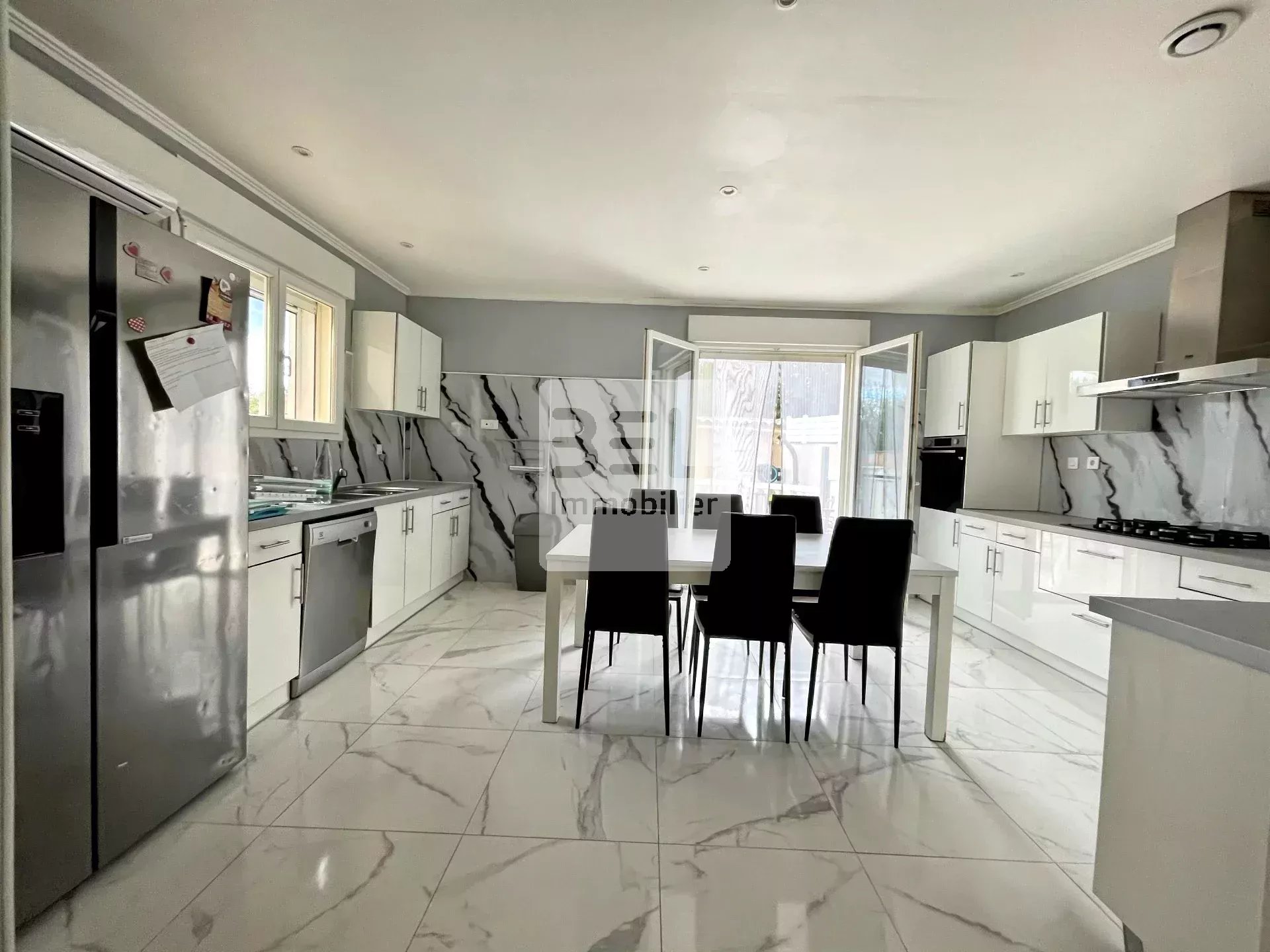 La maison principale de 134 m2, permets au rdc la location de 3 chambres avec 2 salles d'eau/bain et un accès commun à la grande cuisine équipée et au séjour.