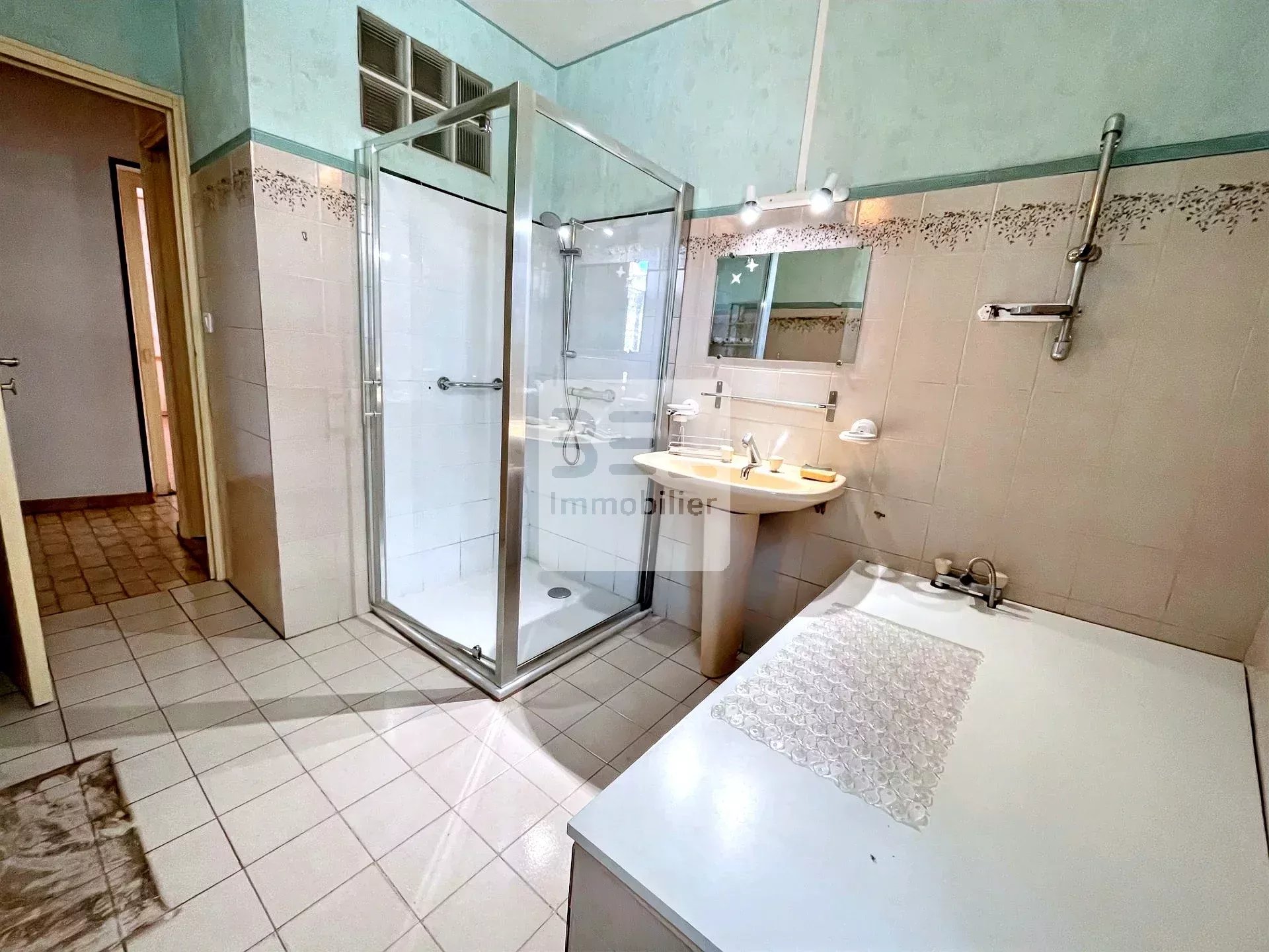 Avec ses 146 m², elle offre un cadre de vie spacieux et agréable. Le rez-de-chaussée désert une grande Chambre, une kitchenette, une salle de bain, un toilette et un couloir qui va au jardin.