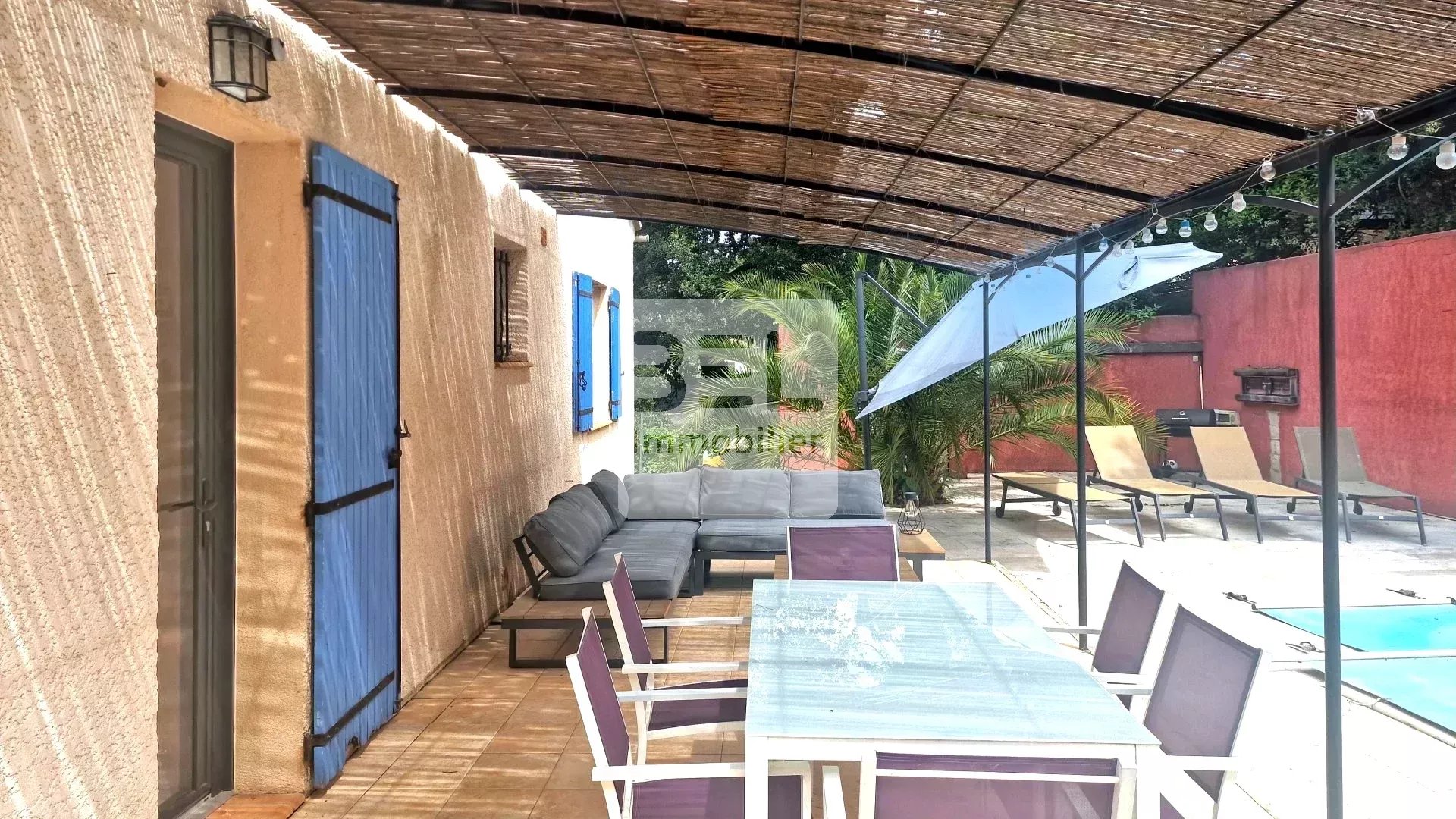 La grande terrasse carrelée avec salon de jardin et coin repas/barbecue, la belle piscine accessible par les pièces de vie, permettront une détente absolue.