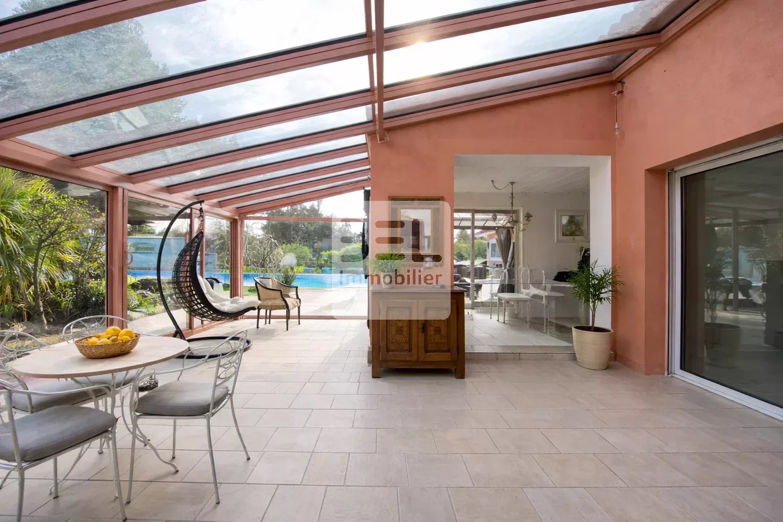 Une piscine de 16x5 couverte avec massage et alarme ainsi que son pool house.