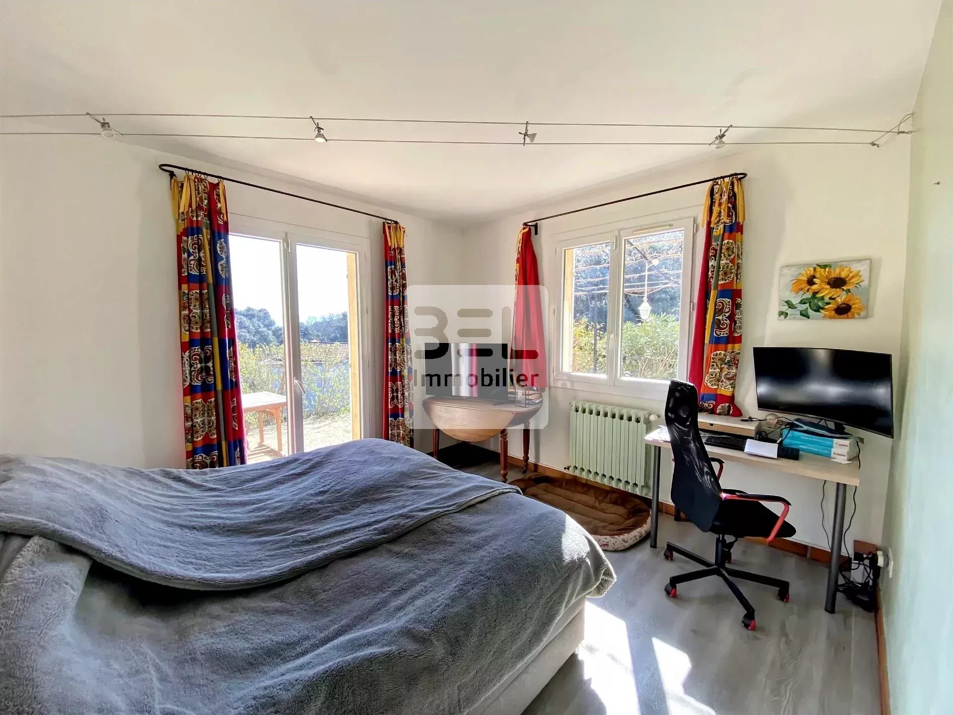 A l'étage une chambre de 20 m² qui donne sur une terrasse avec la vue sur le chateau de Thouzon et un bureau de 19 m².