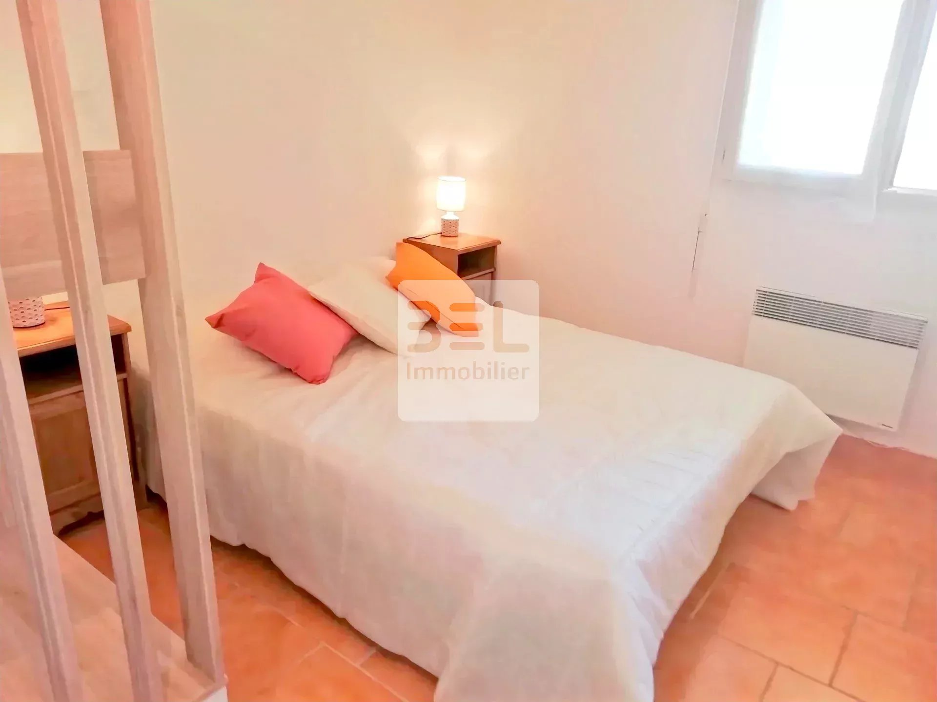La villa se compose de deux chambres spacieuses ainsi que d'une petite pièce polyvalente, idéale pour être utilisée comme troisième chambre ou bureau, selon vos besoins.