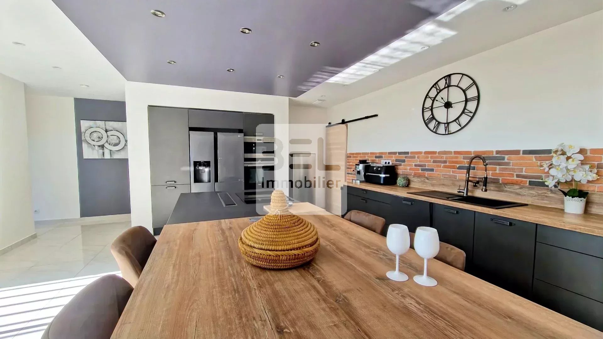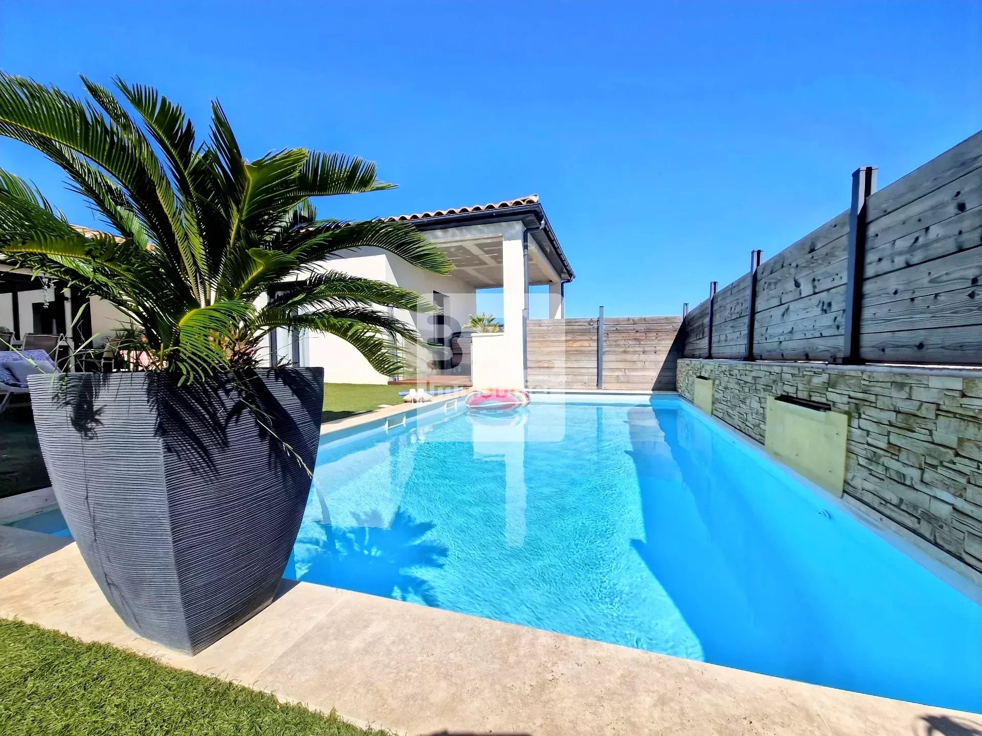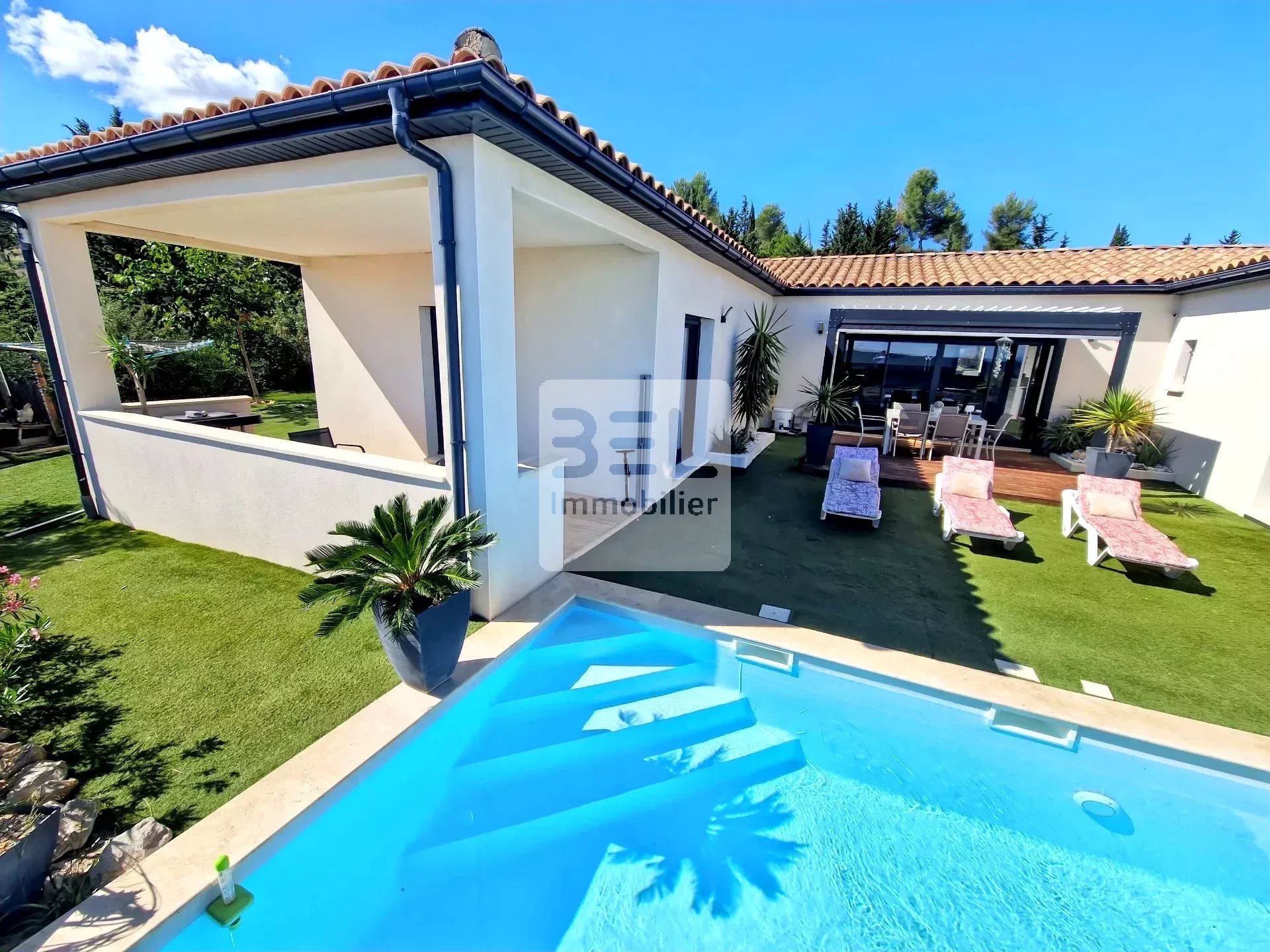 Dans un environnement privilégié proche de Villeneuve-lès-Avignon, cette récente maison contemporaine entièrement de plain-pied bénéficie d'une surface habitable d'environ 205 m² avec sa dépendance.