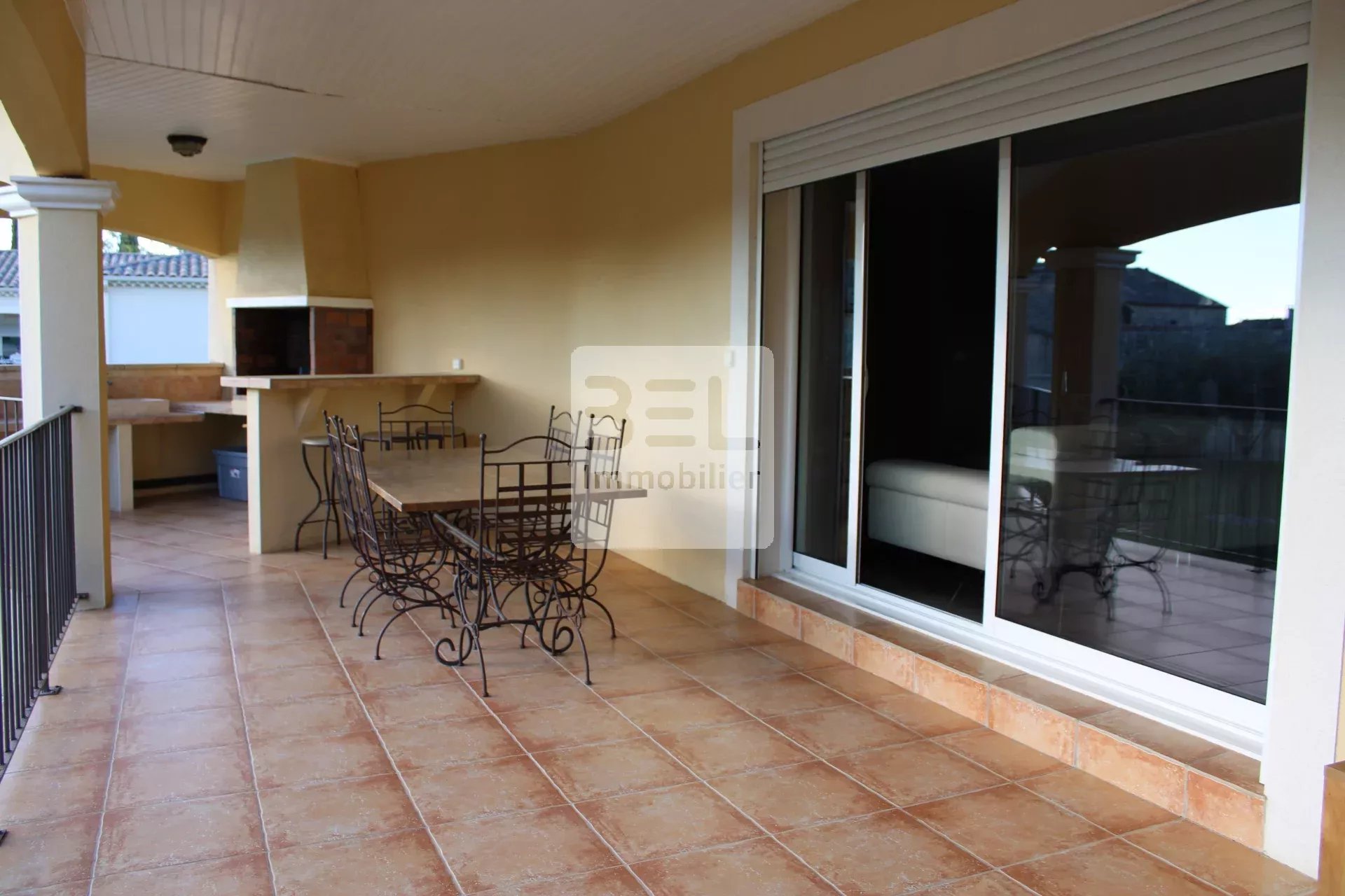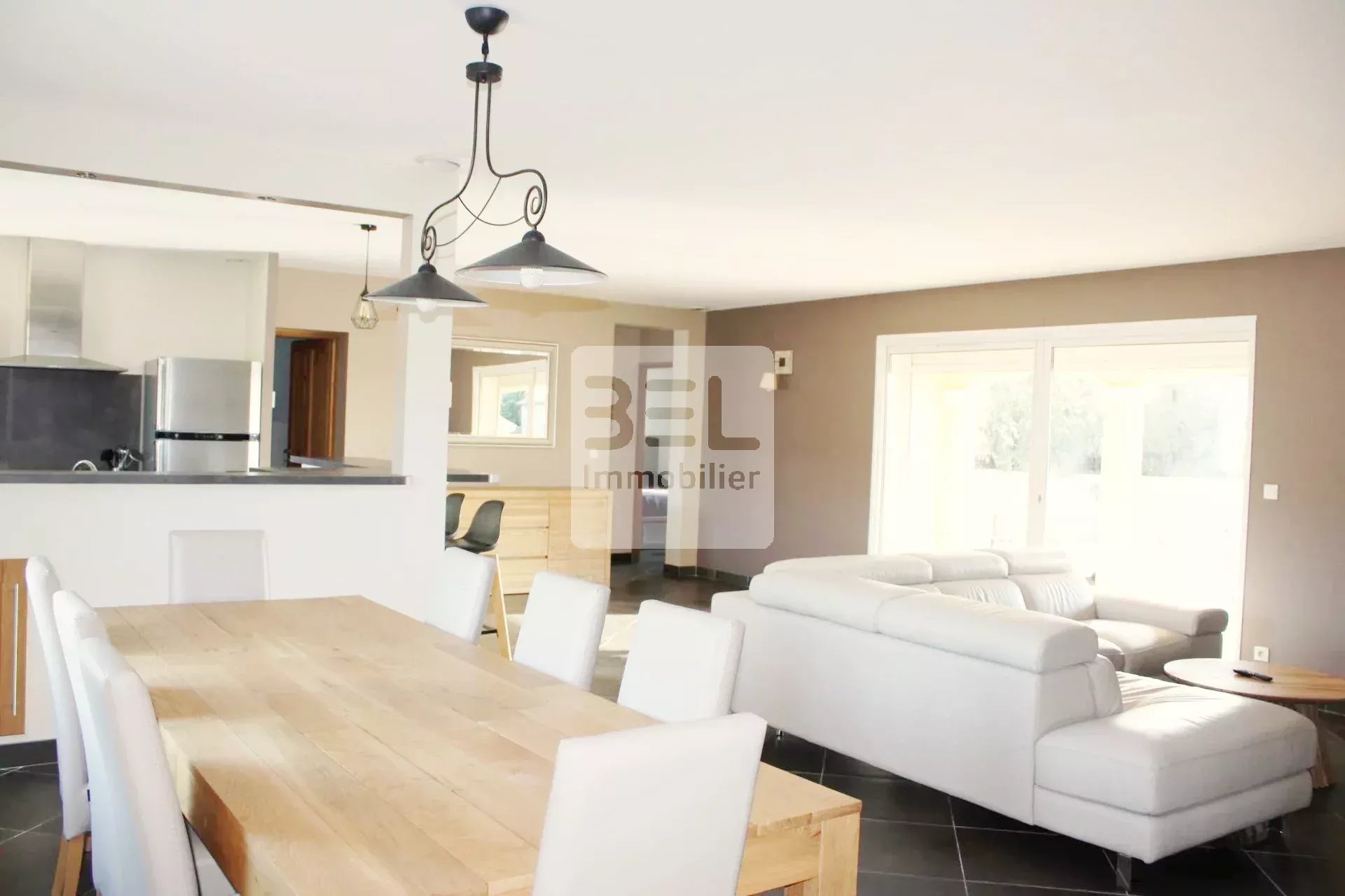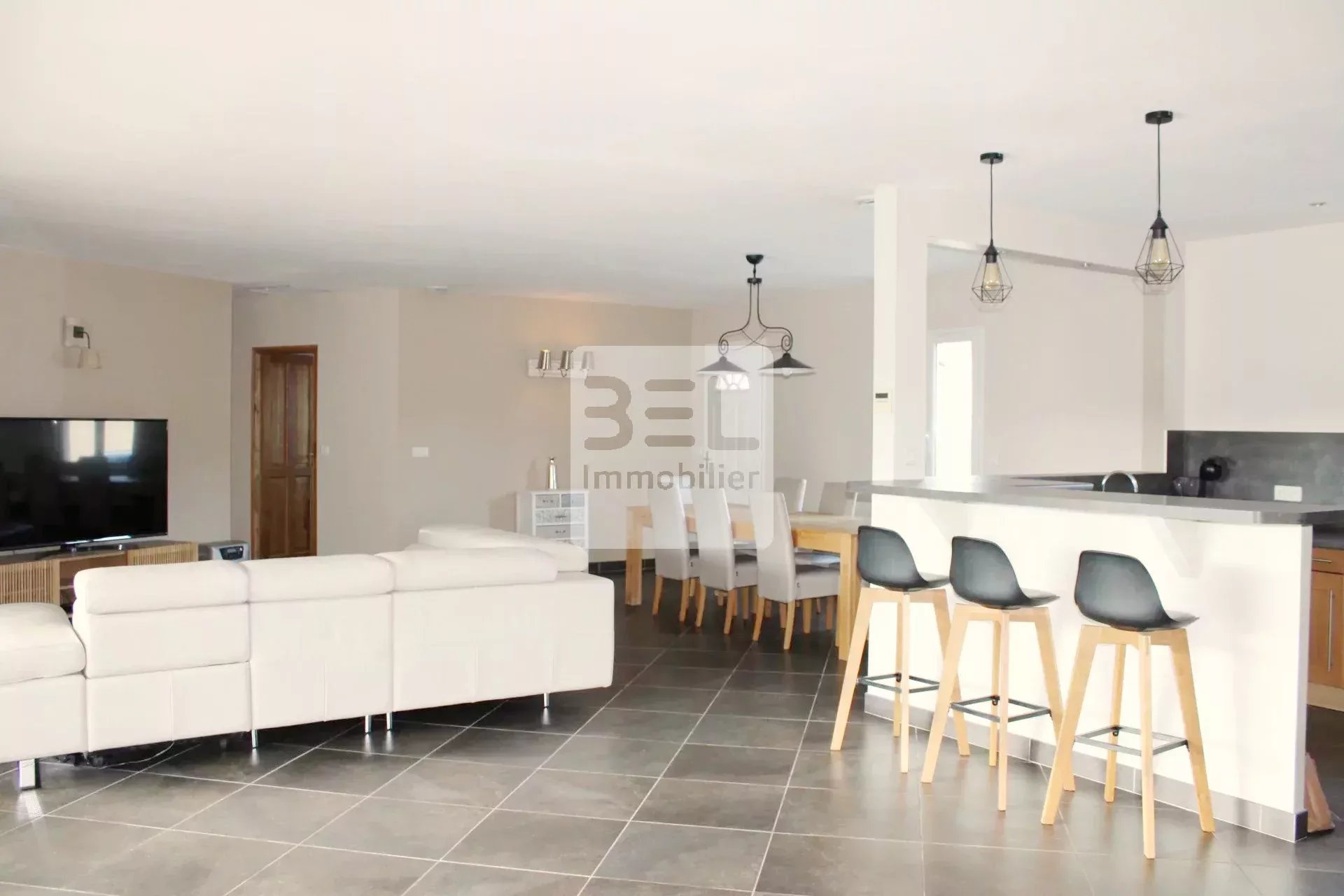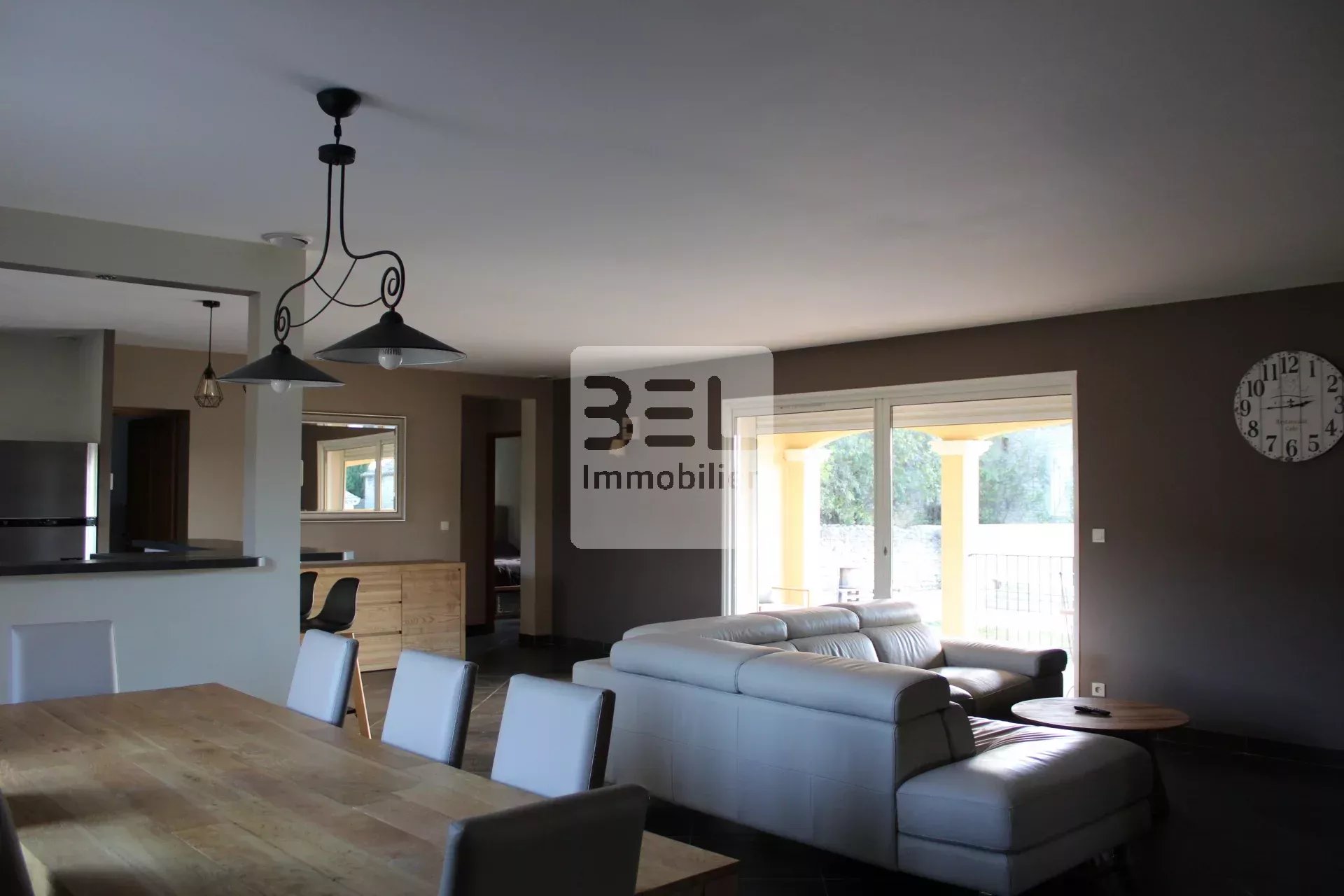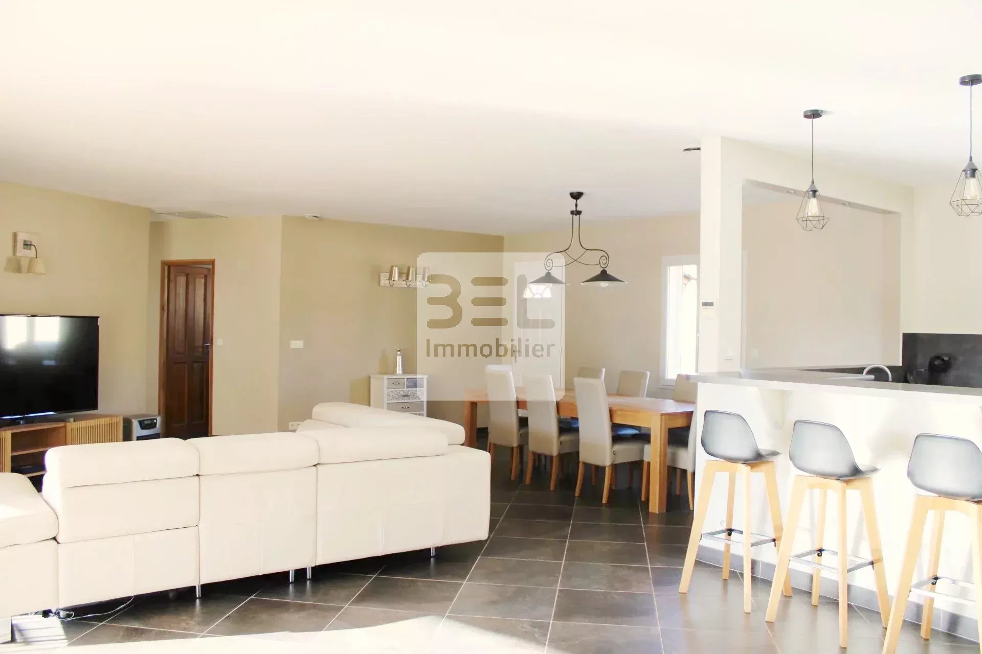 Ref3000NB : Venez découvrir cette magnifique maison récente, située au cœur d'un village calme, offrant un cadre de vie paisible et agréable. Cette propriété se distingue par son agencement optimisé et ses prestations de qualité. Profitez d'une spacieuse pièce de vie de 60m² environ, baignée de lumière naturelle. Cette grande pièce est ouverte sur une cuisine moderne et entièrement équipée, créant un espace convivial idéal pour vos moments en famille ou entre amis. La maison comprend 3 chambres confortables, chacune bénéficiant de placards intégrés, offrant ainsi un espace de rangement pratique et élégant. Deux salles de bain élégantes et fonctionnelles sont à votre disposition, garantissant confort et intimité pour tous les membres de la famille. À l'extérieur, vous serez séduit par un magnifique terrain arboré d'oliviers, promettant détente et sérénité. La piscine, parfaitement intégrée, invite à la relaxation et aux loisirs aquatiques. Un espace de parking est disponible pour vos véhicules. La propriété est également équipée d'un portail électrique, assurant sécurité et intimité. Pour un confort optimal toute l'année, la maison est équipée d'un système de climatisation réversible gainable, offrant une température agréable en toutes saisons. Cette maison représente une opportunité exceptionnelle pour ceux qui cherchent un havre de paix, combinant modernité, confort et nature. N'attendez plus pour venir la découvrir et vous laisser charmer par ses nombreux atouts.