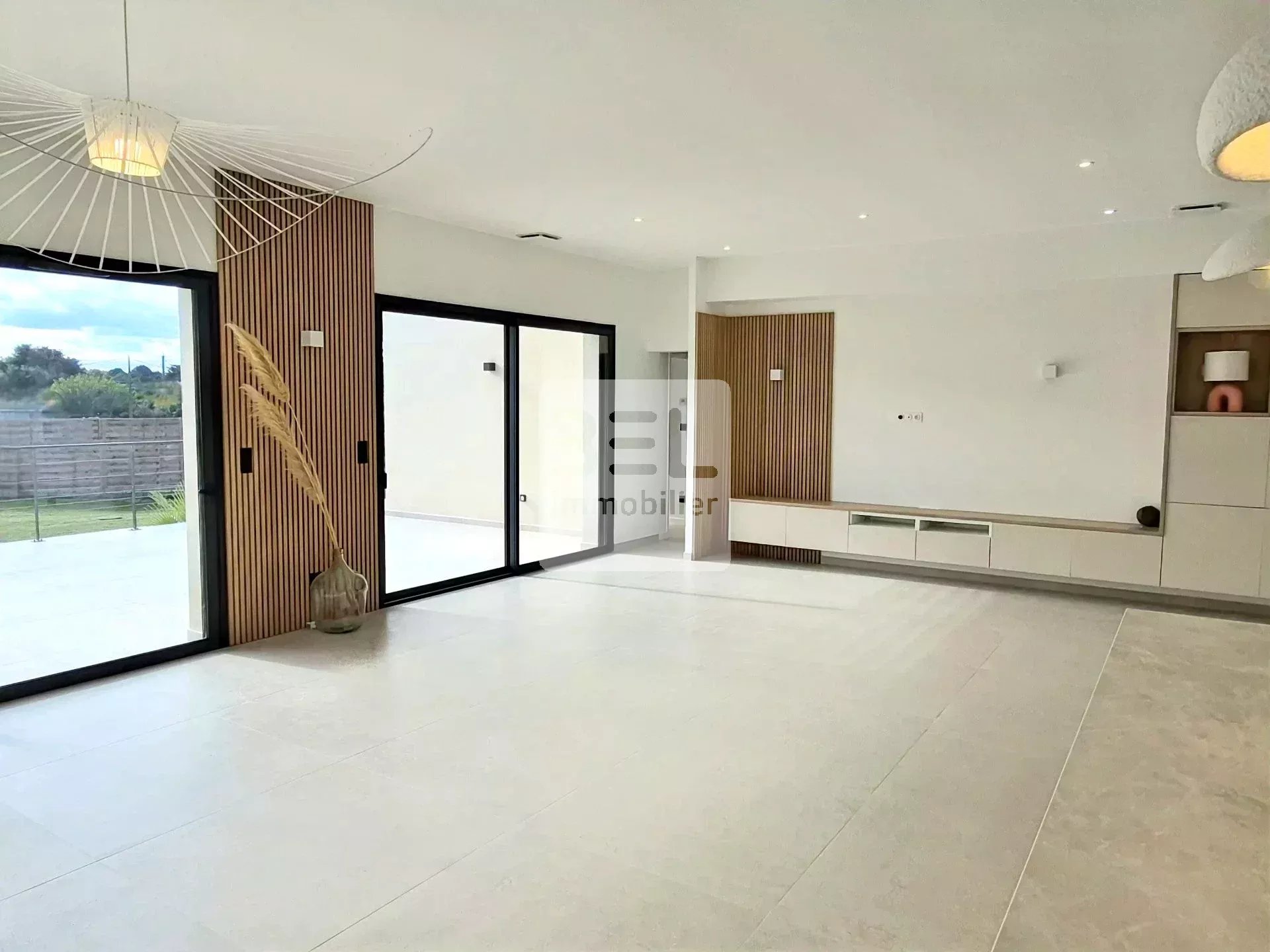 REF: 3928CB Située dans un quartier résidentiel recherché, à seulement 5mn de Connaux, cette superbe maison contemporaine d'environ 145 m², achevée en 2025, séduit par son design, ses prestations de standing et ses finitions haut de gamme. La maison offre sur une pièce de vie de 66 m² baignée de lumière grâce à de larges baies vitrées et s'ouvrant sur une magnifique terrasse de plus de 50m2. Réunissant salon, salle à manger et cuisine ouverte entièrement équipée, vous serez charmés par sa belle hauteur sous plafond, l'élégance et le raffinement de chaque pièce. L’espace nuit comprend : -Trois chambres avec placards intégrés, dont une suite parentale avec salle d’eau, WC et dressing -Un bureau de 9m2 aménagé -Une salle de bain supplémentaire et des toilettes séparées. Un cellier/buanderie attenant à la cuisine et un garage de 25 m² avec porte motorisée. Le jardin de 1 200 m², dispose d’une belle piscine avec plage, agrémentée d'une terrasse bois avec local technique intégré en tout esthétisme. Classée A, cette maison bénéficie des meilleurs équipements alliant confort et avantages de la basse consommation énergétique RT2012 aux objectifs économiques: -Chauffage/climatisation réversibles en gainable multi-zone par pompe à chaleur, -Chauffe-eau thermodynamique, -Menuiseries alu double vitrage, -Volets roulants électriques, -Domotique -Visiophone et portail électrique -Arrosage automatique -Portail électrique -Porte garage motorisée Un bien rare, où il ne vous restera plus qu’à poser vos valises et à profiter pleinement de ses prestations et de son confort exceptionnels. Pour tout renseignement ou visite contactez Céline BERNARD, 0626366287.