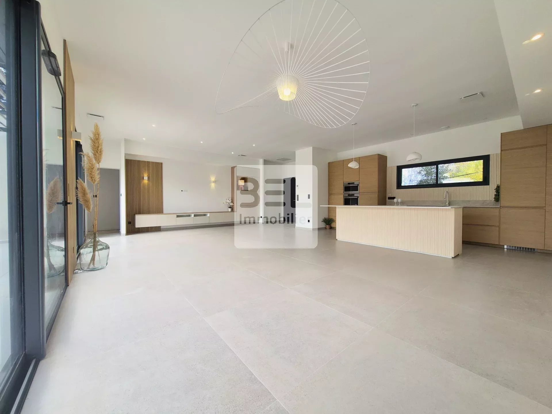 La maison offre sur une pièce de vie de 66 m² baignée de lumière grâce à de larges baies vitrées et s'ouvrant sur une magnifique terrasse de plus de 50m2.