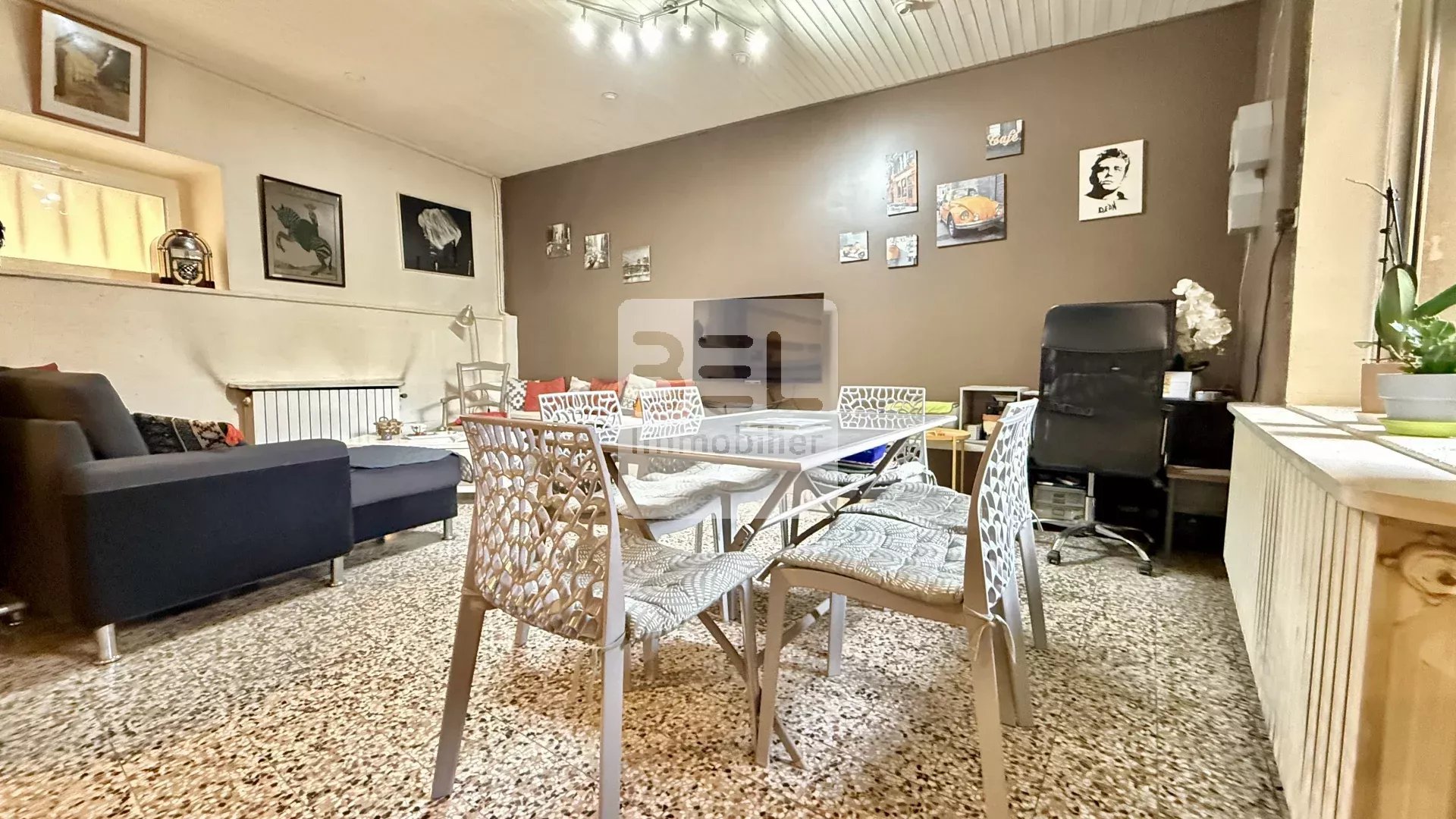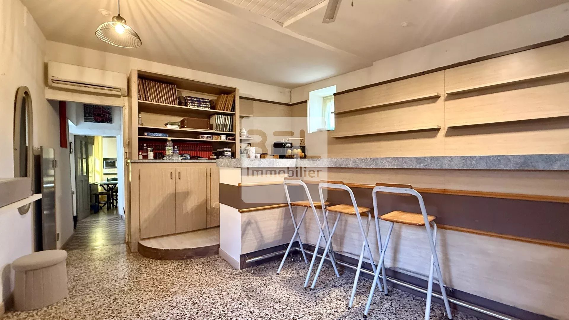 Réf : 4049MC Sur la commune de Chusclan, charmant village Gardois réputé pour son cachet et sa qualité de vie, cette maison de village d'environ 130 m² offre de beaux volumes modulables et de nombreuses possibilités d’aménagement. Elle se compose au rez-de-chaussée : d’un vaste espace principal avec un authentique comptoir et sa banque réfrigérée fonctionnelle, idéal pour conserver un esprit convivial ou créer un lieu de vie original, d'une buanderie, d'une cuisine et d'un patio privatif. A l'étage : trois chambres, un balcon et une salle de douche avec toilettes. Les surfaces des chambres étant confortables, il est tout à fait possible de créer un couloir desservant ces trois pièces. La superficie totale du bien permet également d’envisager facilement la création de deux appartements distincts, parfait pour un projet locatif ou une résidence principale avec revenu complémentaire. Des travaux de rafraichissement sont à prévoir pour moderniser ce bien. Il bénéfice tout de même de nombreux avantages : climatiseurs réversibles sur les deux niveaux, menuiseries en PVC double vitrage et en alu sécurite au rez-de-chaussée, moustiquaires, toiture neuve, possibilité de passer en pompe à chaleur pour les radiateurs au fioul. Ce bien rare séduira aussi bien les investisseurs que les amateurs de lieux atypiques à réinventer. À visiter sans tarder !