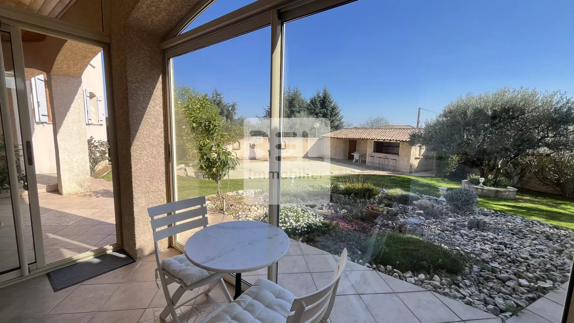 REF 4051SRNB En exclusivité, magnifique villa au cœur d'un jardin enchanté. Située à Pont Saint Esprit, dans un secteur calme sur les hauteurs, à la croisée du Gard et de l'Ardèche, proche des joyaux de la Vallée de la Cèze et à seulement 20mn des accès autoroutes, cet havre de paix, jouit d'un emplacement privilégié. La lumière maitre mot de cette bâtisse traditionnelle aux volumes rares sur le marché en surprendra plus d'un ! Sa véranda chauffée, telle une bulle de verre, clé de son enchantement, confère à cette villa en toutes saisons, un espace cosy et accueillant tourné vers son jardin. En Rdc : * Un grand salon séjour avec cuisine séparée ouverte vers un espace atelier aux multiples usages (arrière cuisine, atelier d'un artiste peintre, ou atelier de loisirs). * Deux chambres avec une salle de bain et toilettes séparés. * Une buanderie, une lingerie, une salle de billard s'ouvrant vers un atelier de bricolage. A l'étage : * Trois chambres avec une salle de douche et toilette séparés La cave à vin fera frémir tous les amateurs de bons vins ! Cellier, ateliers et abri de jardin complètent les lieux de stockage. A l'extérieur, un espace piscine avec pool house aménagé, vous invite à profiter de moments magiques ensoleillés, bercés, par le concert des cigales de notre belle Provence. Confort assuré : Pompe à chaleur nouvelle génération Grande qualité thermique Et enfin, cerise sur le gâteau, un potager alliant élégance et saveurs, fera le bonheur de tous les jardiniers. Ne passez pas à coté de ce coup de cœur rare sur le marché !