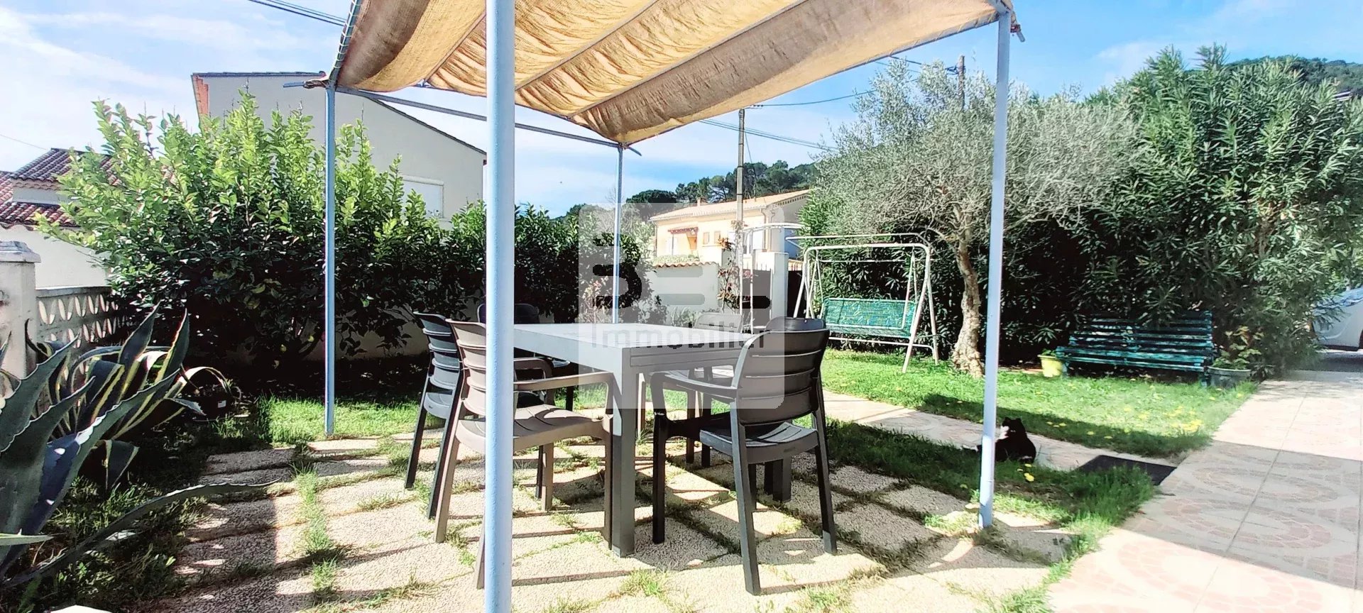 Réf:3353DC. Dans quartier agréable à 5mns des commodités, agréable maison de plain pied sur terrain de 610m² avec forage et piscine. Elle comprend un beau séjour de 40m² environ, une cuisine dinatoire aménagée, 3 chambres, une salle d'eau, un garage avec porte automatique. Le terrain est entièrement clos et arboré avec piscine 7x3 sécurisée. Prestations complémentaires: portail automatique et portillon, visiophone, forage, baie vitrée en alu et volets roulants.