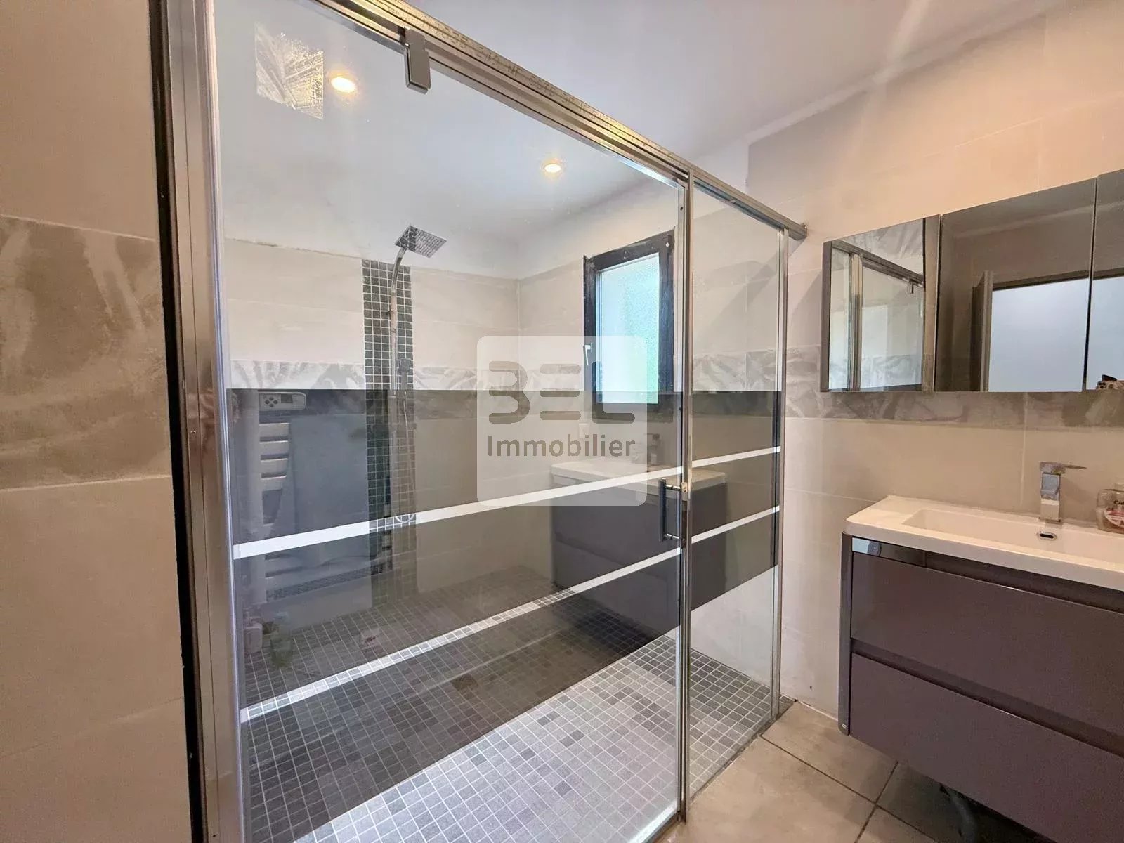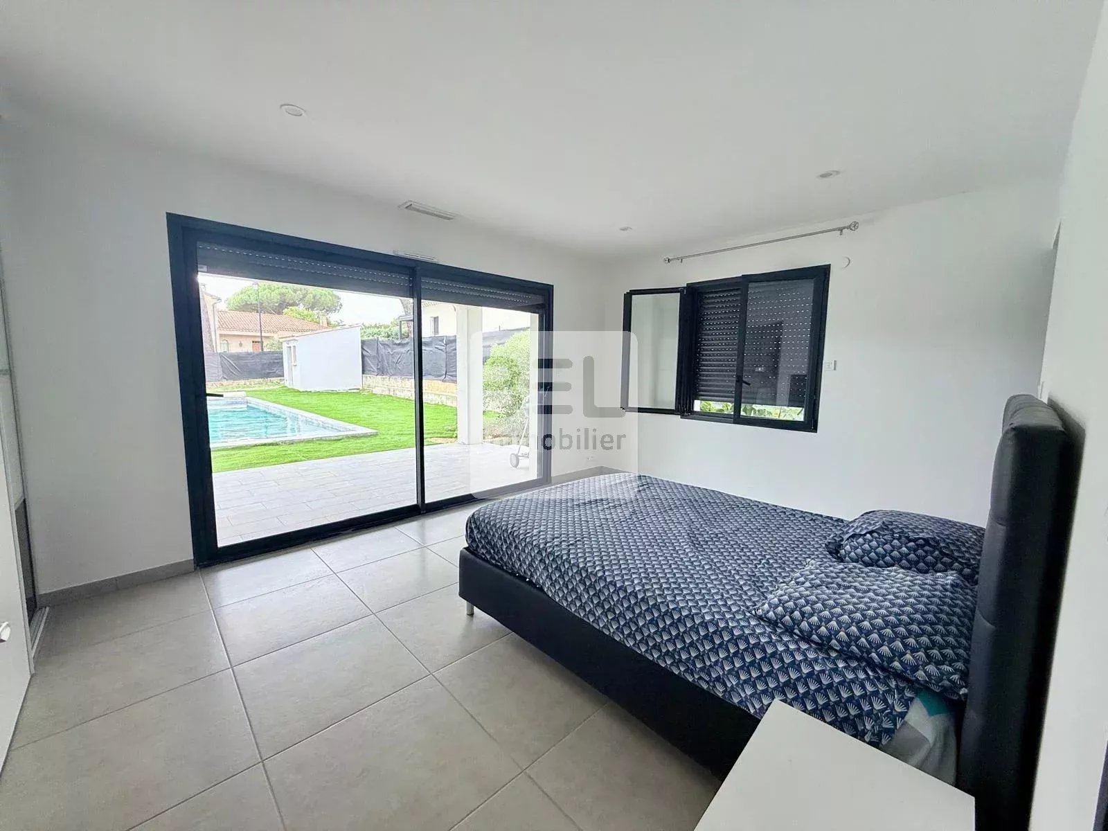 Cette maison est entièrement meublée et équipée, elle comprend quatre pièces spacieuses et climatisées, dont un séjour, une salle à manger, et une cuisine américaine aménagée et équipée, deux chambres avec dressing, une suite parentale avec dressing et salle d'eau privative avec w.c, une seconde salle d'eau spacieuse et un w.c indépendant.