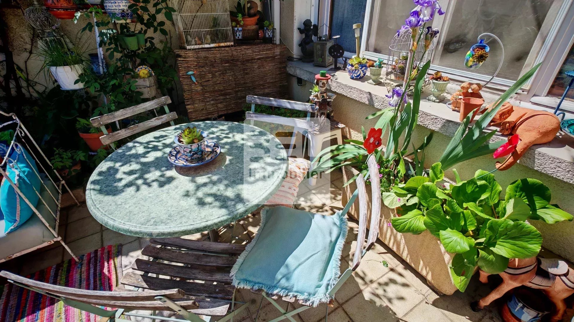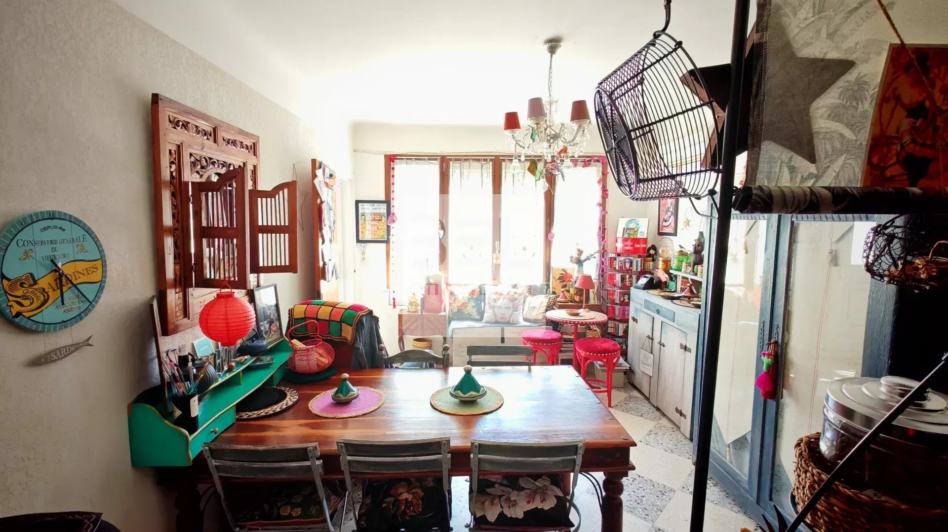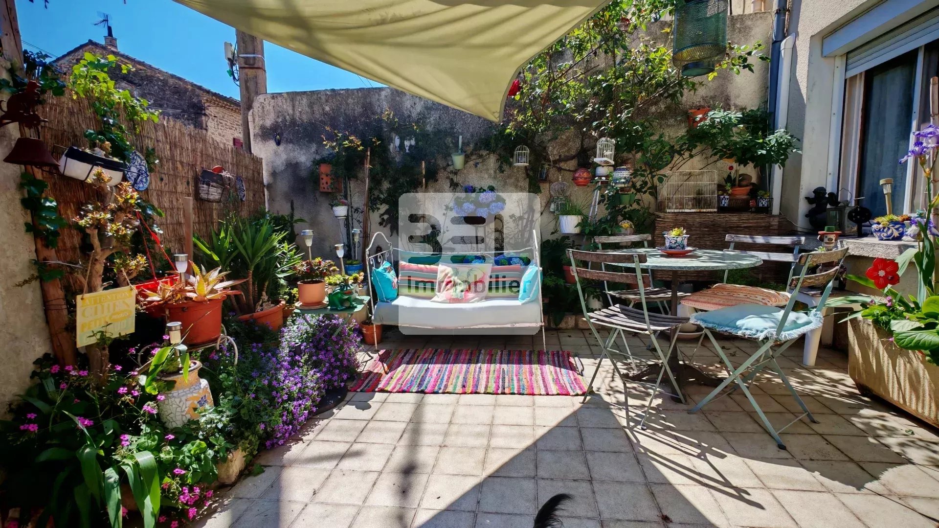 Le séjour principal est accueillant et donne directement sur la cour avec sa charmante terrasse chaleureuse, parfaite pour des moments de détente en famille ou entre amis.