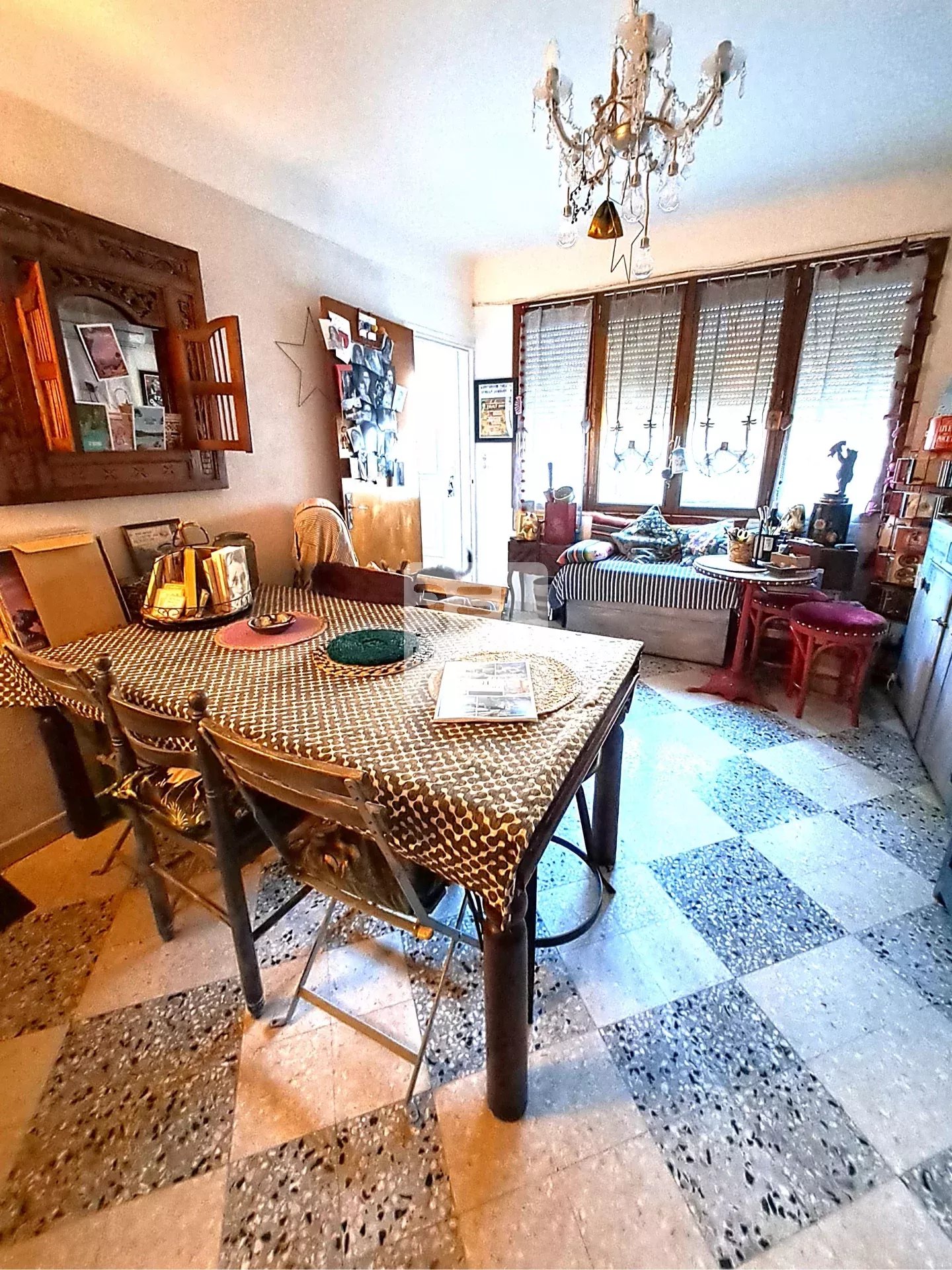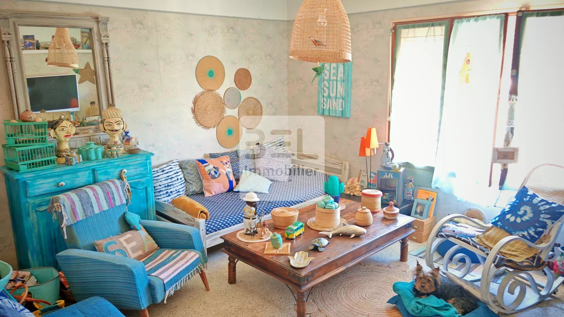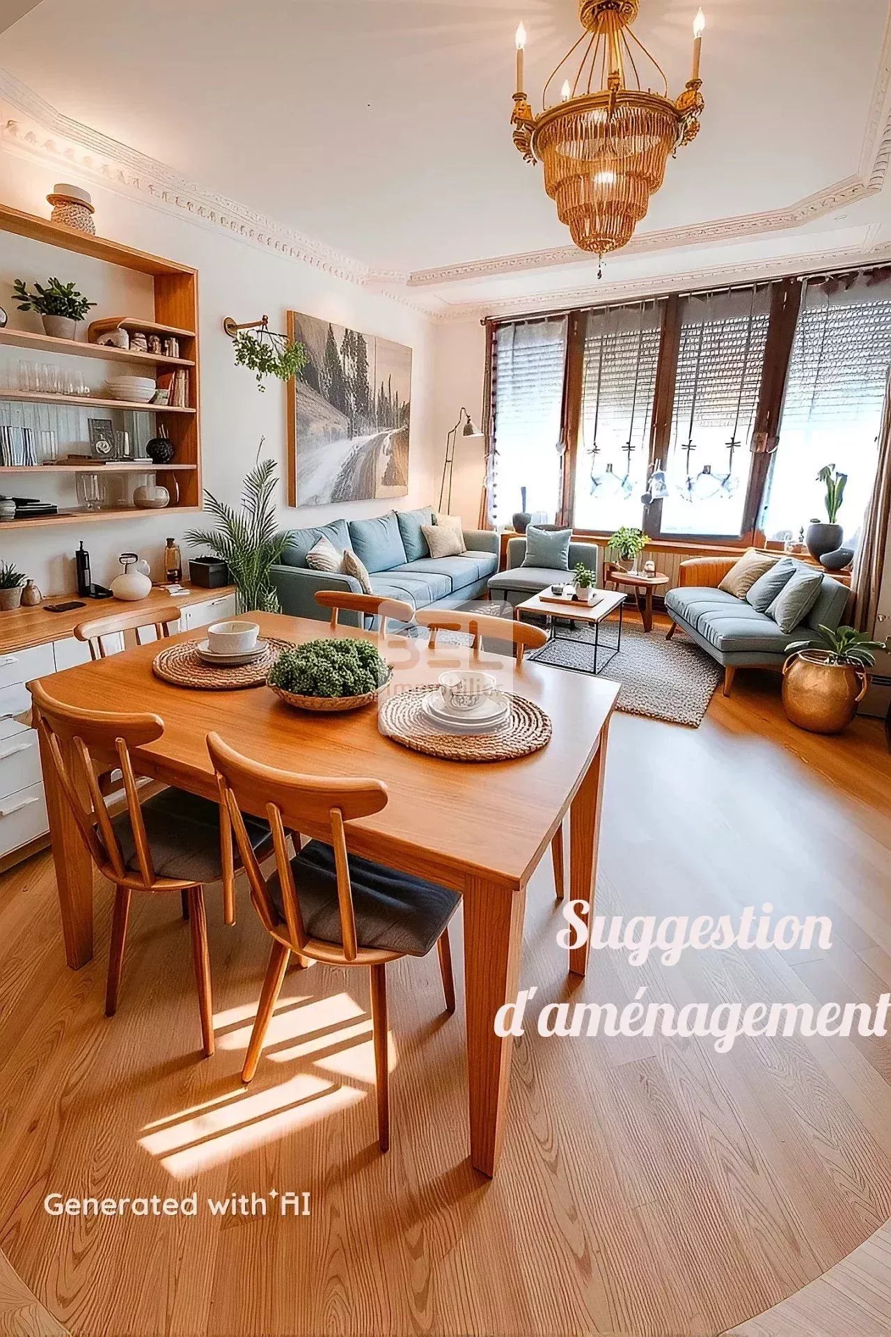 Le séjour principal est accueillant et donne directement sur la cour avec sa charmante terrasse chaleureuse, parfaite pour des moments de détente en famille ou entre amis.