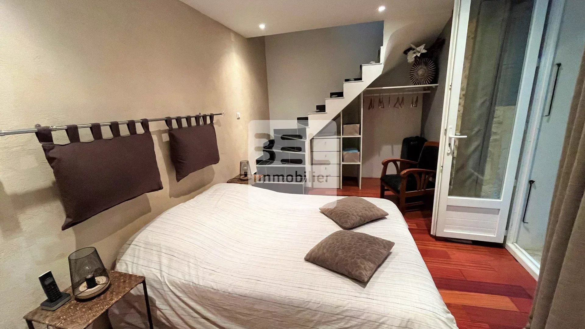 Depuis le RDC, deux accès possibles, soit par l' escalier intérieur ou par le patio via l'escalier extérieur.