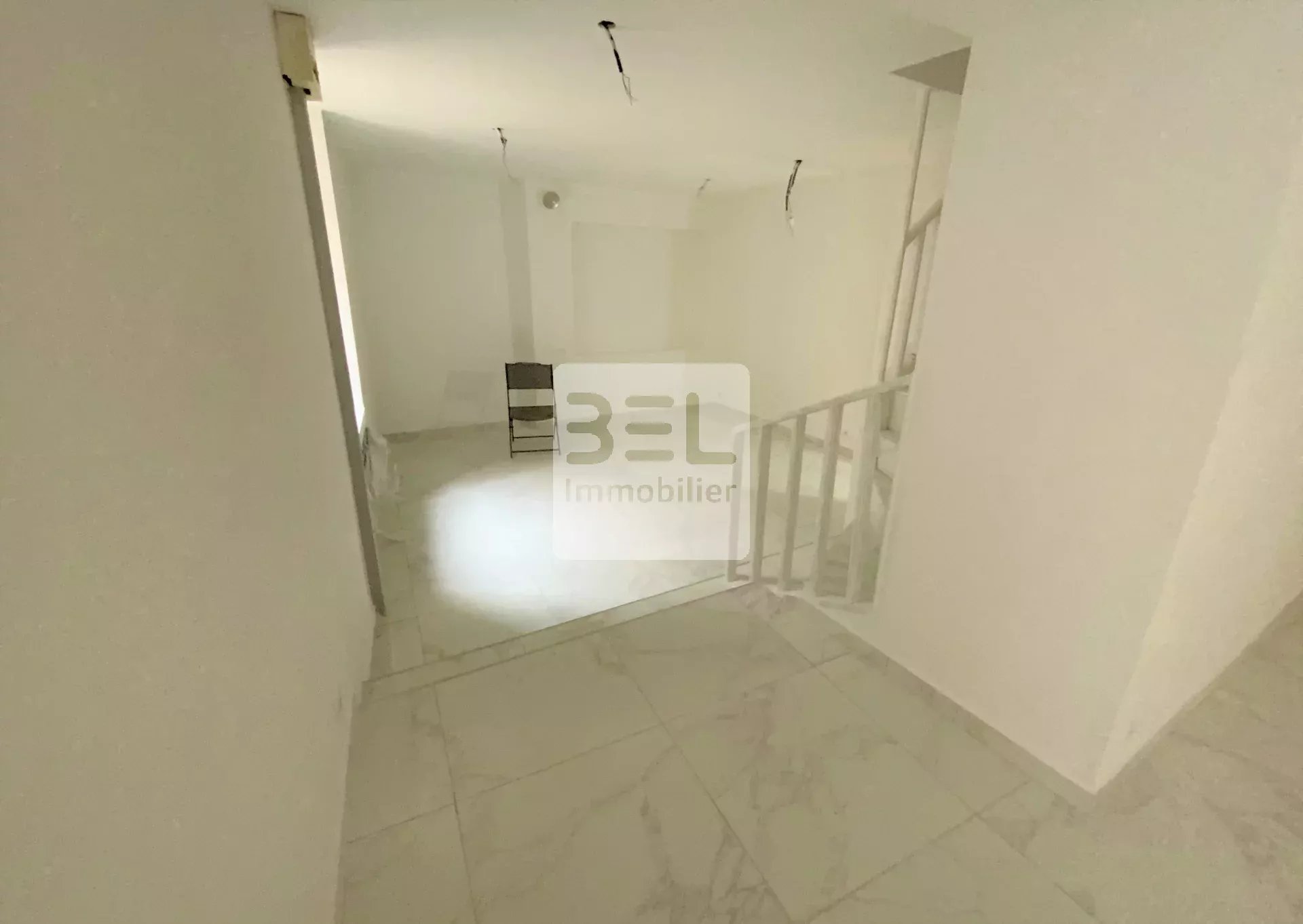 Puis au dernier niveau une chambre avec accès à un vaste espace toit terrasse sur lequel se trouve un toilette et une douche.