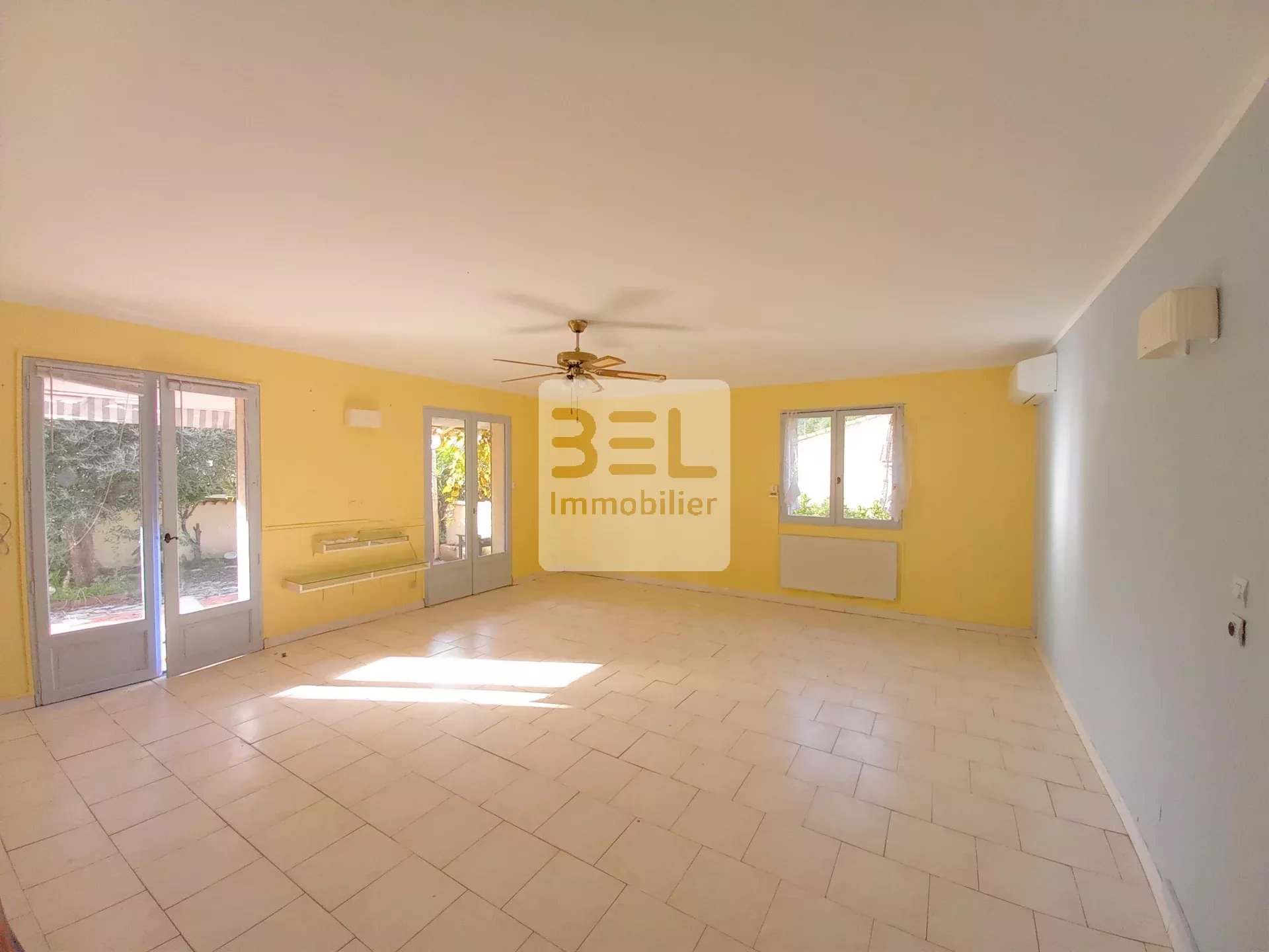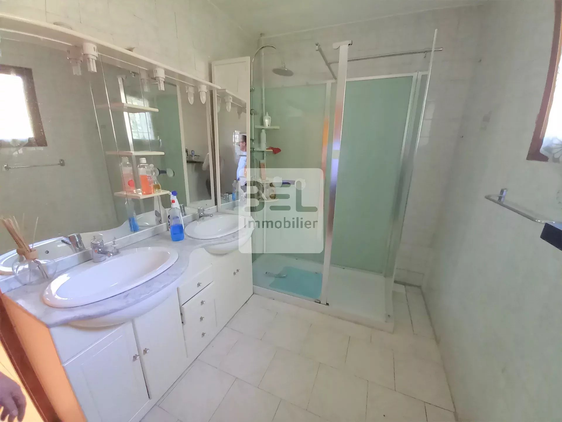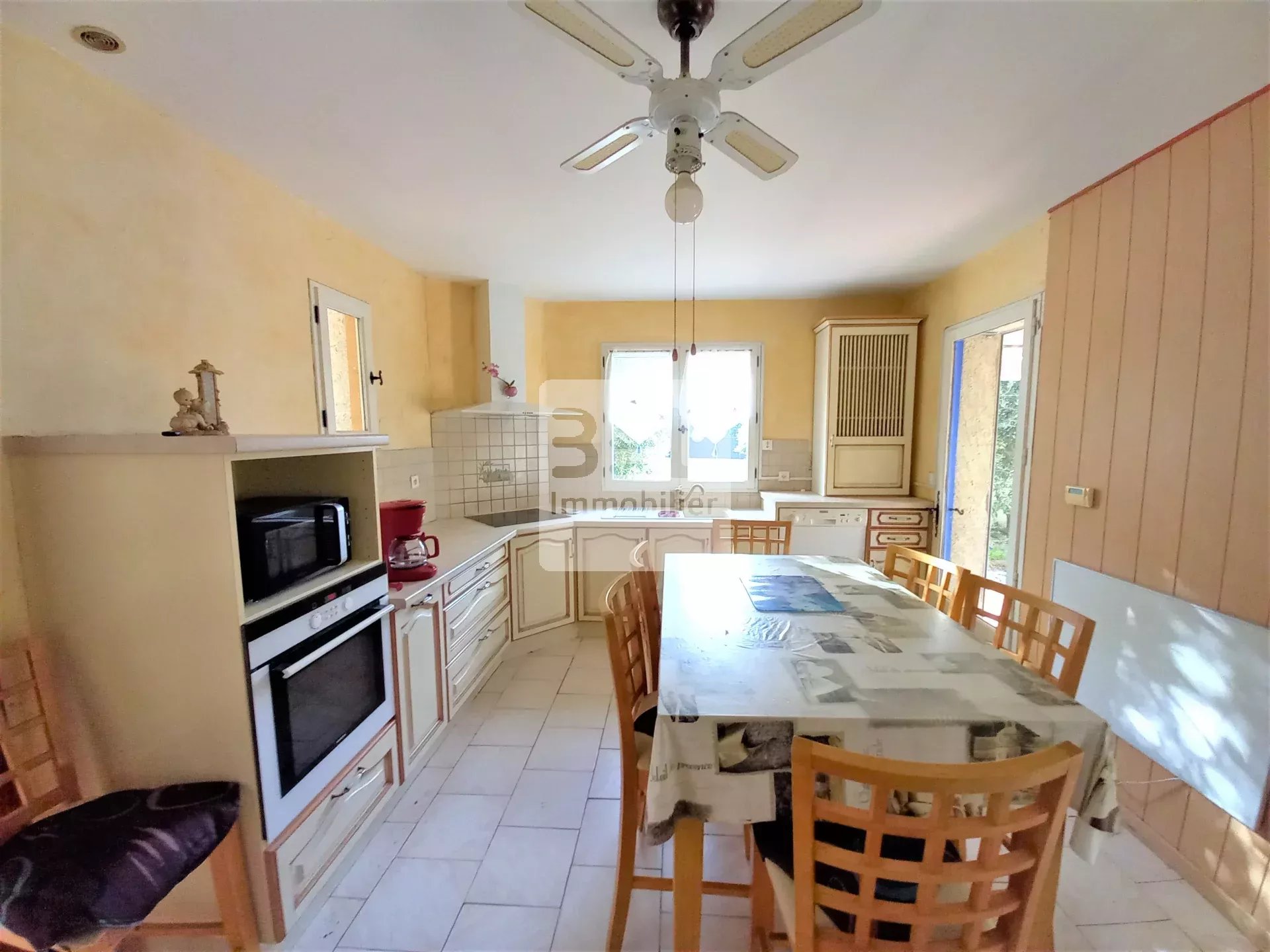 Réf : 612DC. Dans un quartier résidentiel de Bagnols à 5mns du centre-ville, venez découvrir cette agréable maison lumineuse. Elle comprend 4 chambres dont 2 au rez de chaussée, 2 salles d'eau, un beau séjour avec cheminée insert donnant sur terrasse, cuisine dinatoire, grand garage avec porte automatique, grande cave. Terrain plat entièrement clos et arboré, portail et portillon automatique, puits et panneaux solaires. A ne pas manquer.