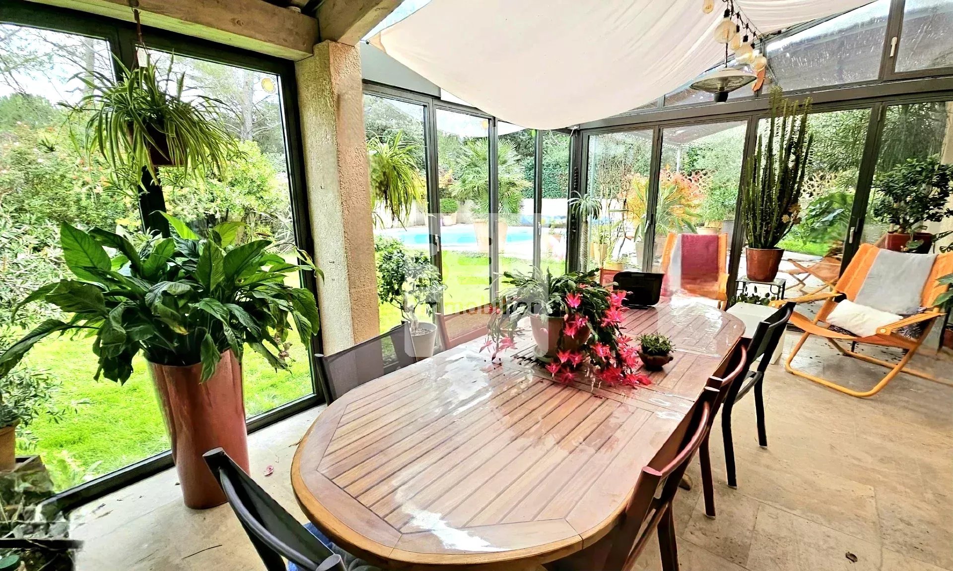 Cet espace s’ouvre sur une lumineuse véranda de 30 m², véritable prolongement de la maison, tournée vers la nature.