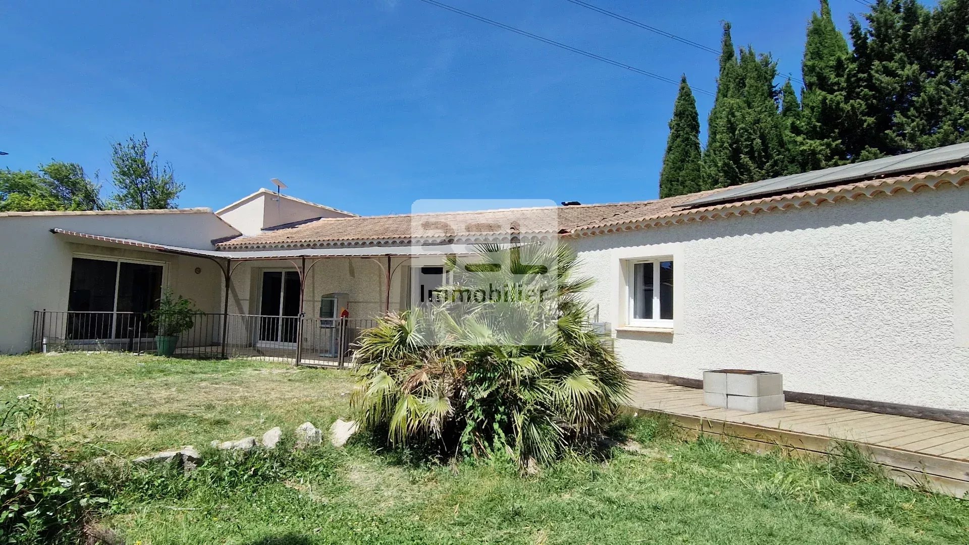 Ref:3999CB NOUVEAUTÉ EN EXCLUSIVITÉ Située en fond d'impasse en quartier résidentiel, venez découvrir les superbes volumes de cette propriété, composée d'une habitation principale et d'un appartement indépendant, totalisant 220m2 environ et 5 chambres. ** La maison principale de plain-pied d'environ 175m2, comprend une cuisine équipée et ouverte sur un double séjour, offrant un espace de vie de près de 70m2, baigné de lumière par son exposition plein sud. 4 chambres, dont une très belle suite parentale avec salle d'eau, 2 dressings et une salle de sport avec sauna. Une salle de bain supplémentaire, 2 toilettes séparées et un cellier/buanderie. Pour encore plus de confort, cette villa suréquipée est munie d'un système de chauffage par pompe à chaleur, climatisation réversible en gainable, de panneaux solaires, un poêle à bois, menuiseries en double vitrage, vidéoprojecteur cinéma, et portail électrique. Un agréable jardin arboré de plus de 2500m2 avec piscine vous permettra de profiter du calme de la campagne au bord de l'eau. ** L'appartement T2 d'environ 45m2, totalement indépendant, se compose d'une pièce de vie avec cuisine équipée, d'une chambre, d'une salle d'eau, WC séparés, terrasse et jardinet sans aucun vis à vis. Un potentiel de rentabilité locative très intéressant, et permettant un autofinancement partiel du bien. Loyer mensuel 750€/mois, ou en saisonnier pour davantage de rentabilité. Bien actuellement libre de toute occupation. Une partie du terrain reste encore constructible, ou cessible. Rochefort-du-Gard est idéalement situé: proche Villeneuve-lès-Avignon, 15mn de la gare TGV et des axes autoroutiers A7/A9, 1h du bord de mer. Classe énergie C Pour toute information complémentaire ou visite contactez Céline BERNARD 0626366287