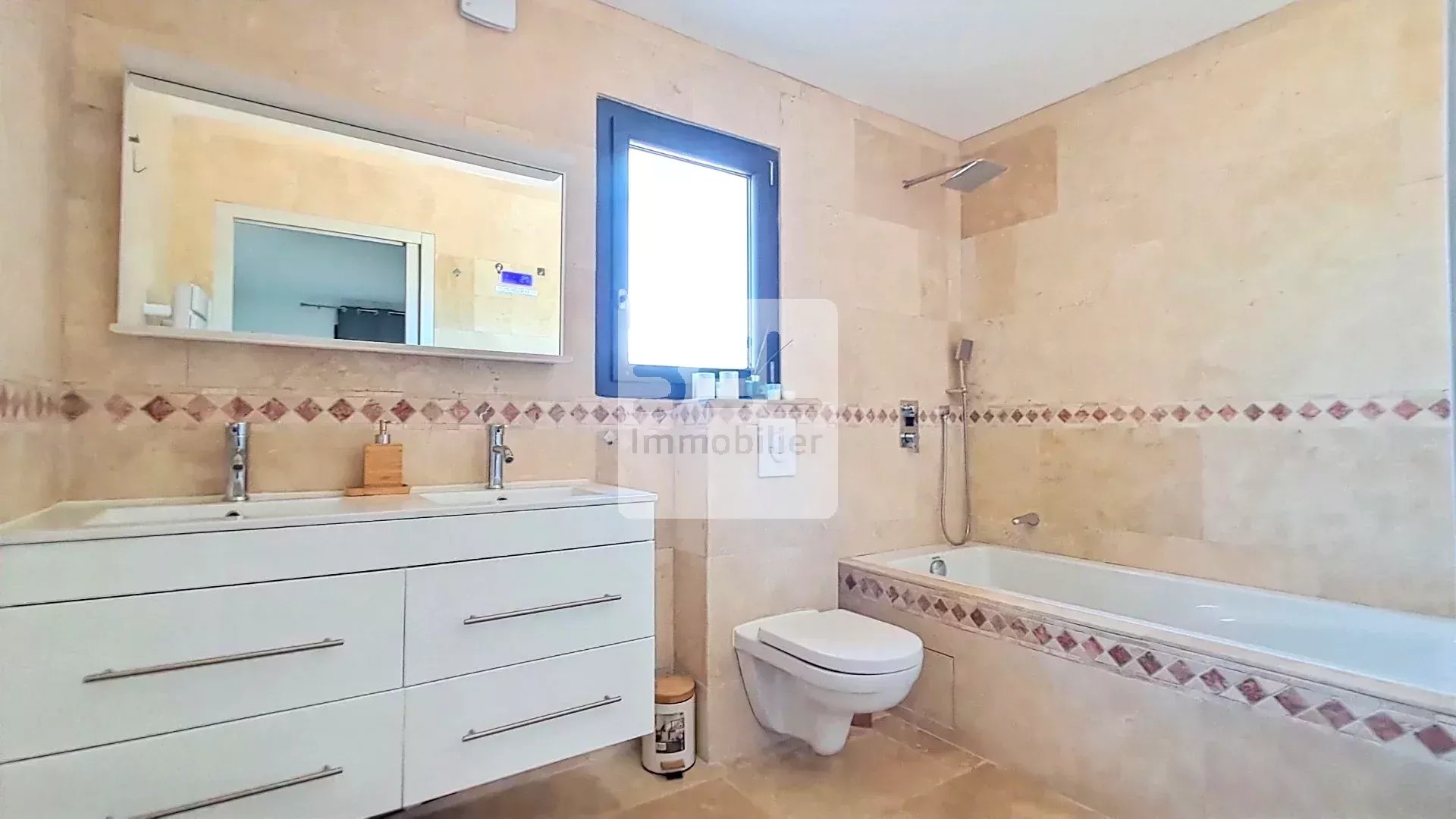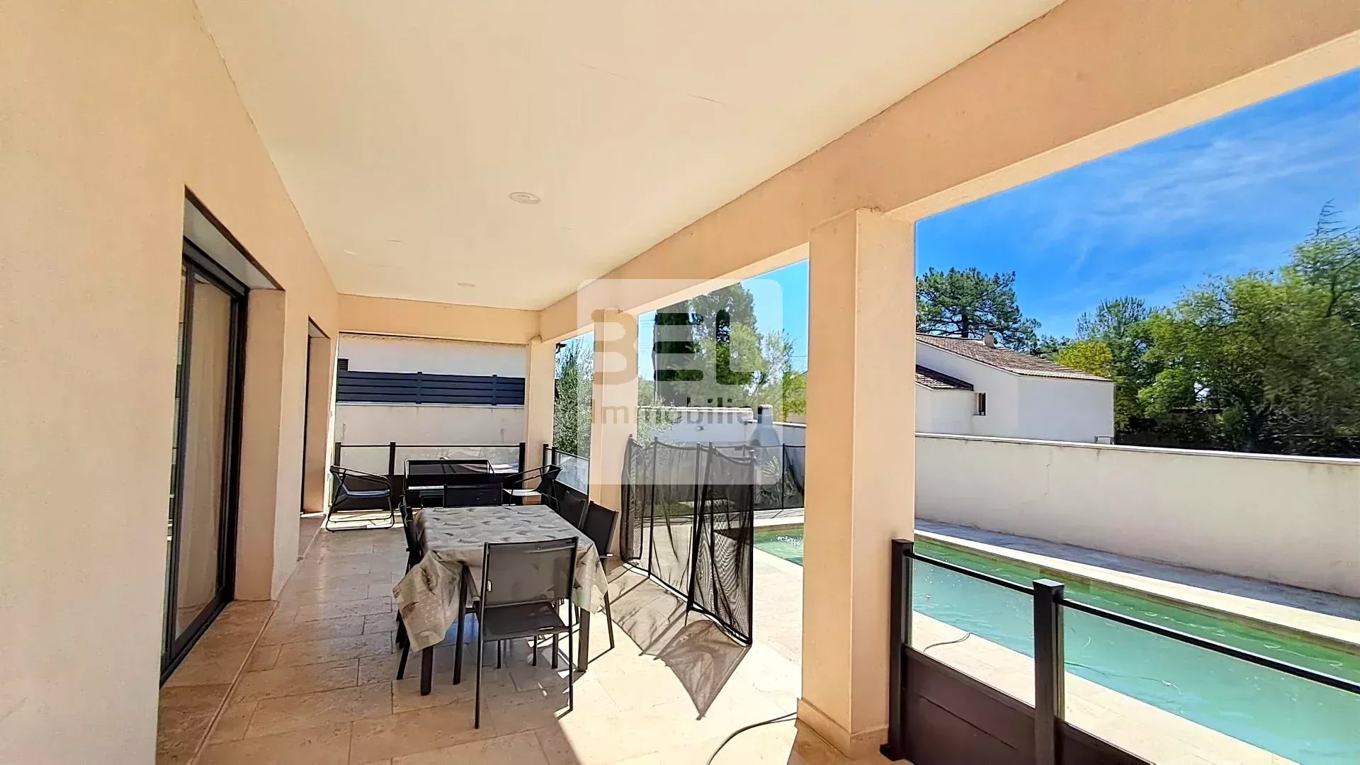 La pièce maîtresse de cette demeure est sans aucun doute son espace extérieur. La piscine privée, entourée de chaises longues, invite à la détente et à la relaxation sous le soleil du sud de la France. C'est l'endroit rêvé pour des journées de farniente ou pour organiser des moments de convivialité en famille ou entre amis. La terrasse offre également un espace parfait pour prendre des repas en plein air.