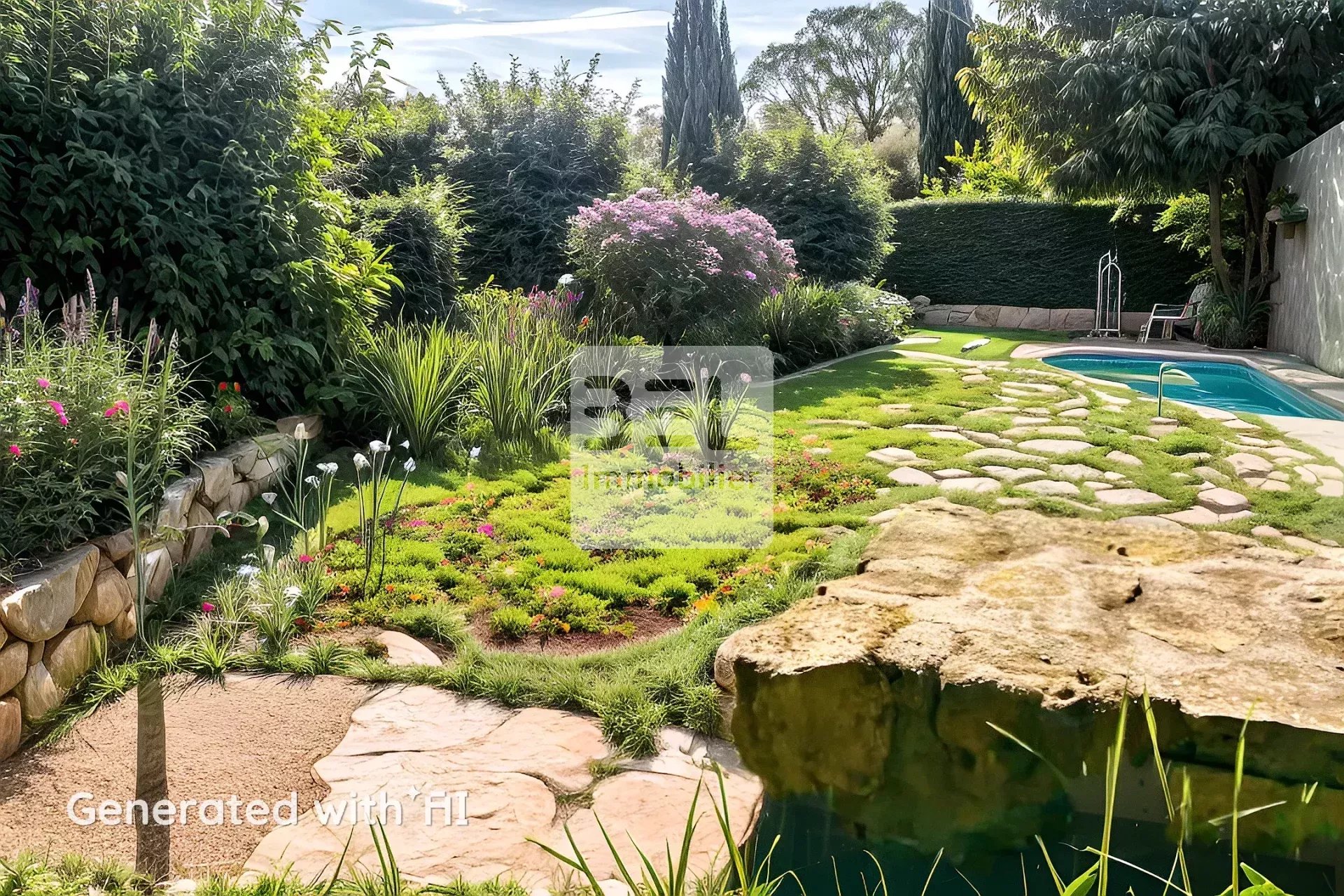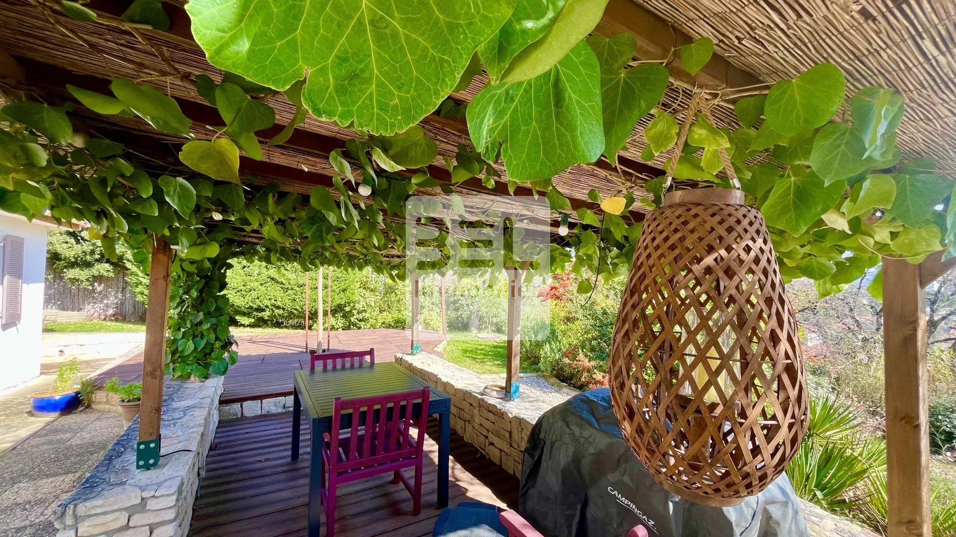 Le jardin de plus de 1000m2, entièrement clôturé propose plusieurs espaces.