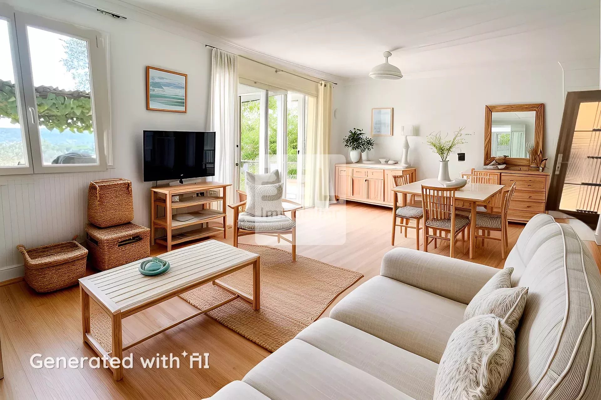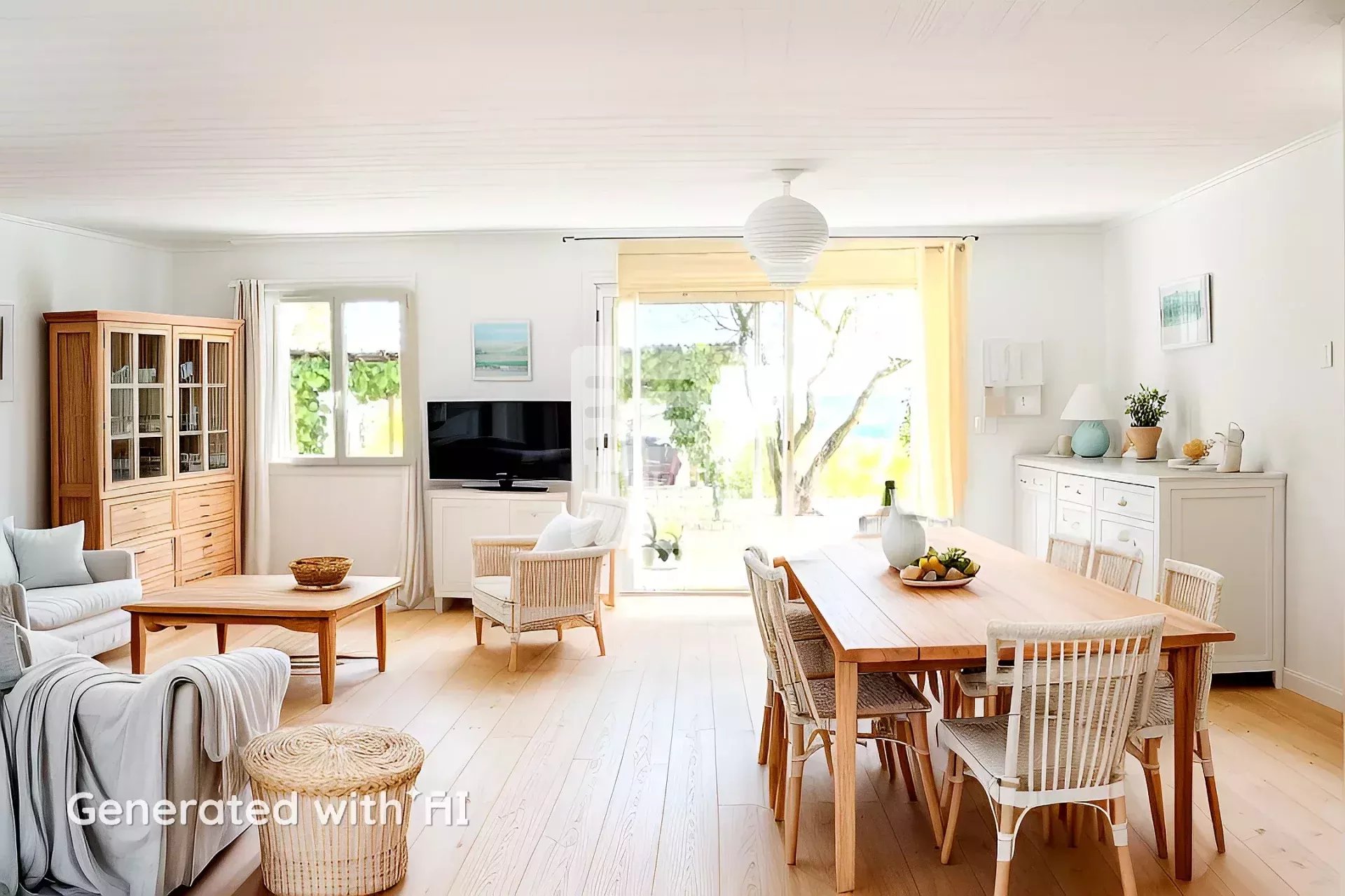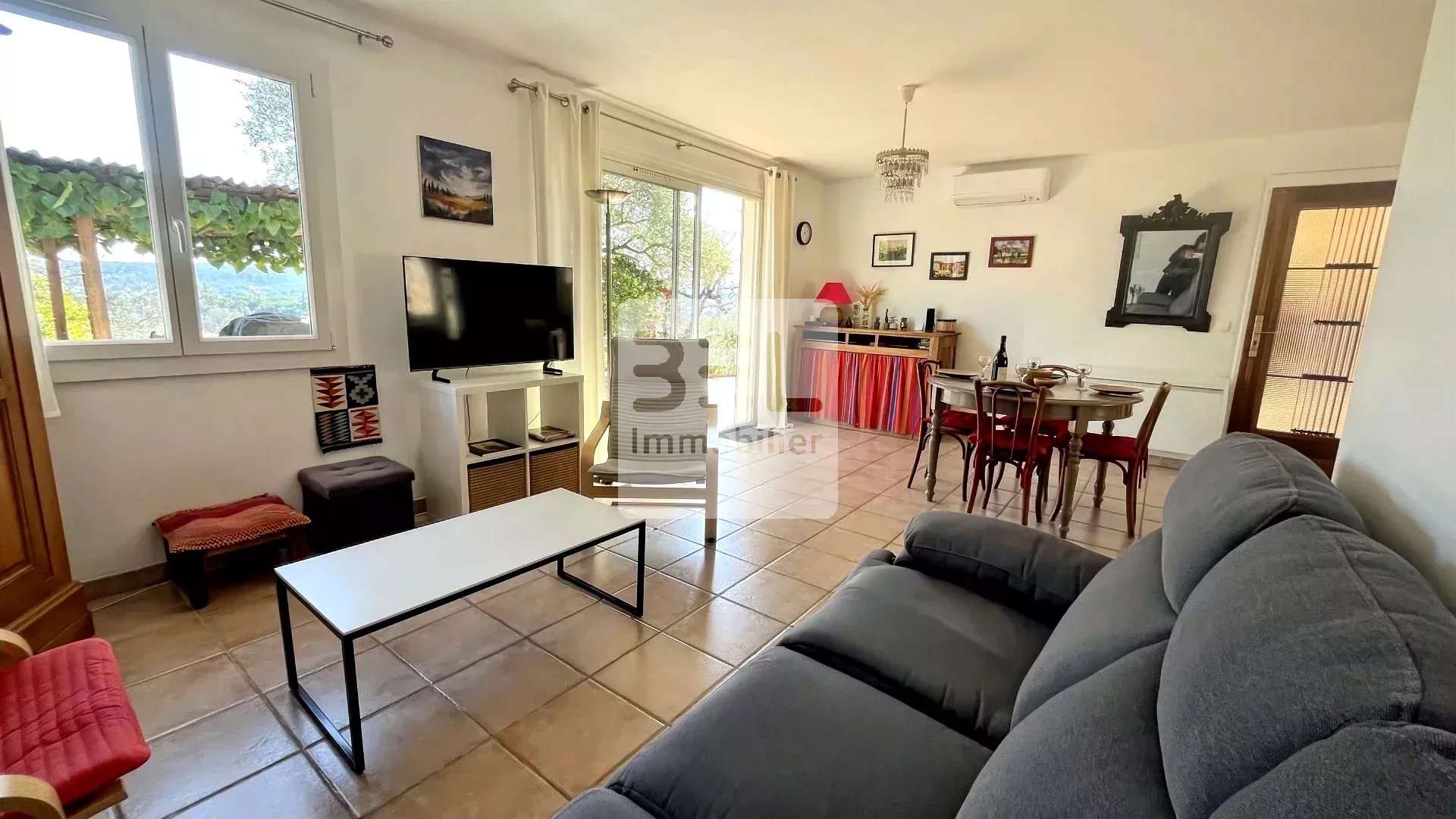 Très fonctionnelle, cette maison propose une entrée qui dessert un salon séjour ouvert vers sa cuisine.