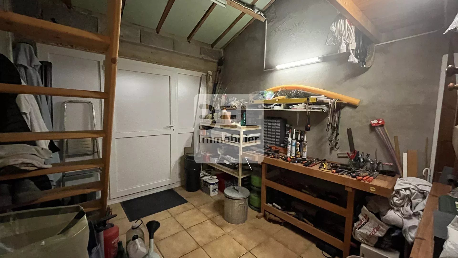 Un atelier complète la maison pour le stockage et le bricolage.