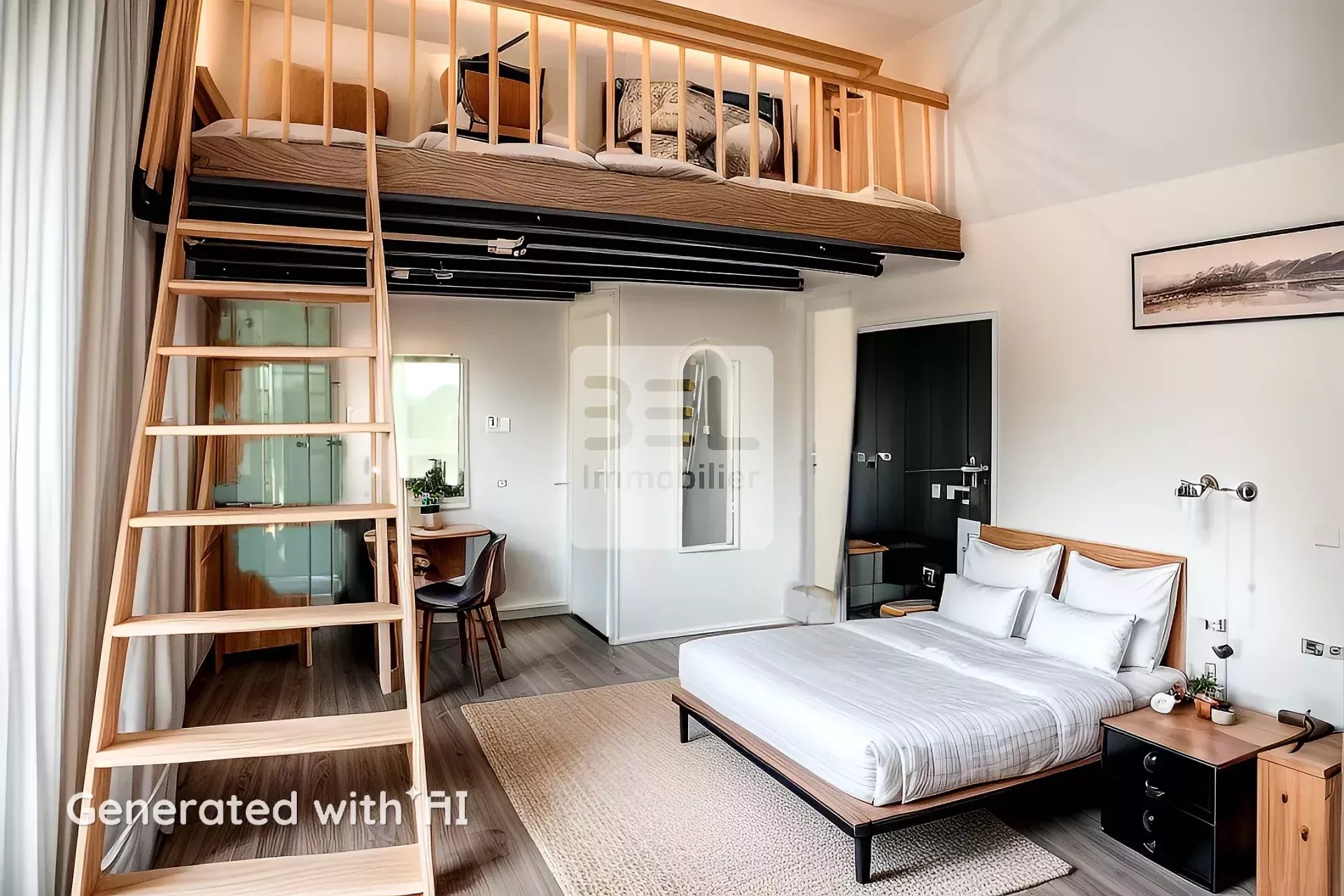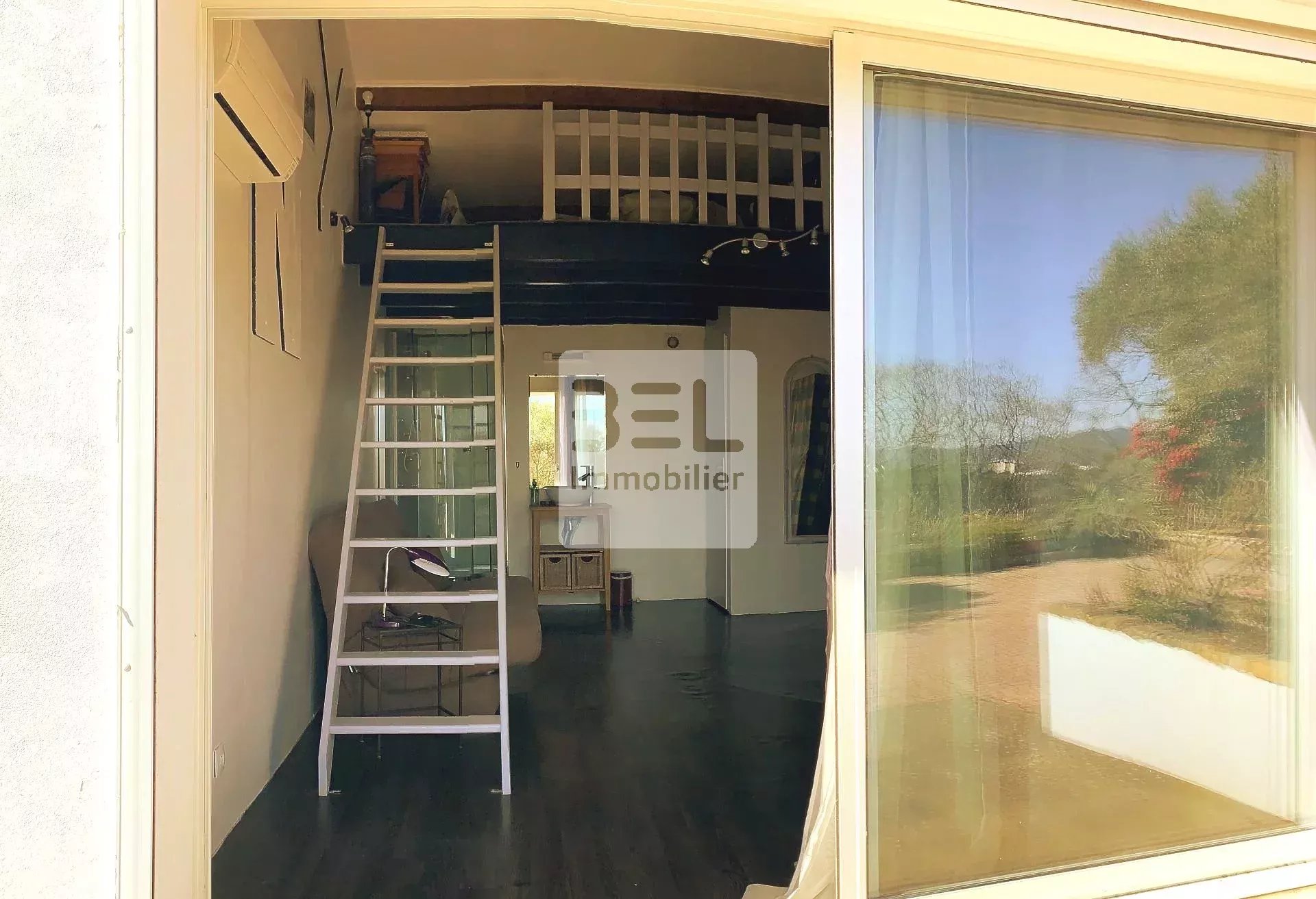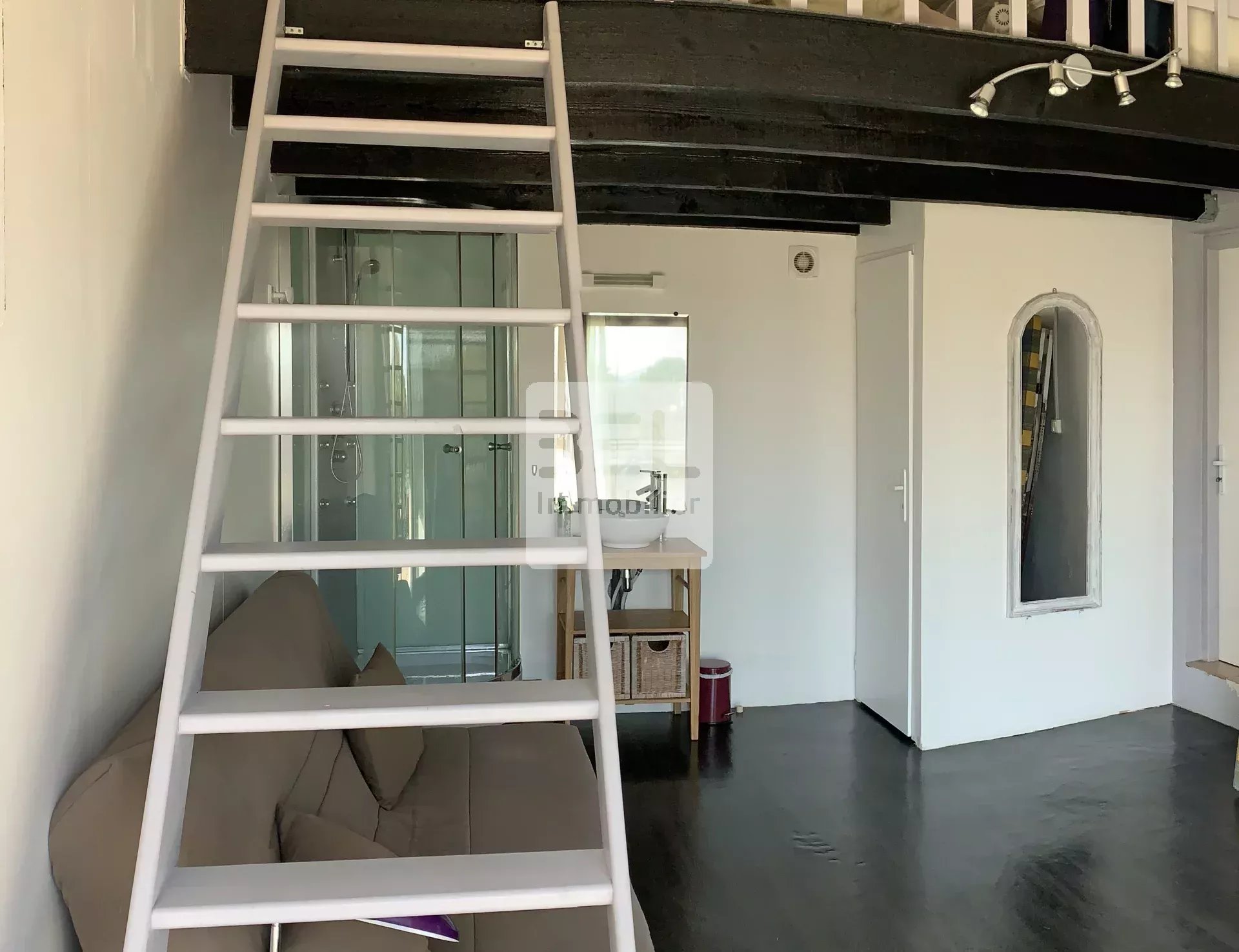 Une salle de bain et des toilettes séparés complètent l'espace.