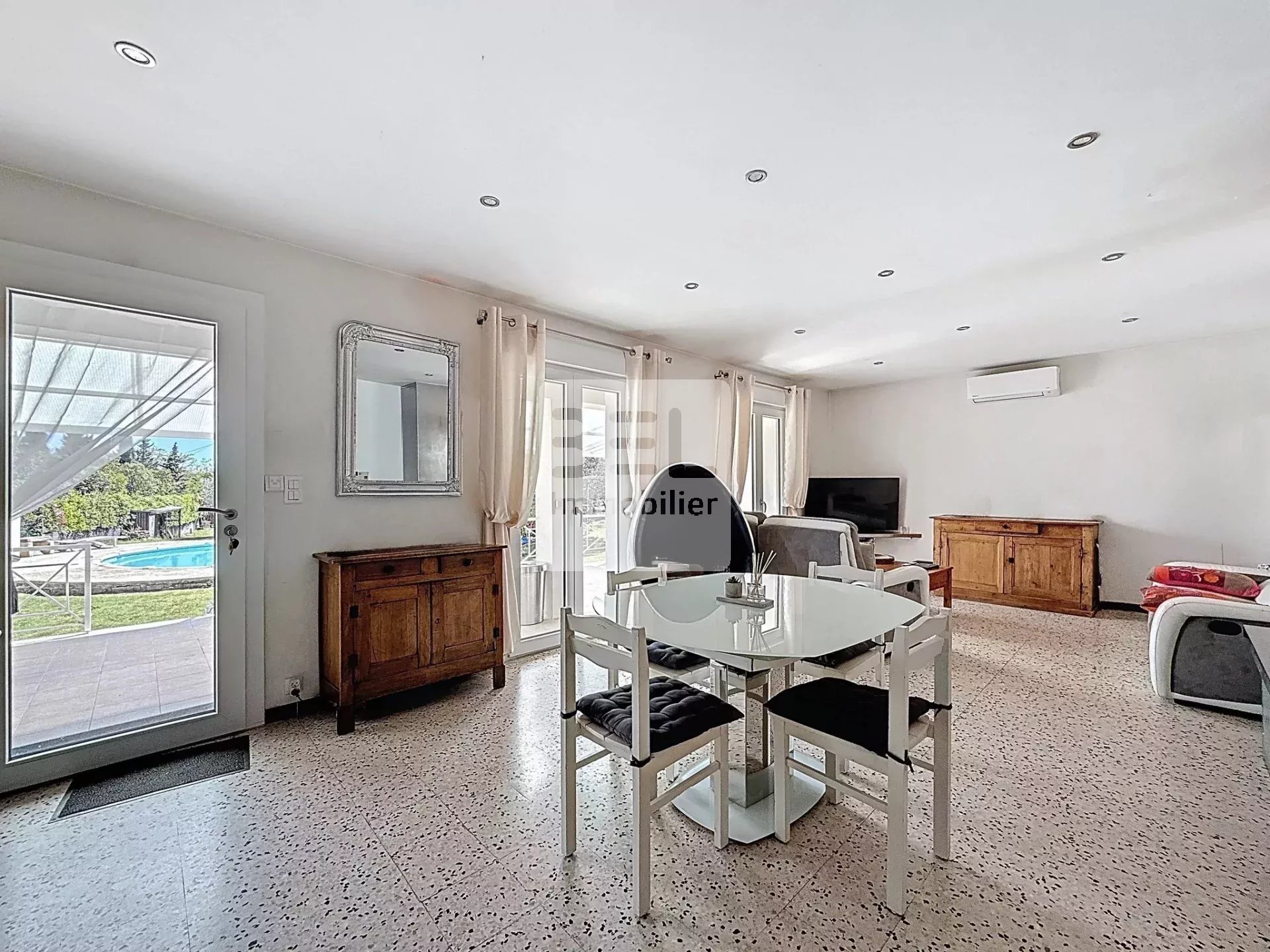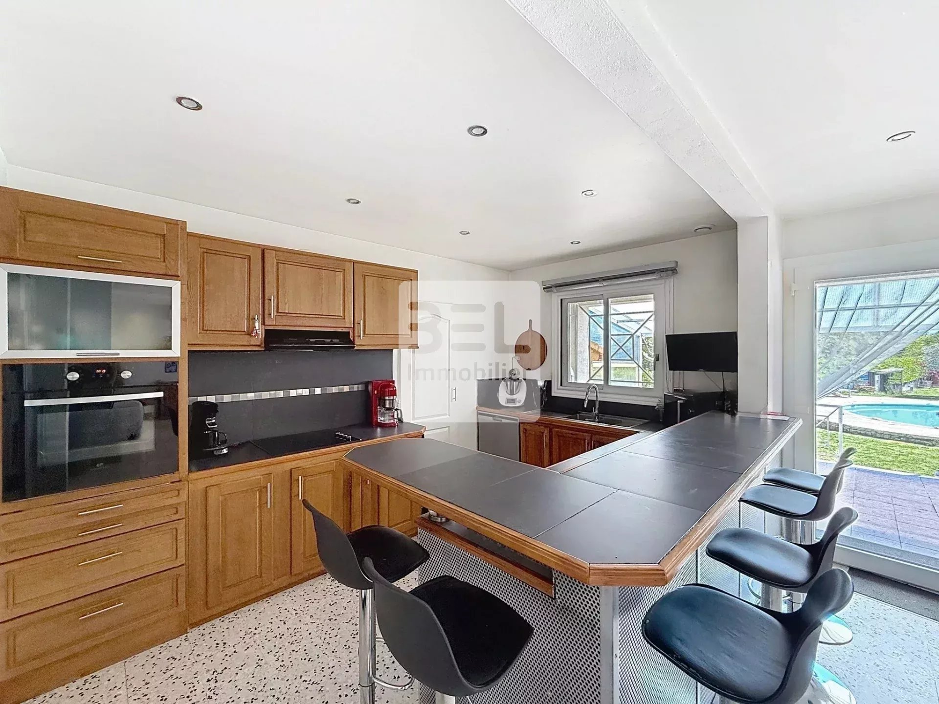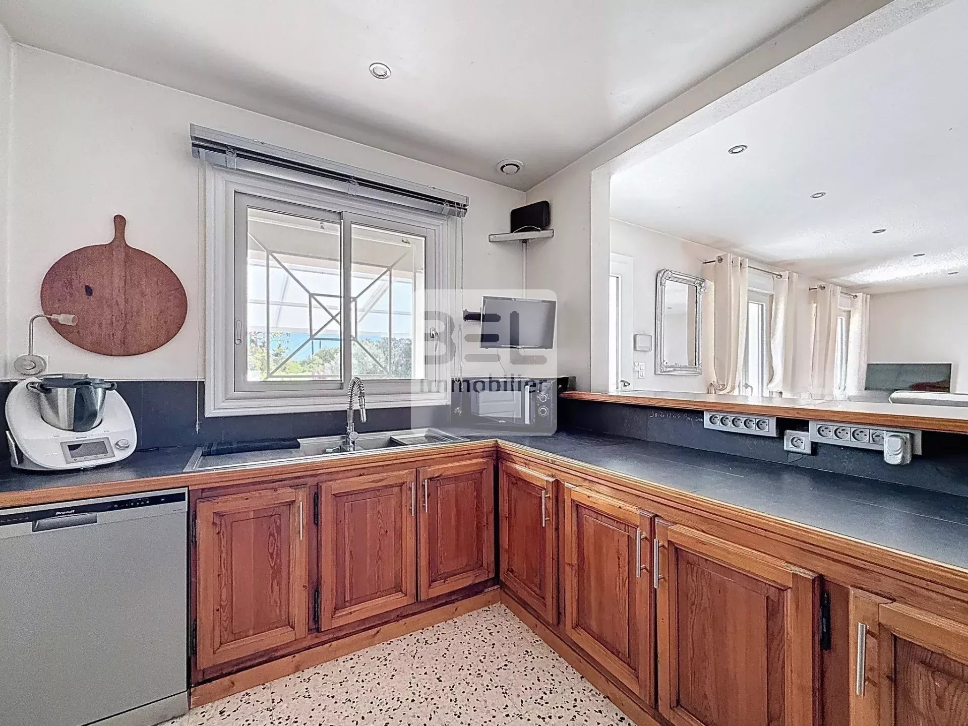 Elle propose un séjour ouvert vers sa cuisine, trois chambres, et un studio indépendant, un avantage idéal pour du locatif saisonnier ou pour recevoir famille et amis.