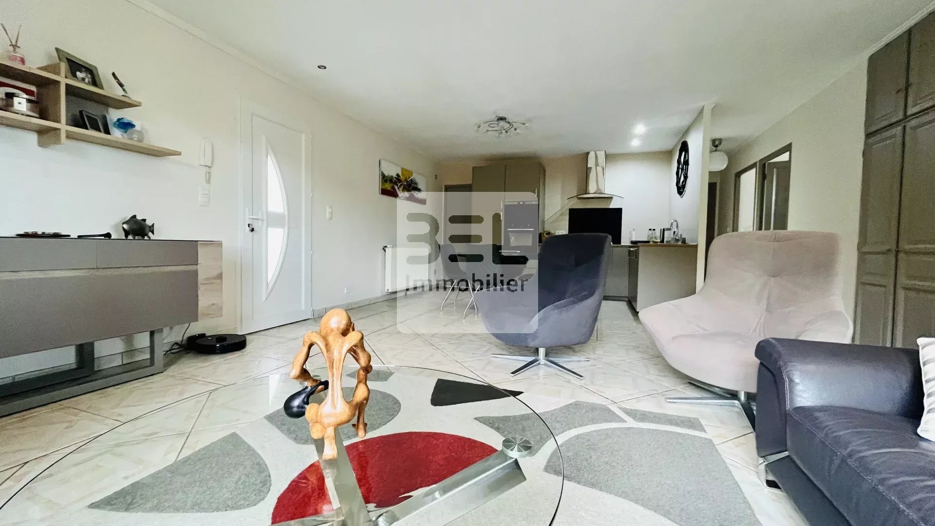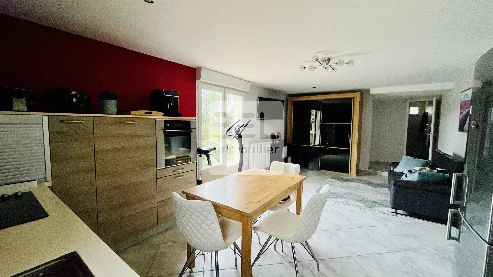 De plain pied depuis son entrée, la maison propose une pièce de vie ouverte sur sa cuisine, le tout communiquant vers sa véranda offrant une grande luminosité et d'agréables moments baignés de soleil à tout cet espace.
