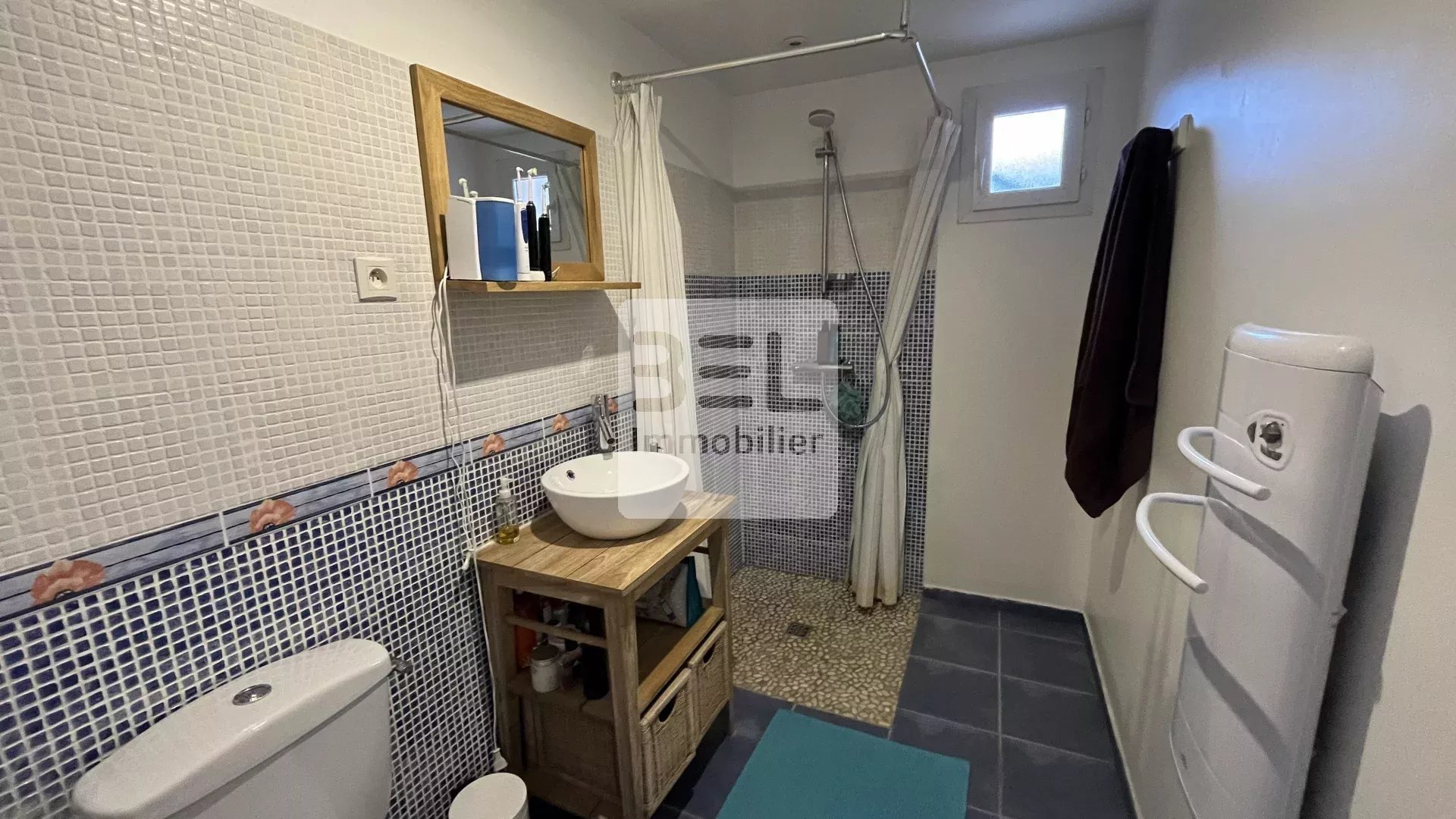 Composée d'une salle d'eau, toilette et d'un séjour cuisine, elle répondra plus particulièrement à un adolescent ou un parent qui cherchera toute son intimité.