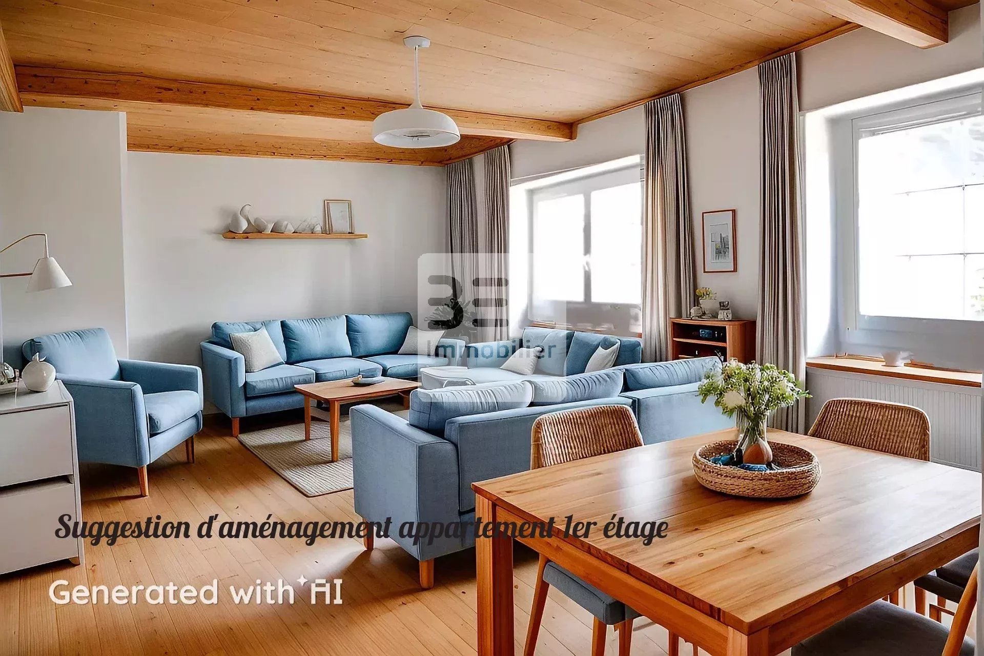 L'étage double les volumes en proposant à nouveau deux chambres, une salle d'eau et un espace salon et cuisine séparée transformable aisément en espace nuit complémentaire.