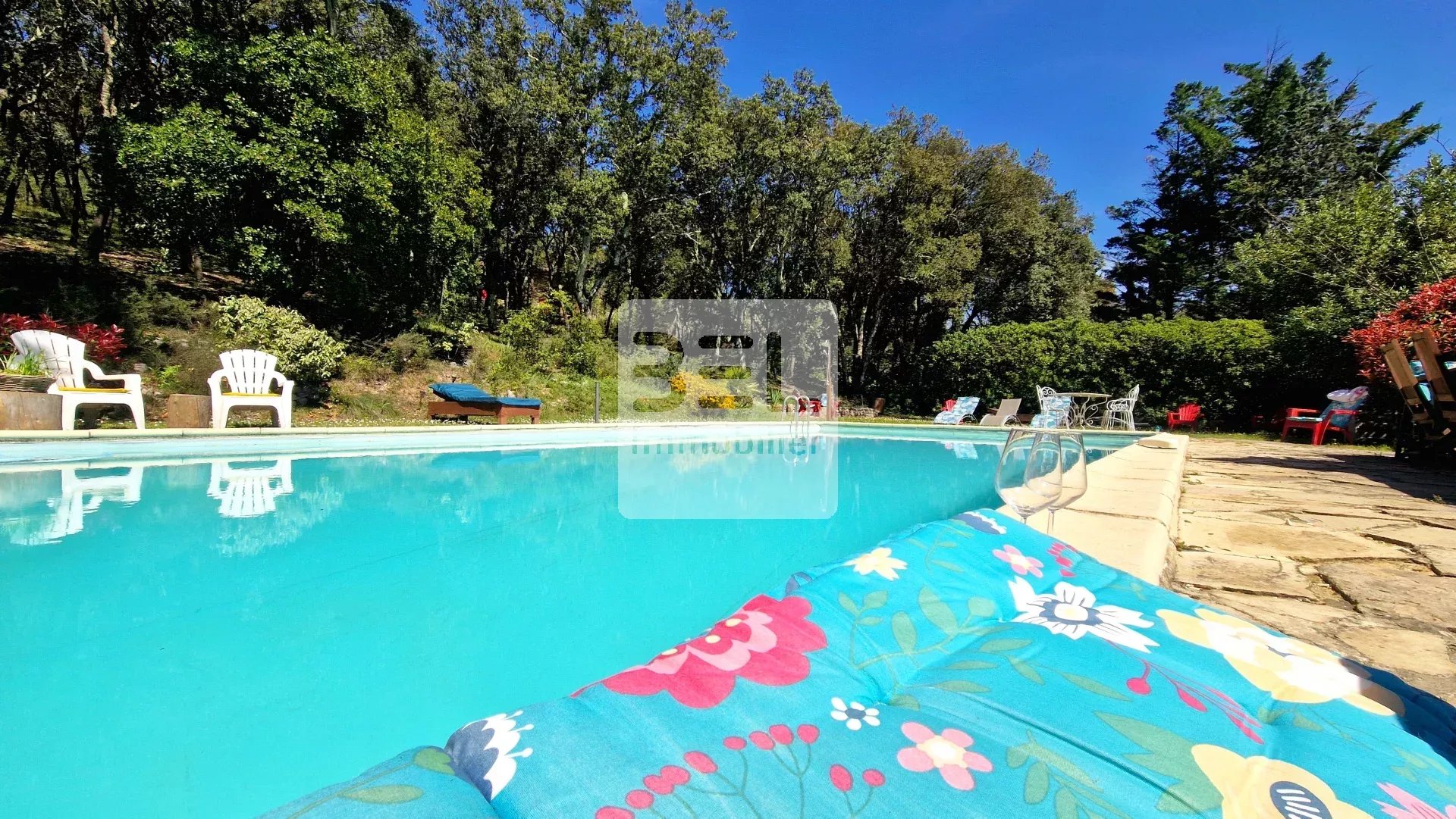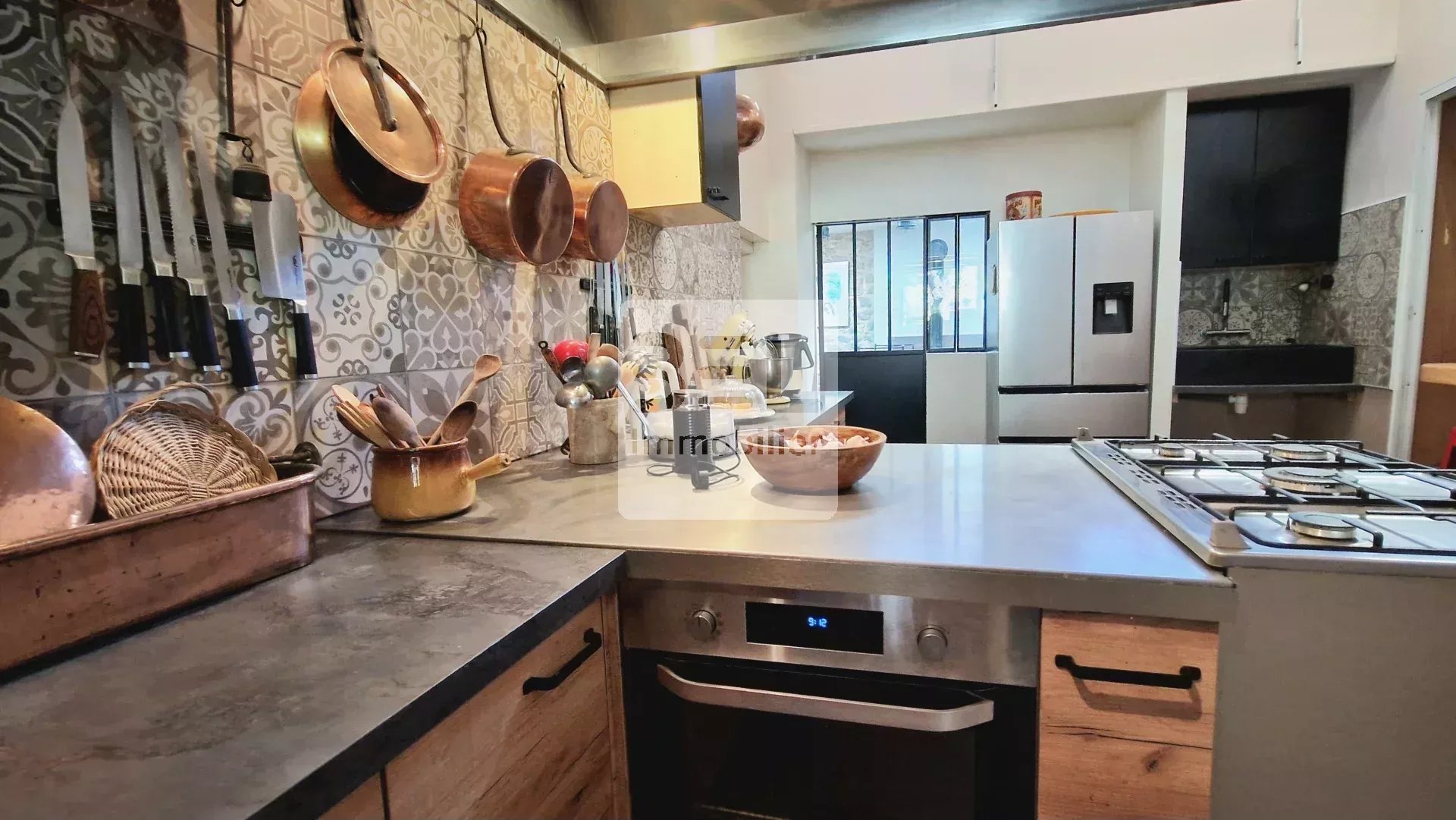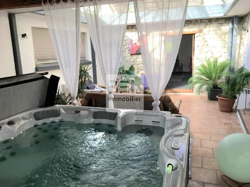 L'ensemble de la propriété est équipé de climatisation réversible par pompe à chaleur, de double vitrage PVC, portail électrique, un grand parking pour stationnement, d'un forage et 300m2 supplémentaires de cave en sous-sol.
