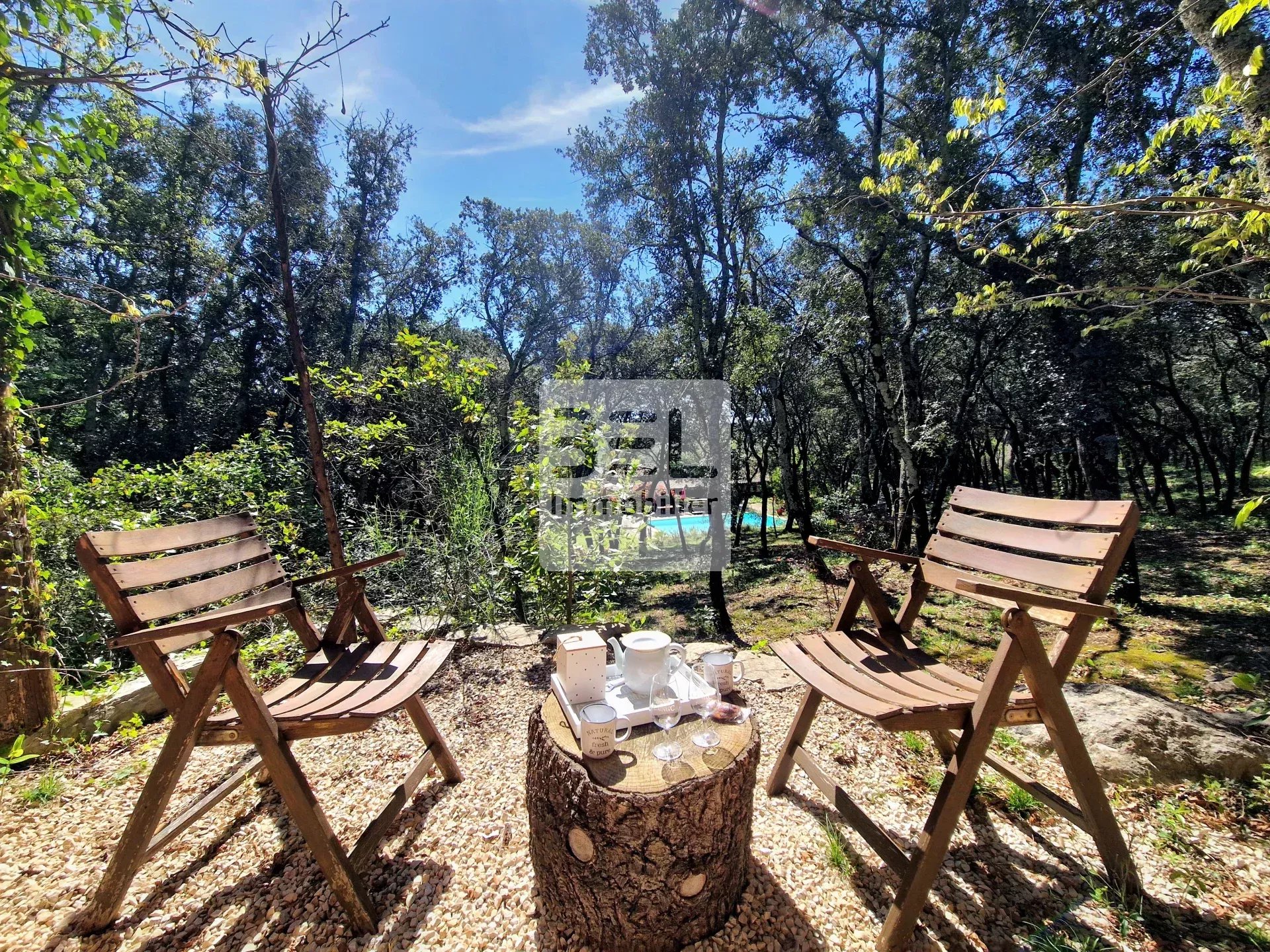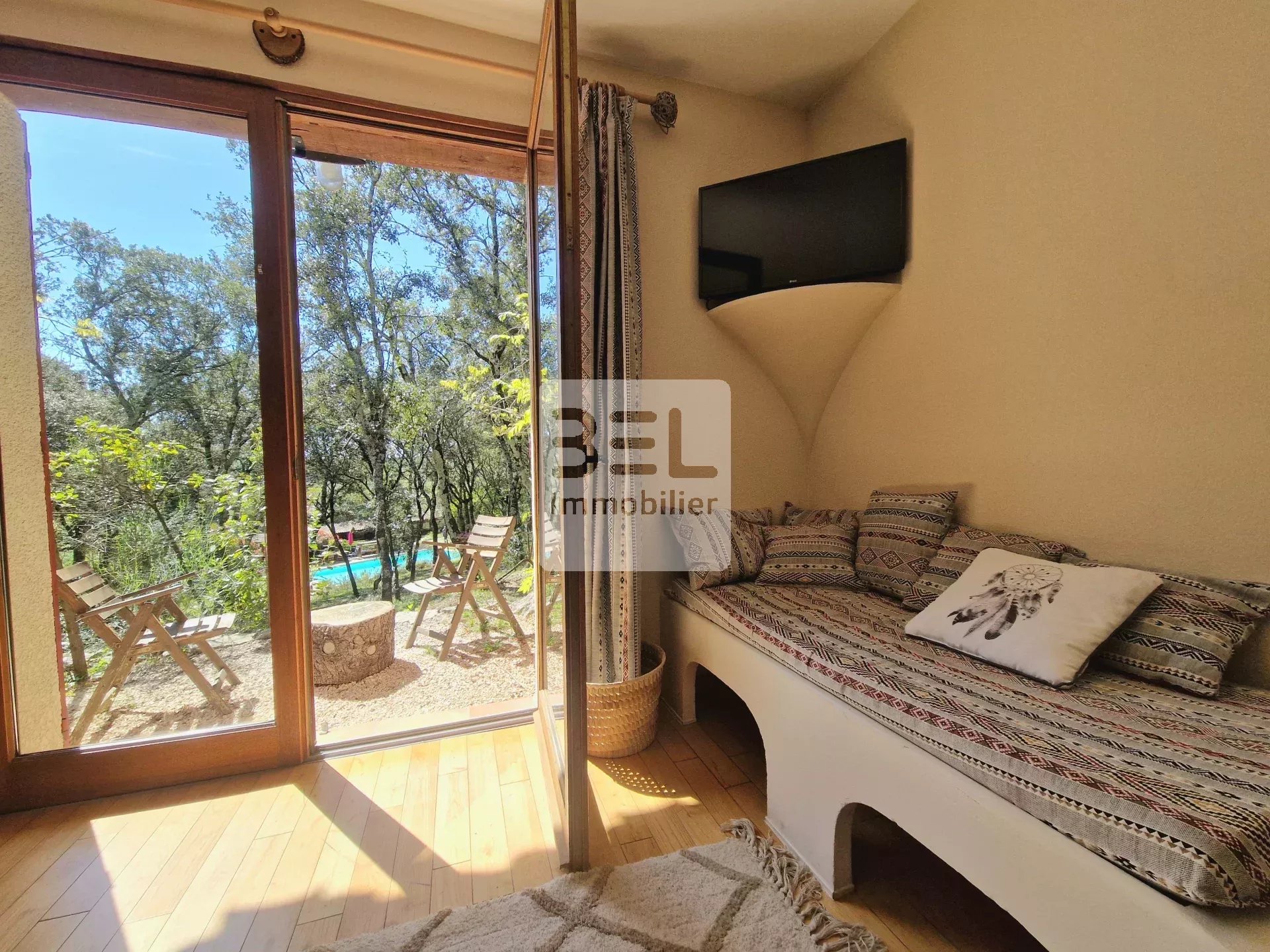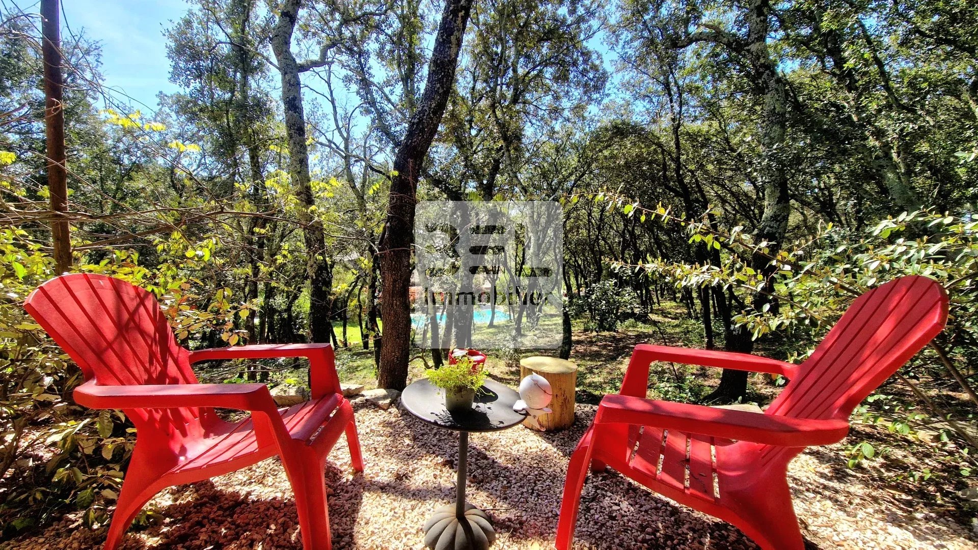De nombreux aménagements extérieurs avec piscine, bar, coin tennis de table, pétanque, et de nombreuses terrasses en pleine nature.
