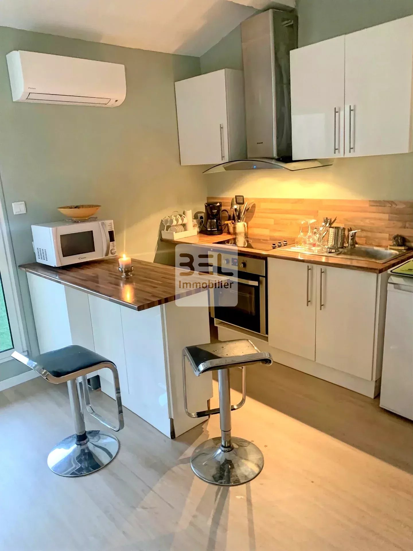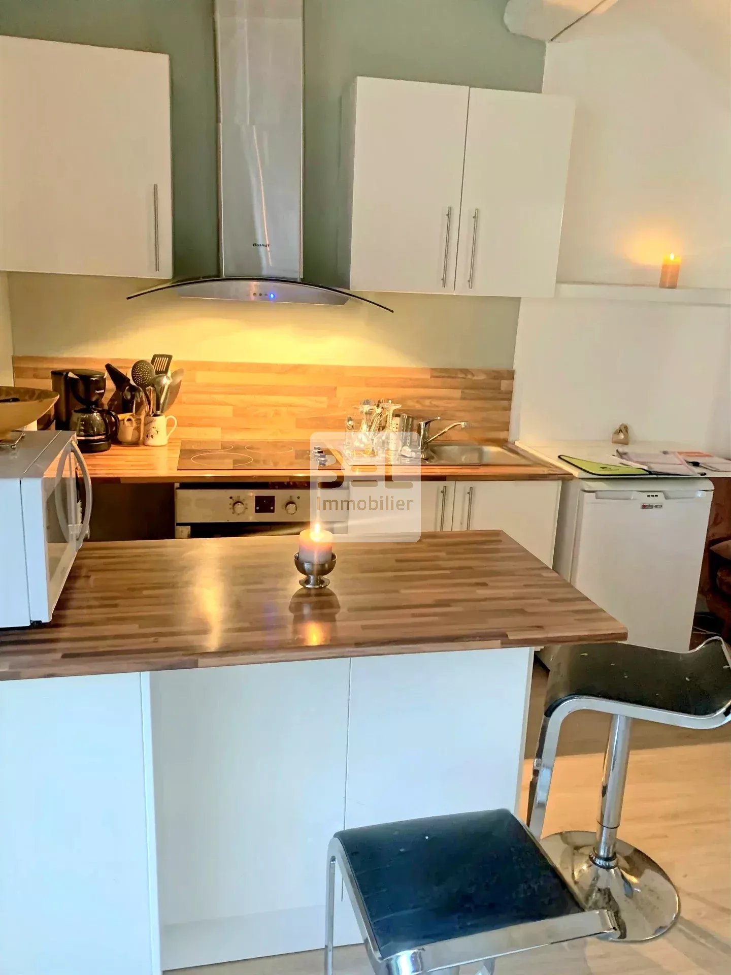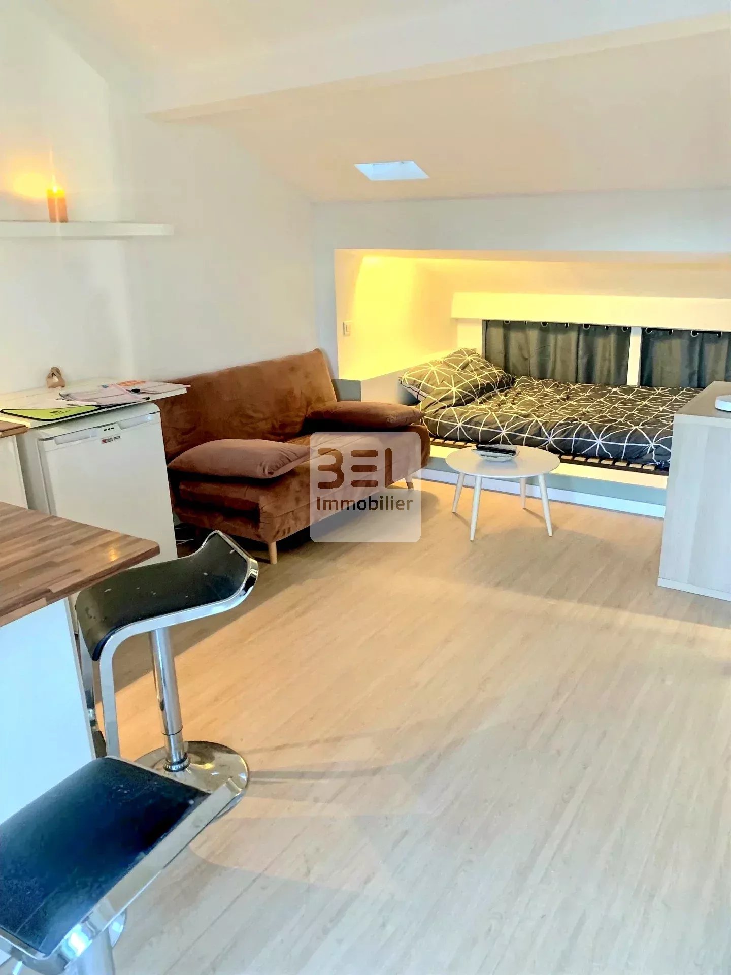 Entièrement équipé et meublé, cet appartement d'environ 18m2 carrez (30m2 au sol parfaitement exploités), se compose d'une pièce de vie chaleureuse avec cuisine équipée en électroménager, un espace nuit judicieusement aménagé, salle d’eau, toilettes, un coin buanderie et de nombreux rangements en sous-pente.