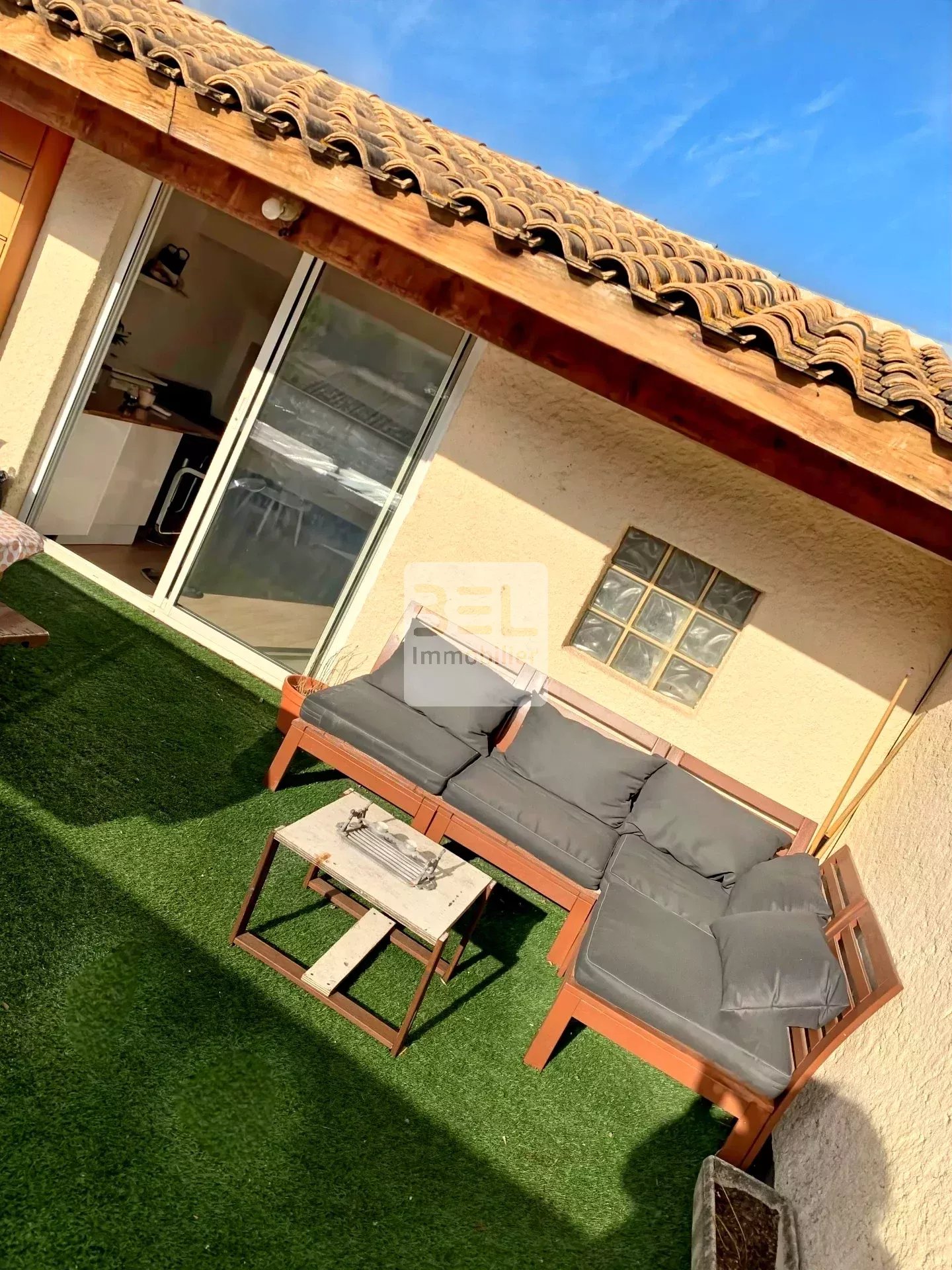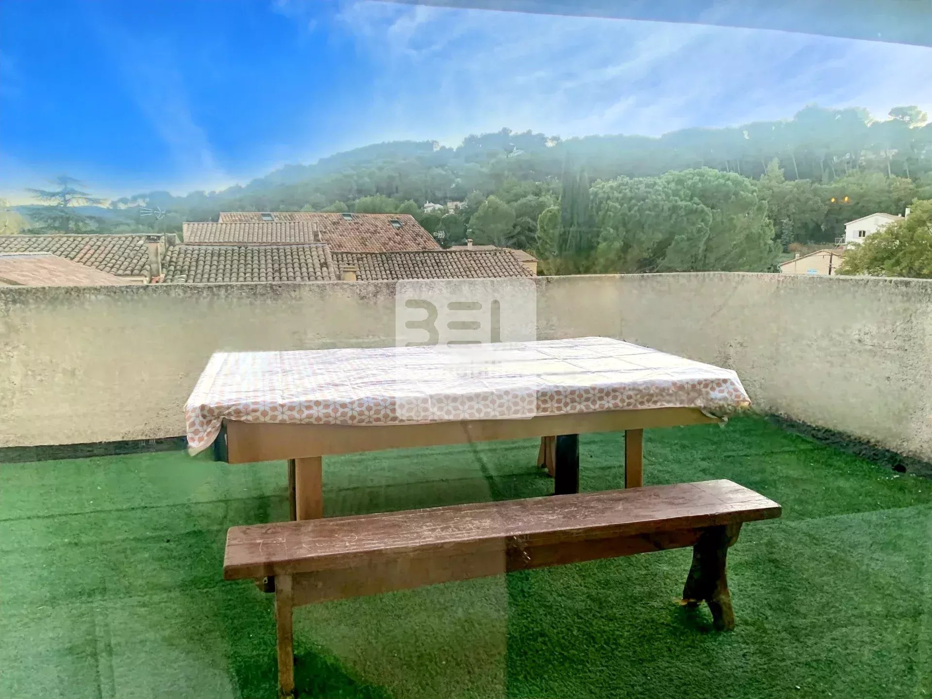 Son toit-terrasse de près de 30m2 offre un véritable espace de vie supplémentaire, avec une incroyable vue dominante sur le village et les collines environnantes !