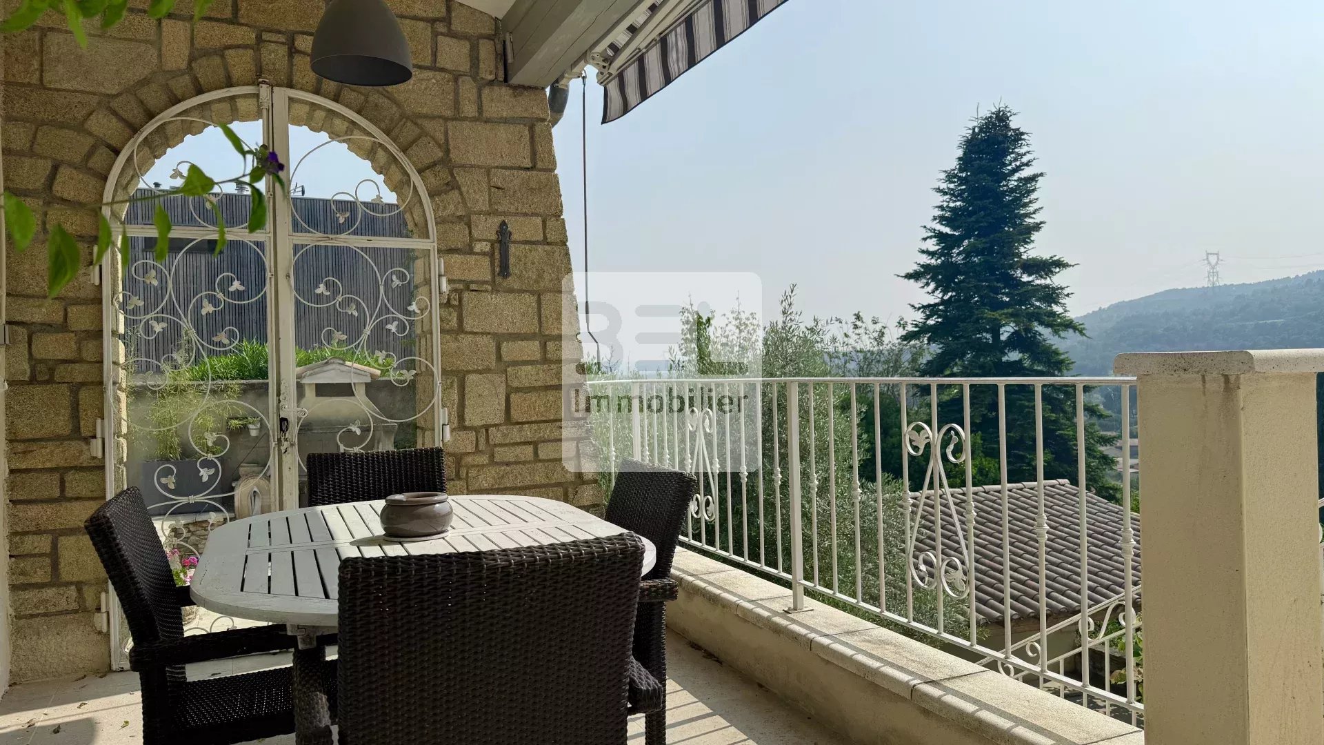 Réf : 3815MC Coup de coeur pour cette superbe villa ! Spacieuse et baignée de lumière par ses grandes ouvertures orientées sud-ouest, cette charmante maison d'environ 171 m² a été entièrement rénovée en 2014 pour vous offrir un espace de vie exceptionnel. L'entrée spacieuse vous amène directement sur la cuisine aménagée et sa grande véranda avec une vue imprenable de 180° sur la colline. Vous saurez apprécier le coin salon et bureau au même étage avec une grande chambre accompagnée de son dressing ainsi qu'une salle d'eau et un toilette séparé. Au niveau supérieur : deux autres chambres complètent cet espace nuit avec une salle de bain et un second toilette. Vous pourrez profiter à l'extérieur d'une agréable terrasse lumineuse menant à la piscine (8 x 4) ainsi qu'un jardin. Un garage, une buanderie et un carport pour garer vos véhicules complètent ce bien en vous offrant rangement et praticité. Cette villa est chauffée par un chauffe gaz ainsi que des climatisations réversibles. Des panneaux photovoltaïques la rende complètement autonome. Vous profiter de tous les sites touristiques du Gard, de la Vallée de la Cèze, du Vaucluse et de l'Ardèche. Les axes A7 et A9 sont à proximité. Venez découvrir par vous même le potentiel de ce bien !