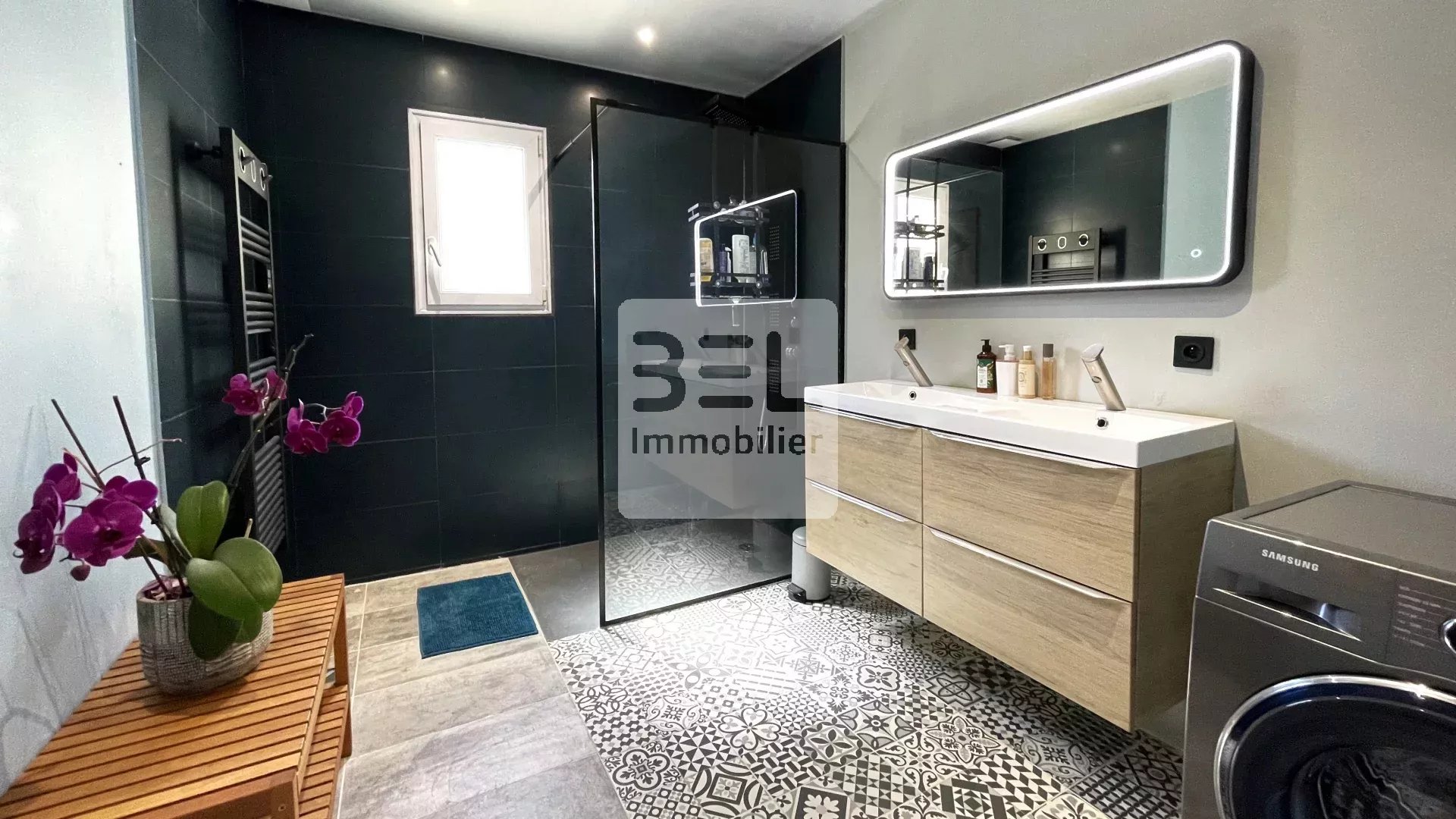 Maison climatisée, avec menuiserie double vitrage (volet bois) et isolations refaites, permettent une belle notation énergétique (C).