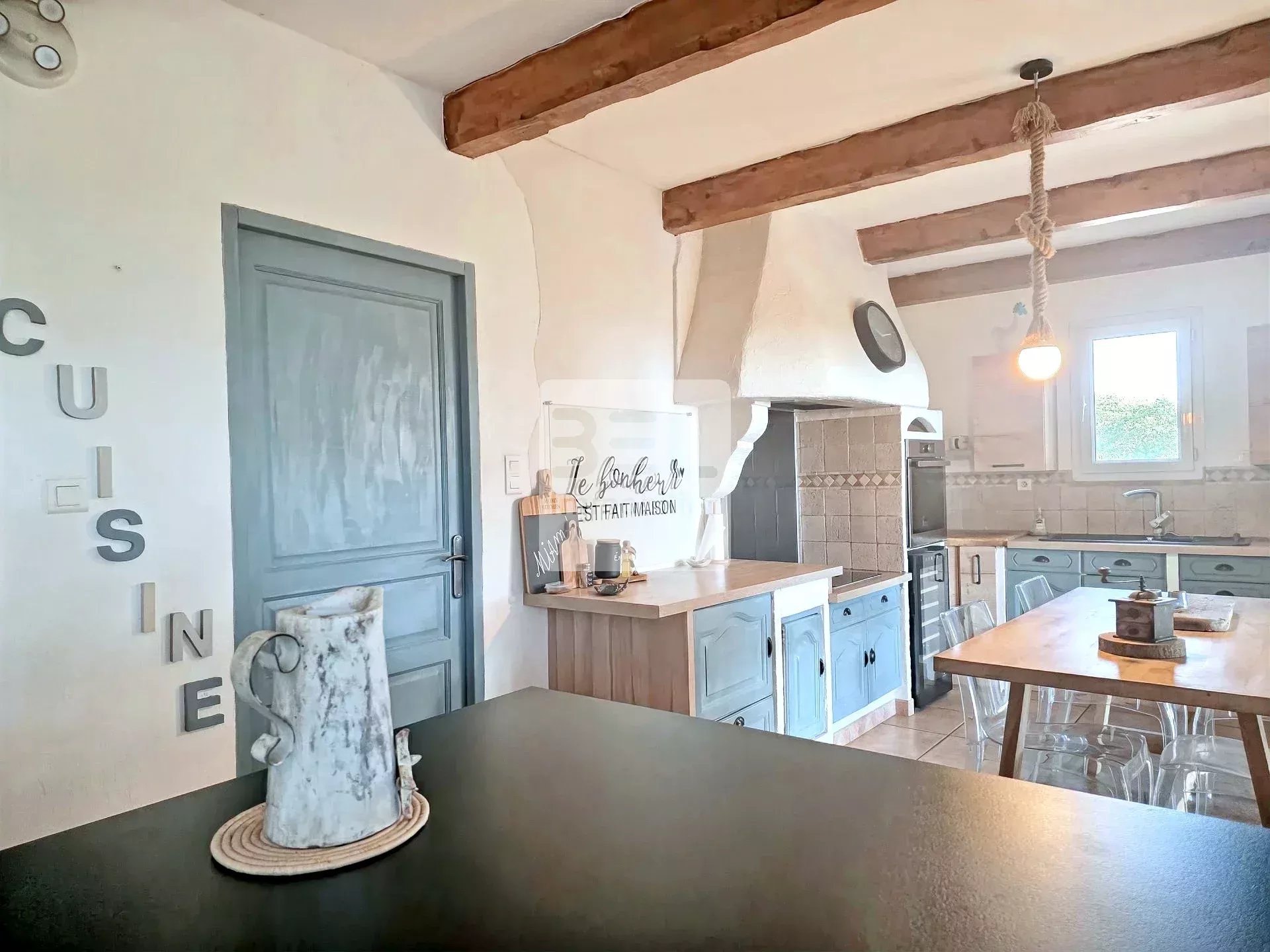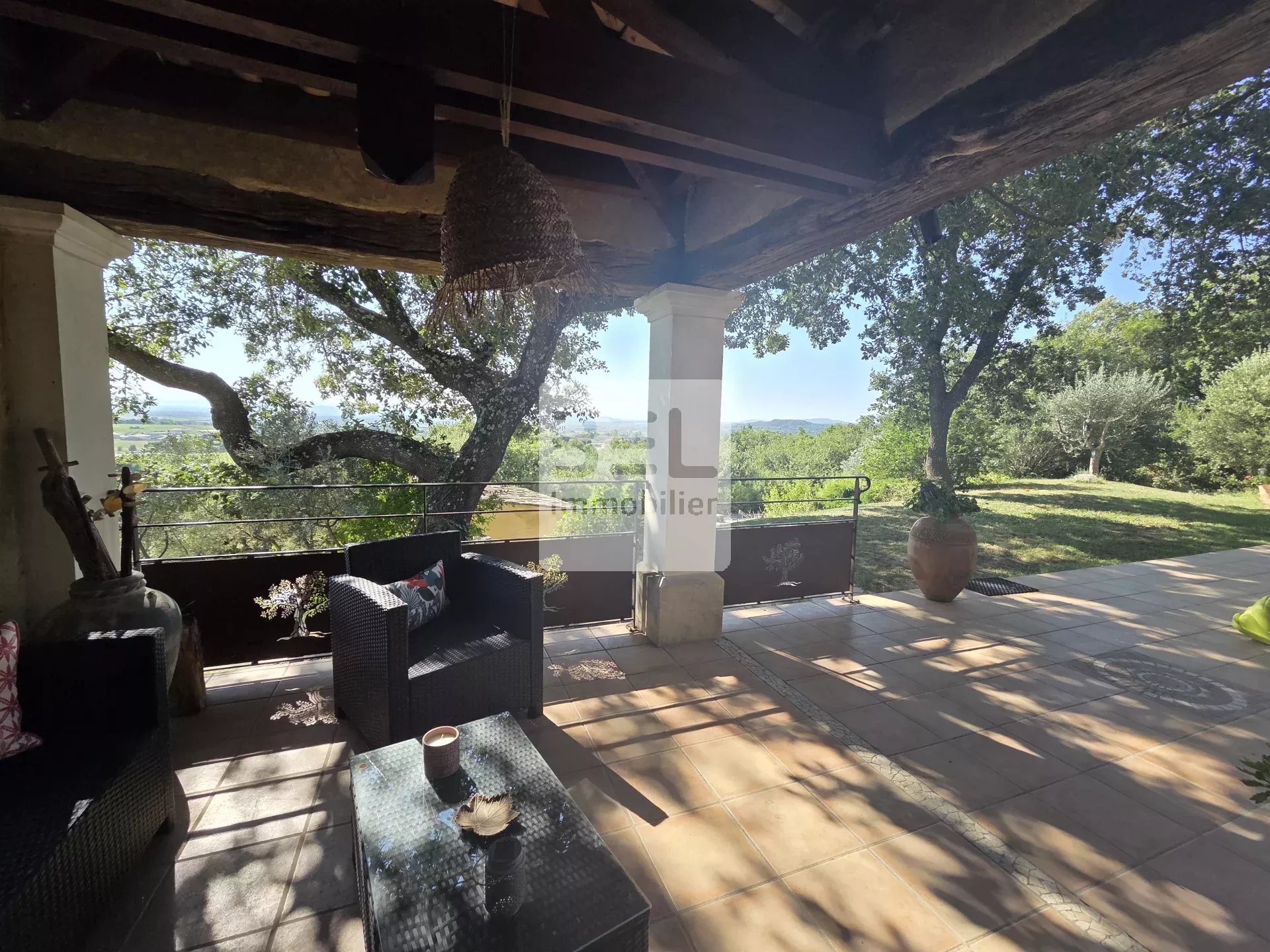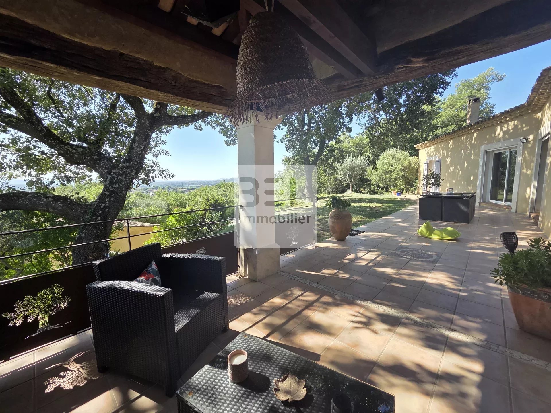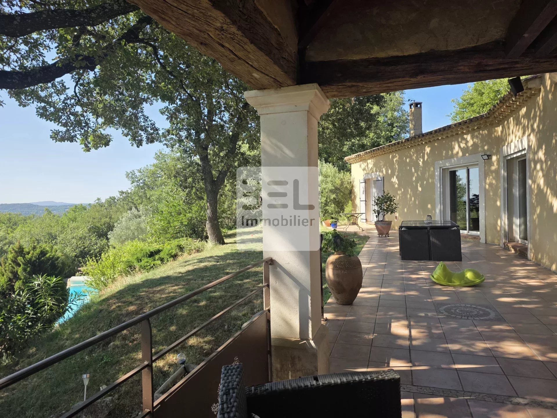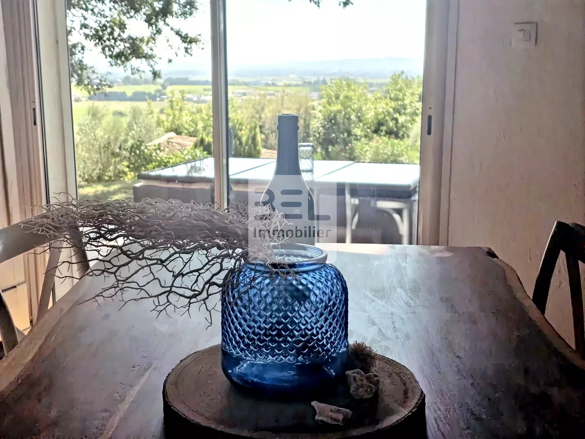 Ref3933.NB : Nichée dans les hauteurs d'un village ardéchois, cette magnifique villa située à quelques kilomètres des grands axes (autoroute A9), dispose d'une vue dégagée et panoramique sur le Mont Ventoux et les vignobles environnants. Dotée de 4 chambres et 6 pièces spacieuses, elle offre un confort moderne avec chauffage au sol (par PAC) et climatisation. Les fenêtres en aluminium et PVC avec double vitrage garantissent une isolation optimale. La villa bénéficie d'équipements de haute qualité et de matériaux nobles : poutres et charpentes apparentes, pierres d'oppèdes, tuiles anciennes. Profitez de la piscine et de son pool house pour des moments de détente en famille ou entre amis, tout en admirant le cadre naturel et verdoyant. Avec sa terrasse conviviale et ses espaces de vie généreux, cette propriété est parfaite pour ceux qui recherchent calme et confort. Ne manquez pas cette opportunité unique d'acquérir une villa exceptionnelle dans le sud de la France, à proximité des commodités.