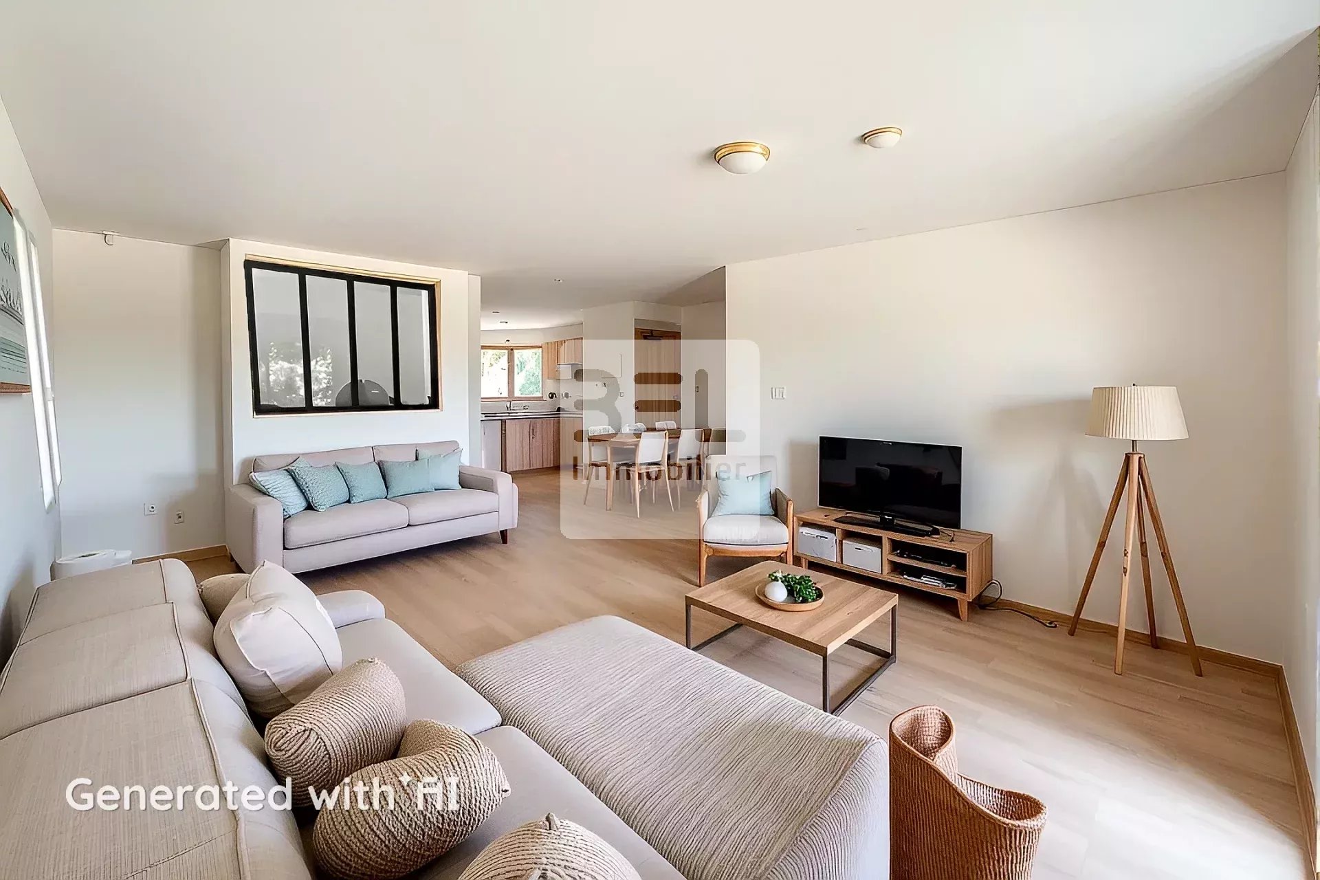 La maison propose un salon séjour de plus de 40 m2 communiquant vers la cuisine traversante ouverte de plus de 10m2.