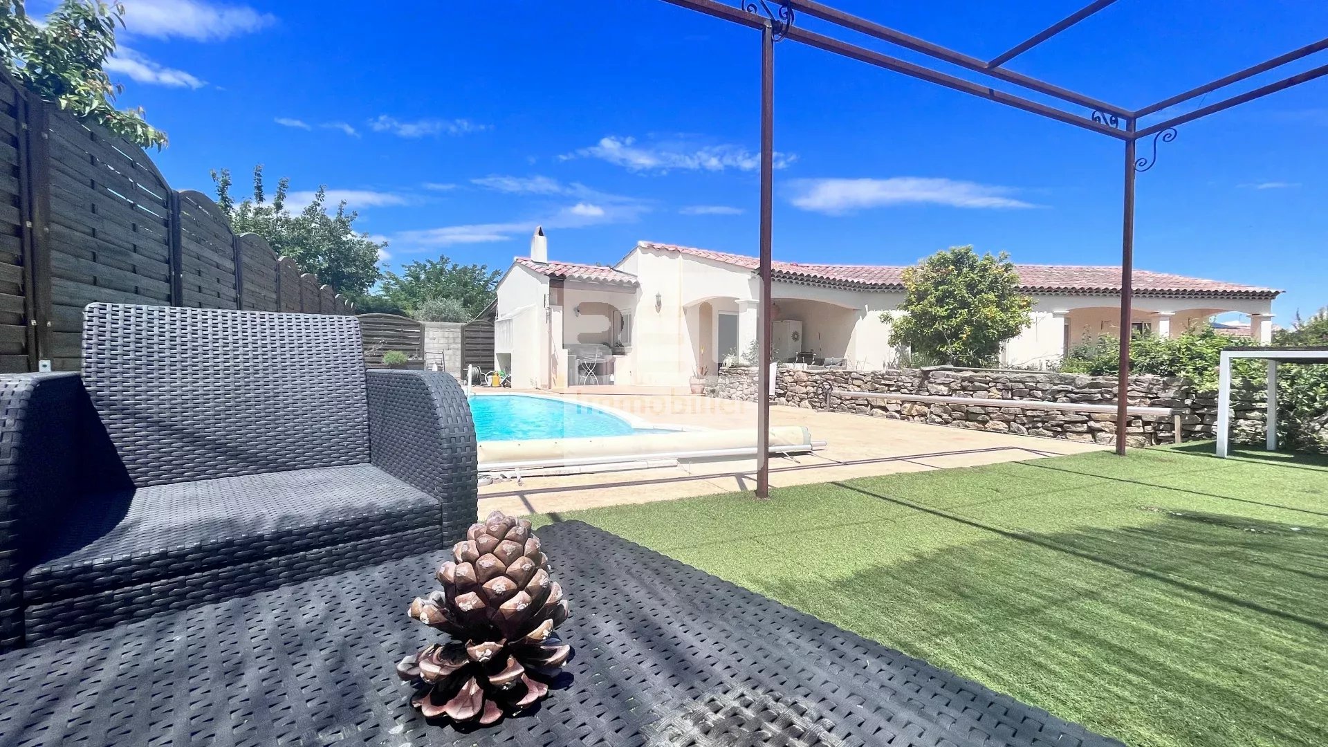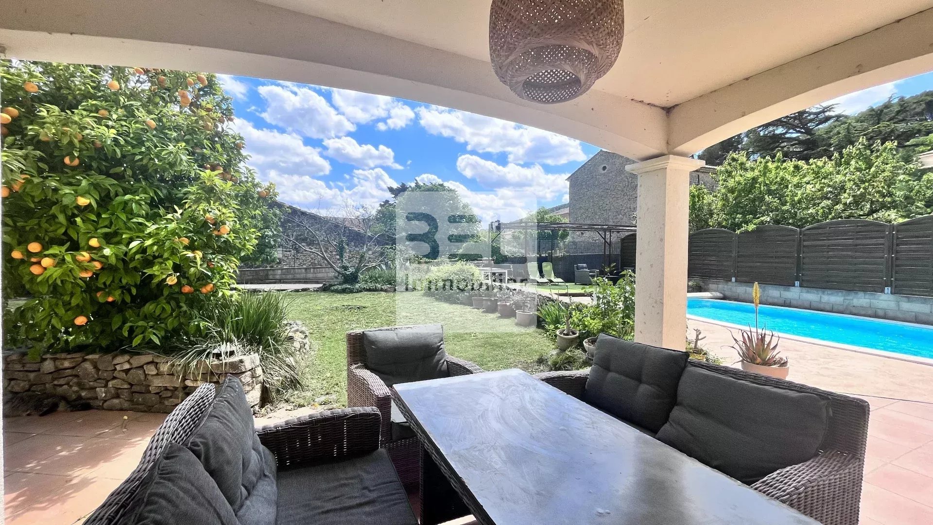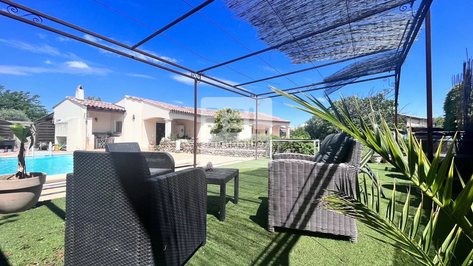REF :3291SR SOUS OFFRE En exclusivité, au cœur du village Gardois d'Orsan, dans le triangle Avignon - Uzès - Vallée de la Cèze, proche commerces et commodités, cette villa avec son grand jardin dans son ambiance provençale sera le cocon idéal pour la famille. Un grand salon séjour ouvert sur la cuisine, avec un espace buanderie compose l'espace de vie très lumineux tourné vers le jardin. Dans la continuité 3 chambres avec rangement, une salle d'eau et des toilettes séparés proposent un agréable espace de nuit. Chauffage par climatisation réversible et poêle à granules. Le jardin de presque 900m2 avec sa piscine, ses nombreuses terrasses et son terrain de pétanque invite à la détente et au farniente bercé par le chant des cigales. Un forage, un abri et un atelier complètent les atouts de cette villa. La visite vous séduira !